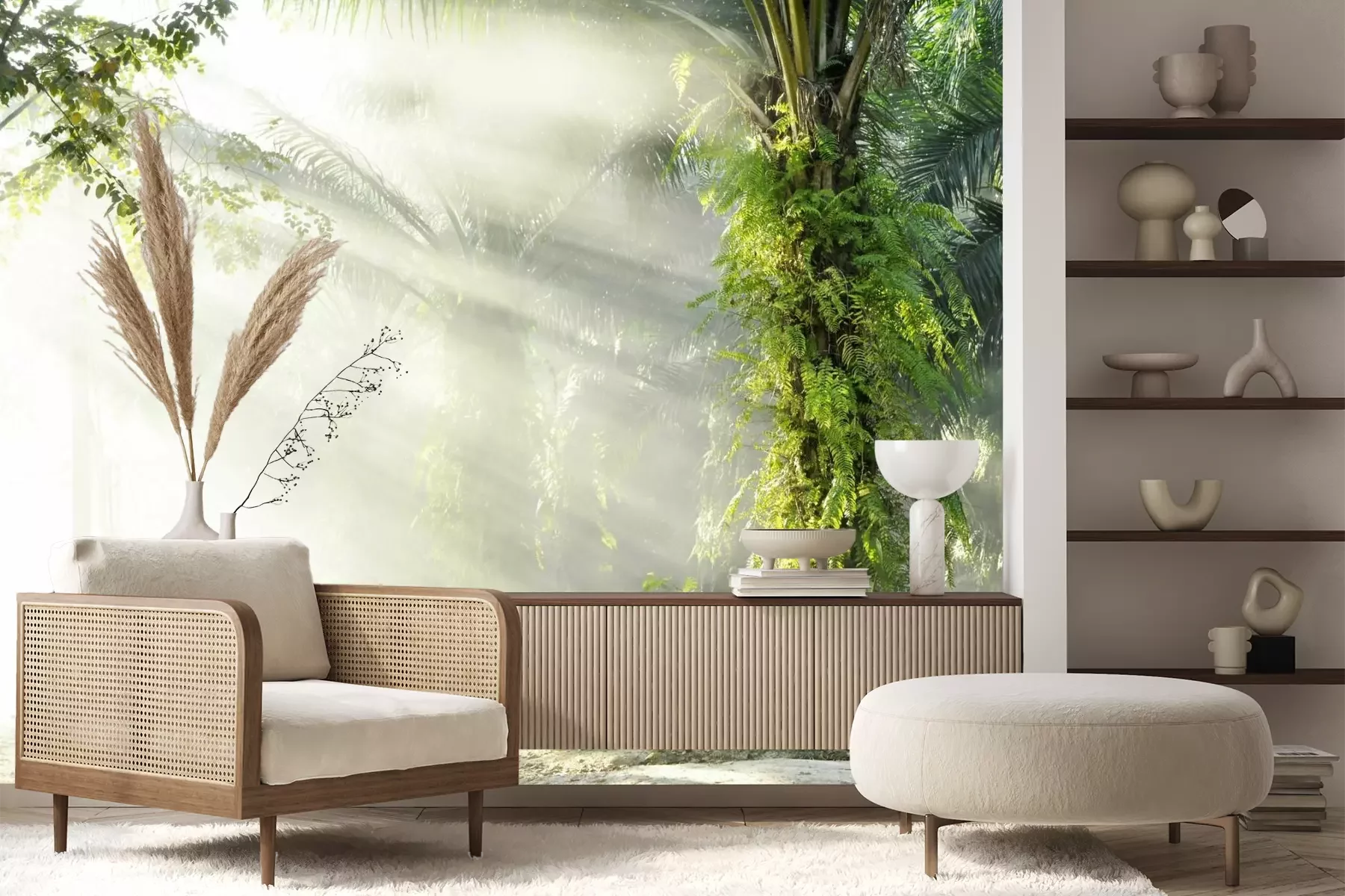 Het materiaal Premium+ is een gestructureerd vinyl op vlies met een gewicht van 255 g/m², dat kleine oneffenheden in de muur effectief camoufleert. De subtiele structuur van fijn zand geeft het oppervlak een exclusieve uitstraling, terwijl de halfmatte afwerking de diepte van de kleuren benadrukt. Het materiaal is dampdoorlatend, waardoor het ook in de keuken en badkamer kan worden gebruikt. De maximale breedte van één baan bedraagt 100 cm – bij grotere afmetingen wordt het fotobehang in meerdere gelijke banen verdeeld. De lijm wordt direct op de muur aangebracht en het behang wordt rand-aan-rand geplakt, wat zorgt voor een esthetisch resultaat zonder zichtbare naden. Het oppervlak kan gemakkelijk worden schoongemaakt door het voorzichtig af te nemen met een vochtige doek.
