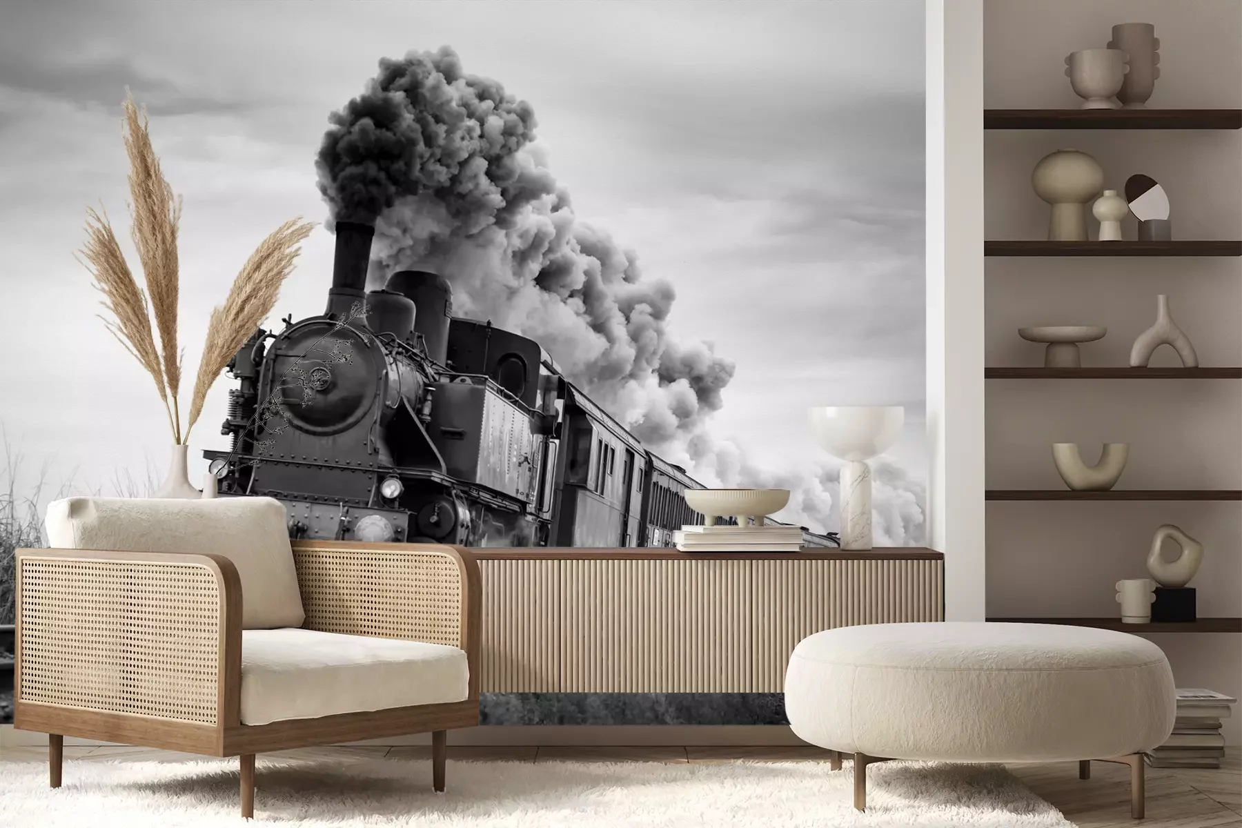 Het materiaal Premium+ is een gestructureerd vinyl op vlies met een gewicht van 255 g/m², dat kleine oneffenheden in de muur effectief camoufleert. De subtiele structuur van fijn zand geeft het oppervlak een exclusieve uitstraling, terwijl de halfmatte afwerking de diepte van de kleuren benadrukt. Het materiaal is dampdoorlatend, waardoor het ook in de keuken en badkamer kan worden gebruikt. De maximale breedte van één baan bedraagt 100 cm – bij grotere afmetingen wordt het fotobehang in meerdere gelijke banen verdeeld. De lijm wordt direct op de muur aangebracht en het behang wordt rand-aan-rand geplakt, wat zorgt voor een esthetisch resultaat zonder zichtbare naden. Het oppervlak kan gemakkelijk worden schoongemaakt door het voorzichtig af te nemen met een vochtige doek.
