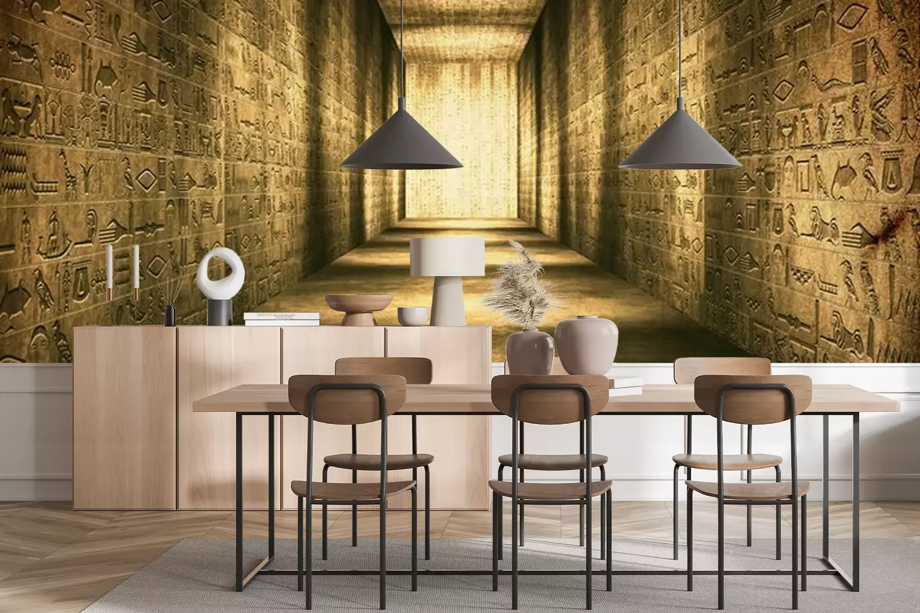 Fotobehang Egyptische tunnel hiërogliefen Corridor Vintage