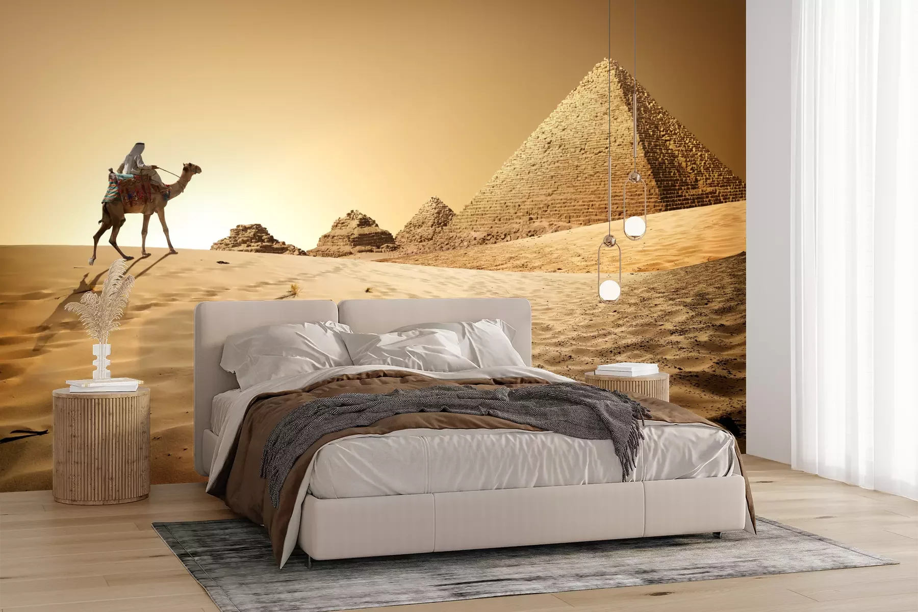 Het materiaal Premium+ is een gestructureerd vinyl op vlies met een gewicht van 255 g/m², dat kleine oneffenheden in de muur effectief camoufleert. De subtiele structuur van fijn zand geeft het oppervlak een exclusieve uitstraling, terwijl de halfmatte afwerking de diepte van de kleuren benadrukt. Het materiaal is dampdoorlatend, waardoor het ook in de keuken en badkamer kan worden gebruikt. De maximale breedte van één baan bedraagt 100 cm – bij grotere afmetingen wordt het fotobehang in meerdere gelijke banen verdeeld. De lijm wordt direct op de muur aangebracht en het behang wordt rand-aan-rand geplakt, wat zorgt voor een esthetisch resultaat zonder zichtbare naden. Het oppervlak kan gemakkelijk worden schoongemaakt door het voorzichtig af te nemen met een vochtige doek.