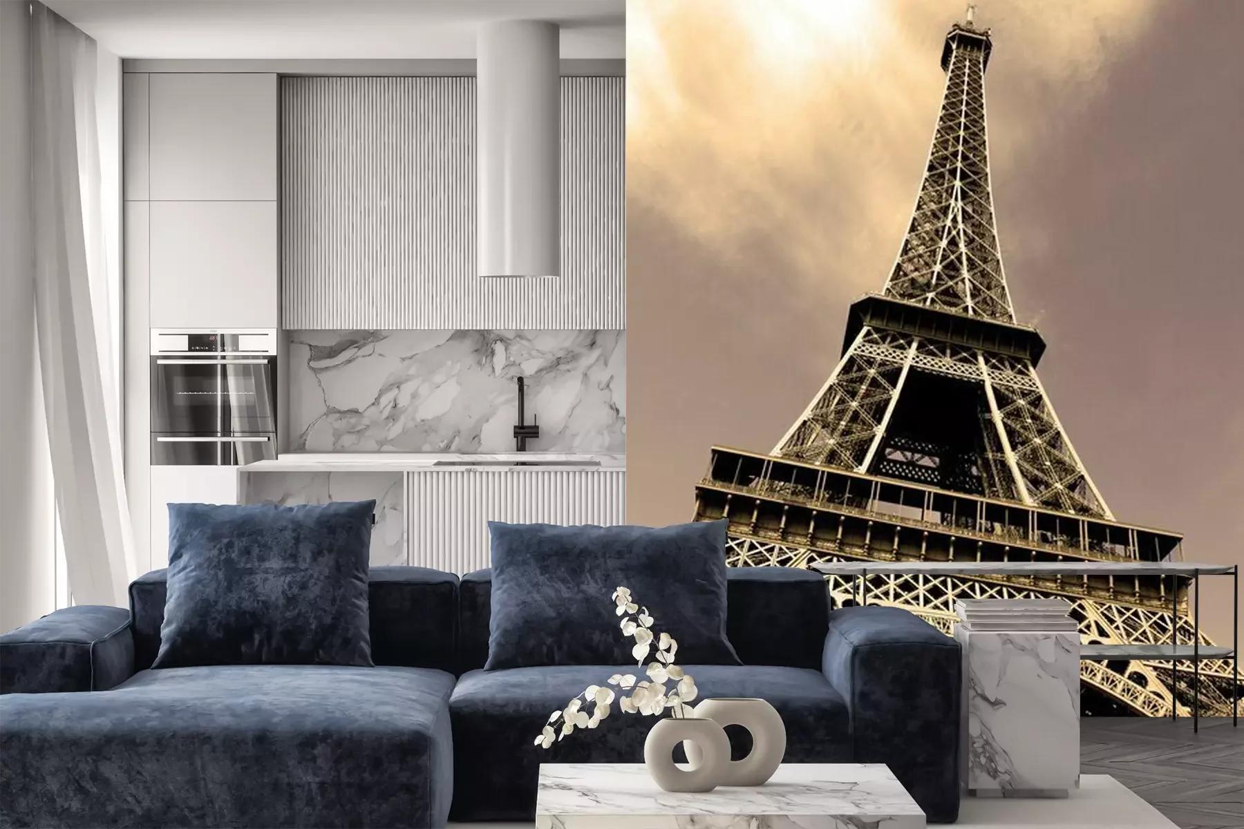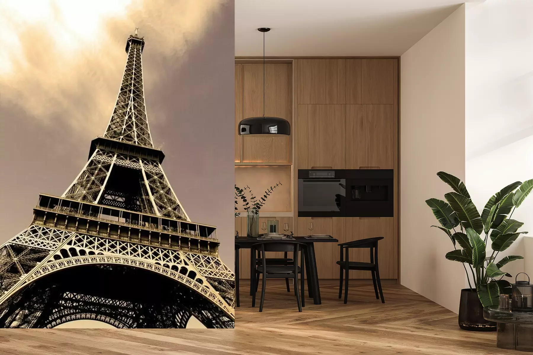 Het materiaal Premium is een glad vinyl op vlies, dat bestand is tegen uitrekken en vervorming. Het is dampdoorlatend – de muren kunnen vrij ademen – waardoor het geschikt is voor gebruik in de keuken en badkamer. Bij vervuiling kan het materiaal worden afgenomen met een vochtige doek. De maximale breedte van één baan bedraagt 95 of 105 cm, afhankelijk van de beschikbaarheid. Montage vindt plaats met de rand-aan-rand methode, wat een esthetisch resultaat zonder zichtbare naden oplevert. Omdat de lijm rechtstreeks op de muur wordt aangebracht, verloopt de installatie van het fotobehang snel en eenvoudig.