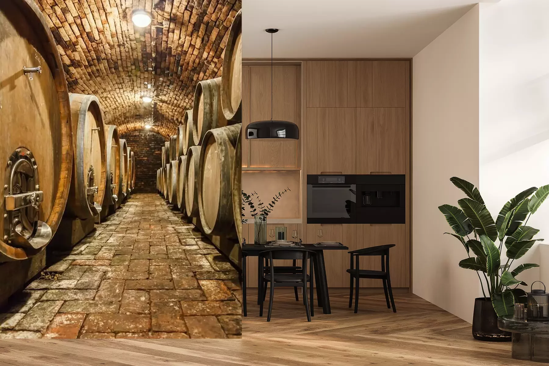 Eikenhouten vaten in de ondergrondse kelderProbleemloze bezorging verzorgd door vertrouwde vervoerders