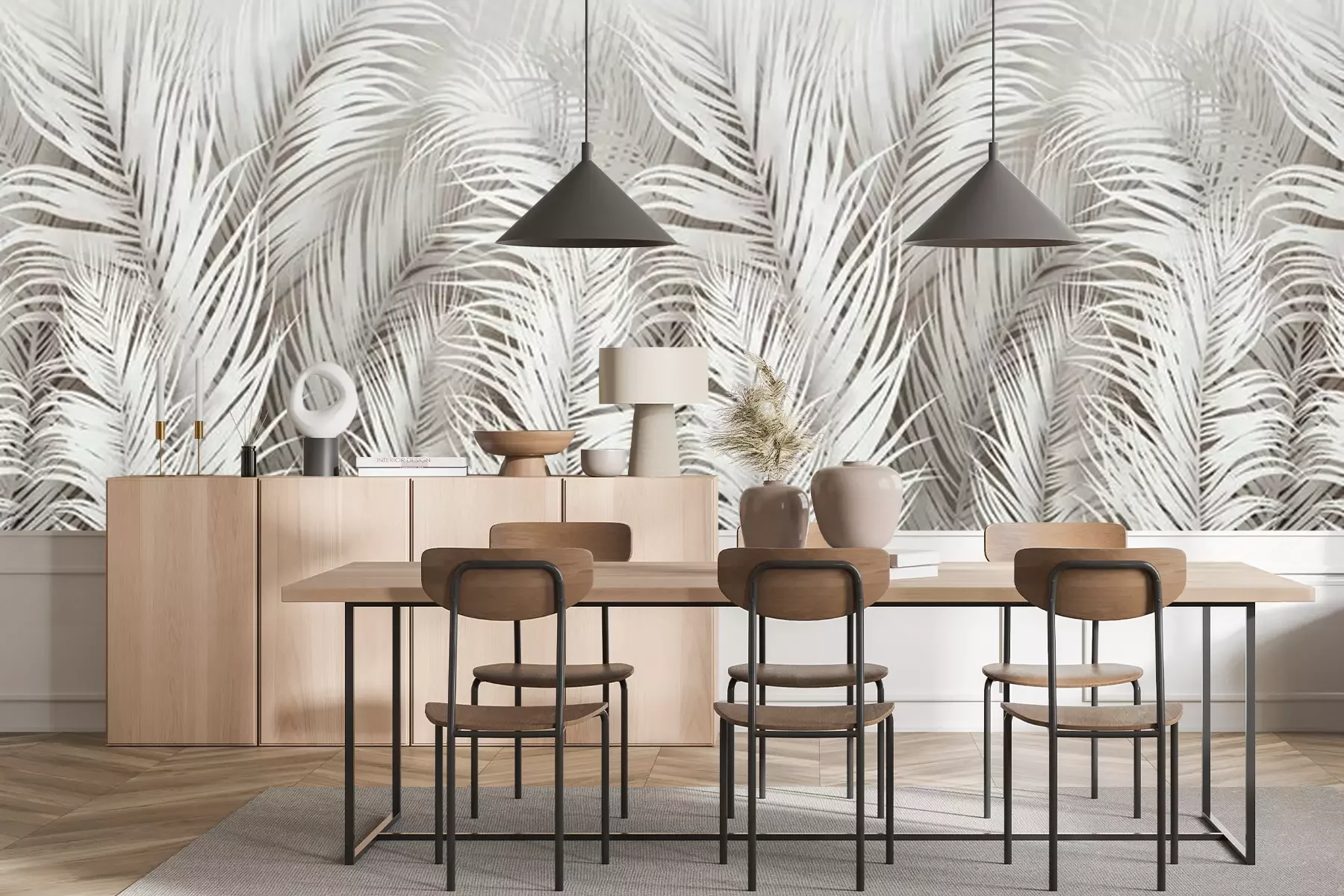 Het materiaal Premium+ is een gestructureerd vinyl op vlies met een gewicht van 255 g/m², dat kleine oneffenheden in de muur effectief camoufleert. De subtiele structuur van fijn zand geeft het oppervlak een exclusieve uitstraling, terwijl de halfmatte afwerking de diepte van de kleuren benadrukt. Het materiaal is dampdoorlatend, waardoor het ook in de keuken en badkamer kan worden gebruikt. De maximale breedte van één baan bedraagt 100 cm – bij grotere afmetingen wordt het fotobehang in meerdere gelijke banen verdeeld. De lijm wordt direct op de muur aangebracht en het behang wordt rand-aan-rand geplakt, wat zorgt voor een esthetisch resultaat zonder zichtbare naden. Het oppervlak kan gemakkelijk worden schoongemaakt door het voorzichtig af te nemen met een vochtige doek.
