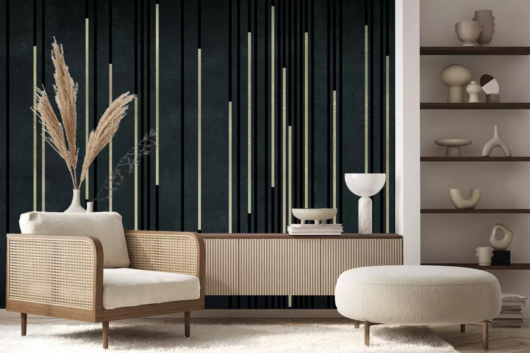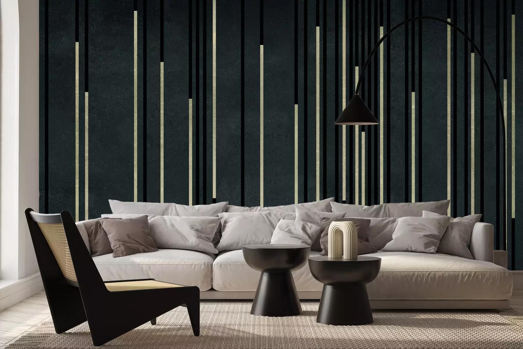 Het materiaal Premium+ is een gestructureerd vinyl op vlies met een gewicht van 255 g/m², dat kleine oneffenheden in de muur effectief camoufleert. De subtiele structuur van fijn zand geeft het oppervlak een exclusieve uitstraling, terwijl de halfmatte afwerking de diepte van de kleuren benadrukt. Het materiaal is dampdoorlatend, waardoor het ook in de keuken en badkamer kan worden gebruikt. De maximale breedte van één baan bedraagt 100 cm – bij grotere afmetingen wordt het fotobehang in meerdere gelijke banen verdeeld. De lijm wordt direct op de muur aangebracht en het behang wordt rand-aan-rand geplakt, wat zorgt voor een esthetisch resultaat zonder zichtbare naden. Het oppervlak kan gemakkelijk worden schoongemaakt door het voorzichtig af te nemen met een vochtige doek.