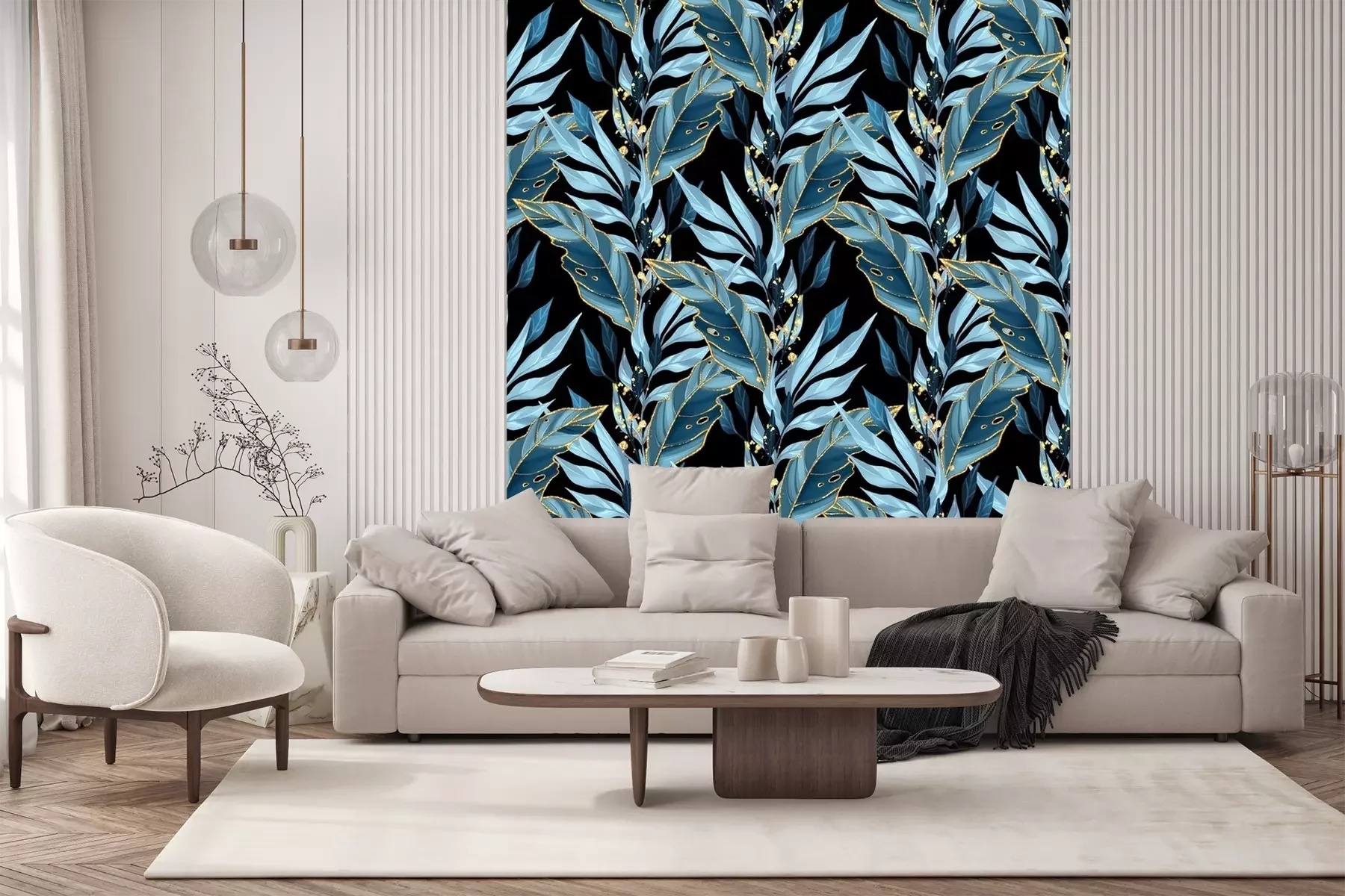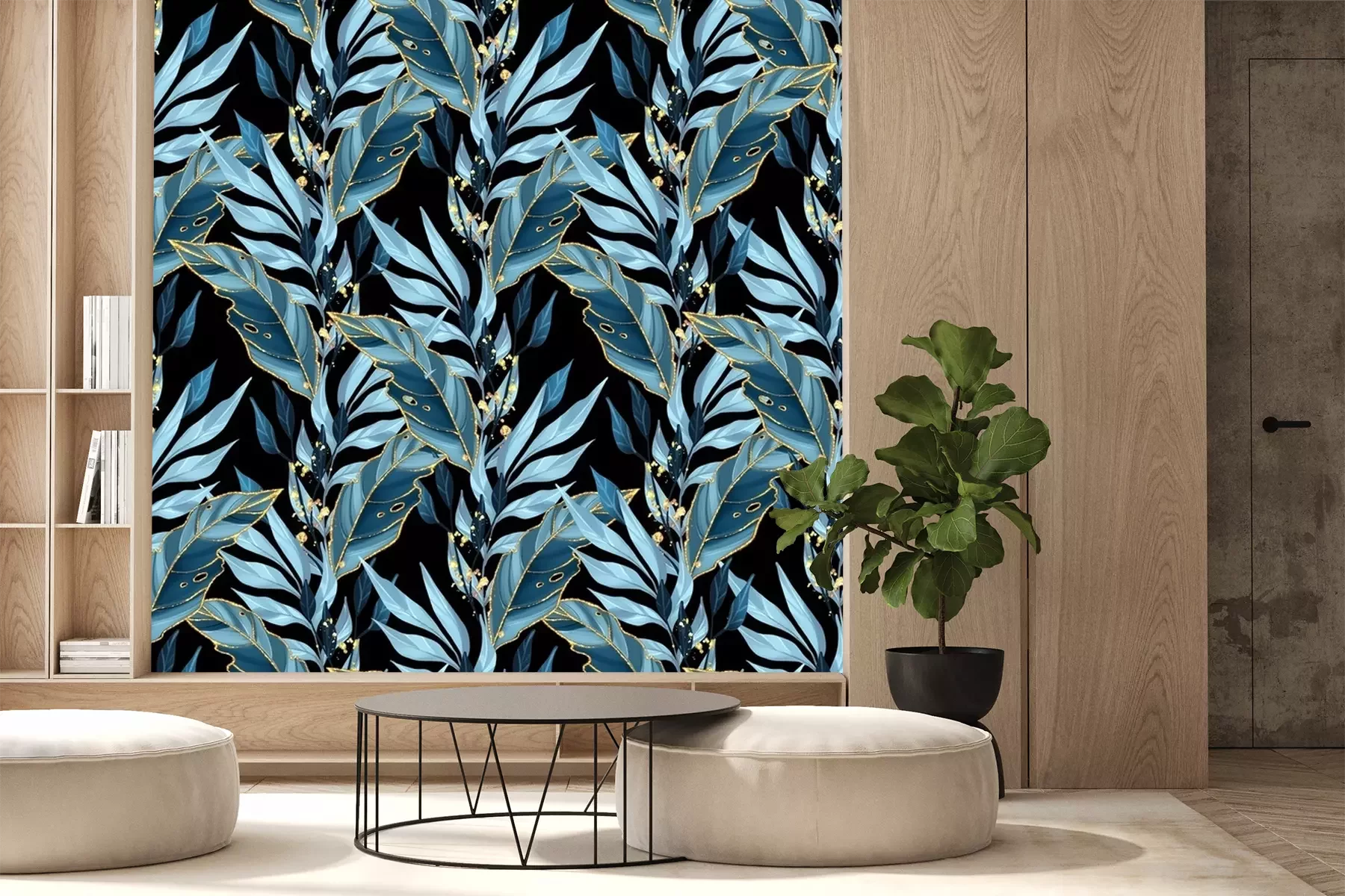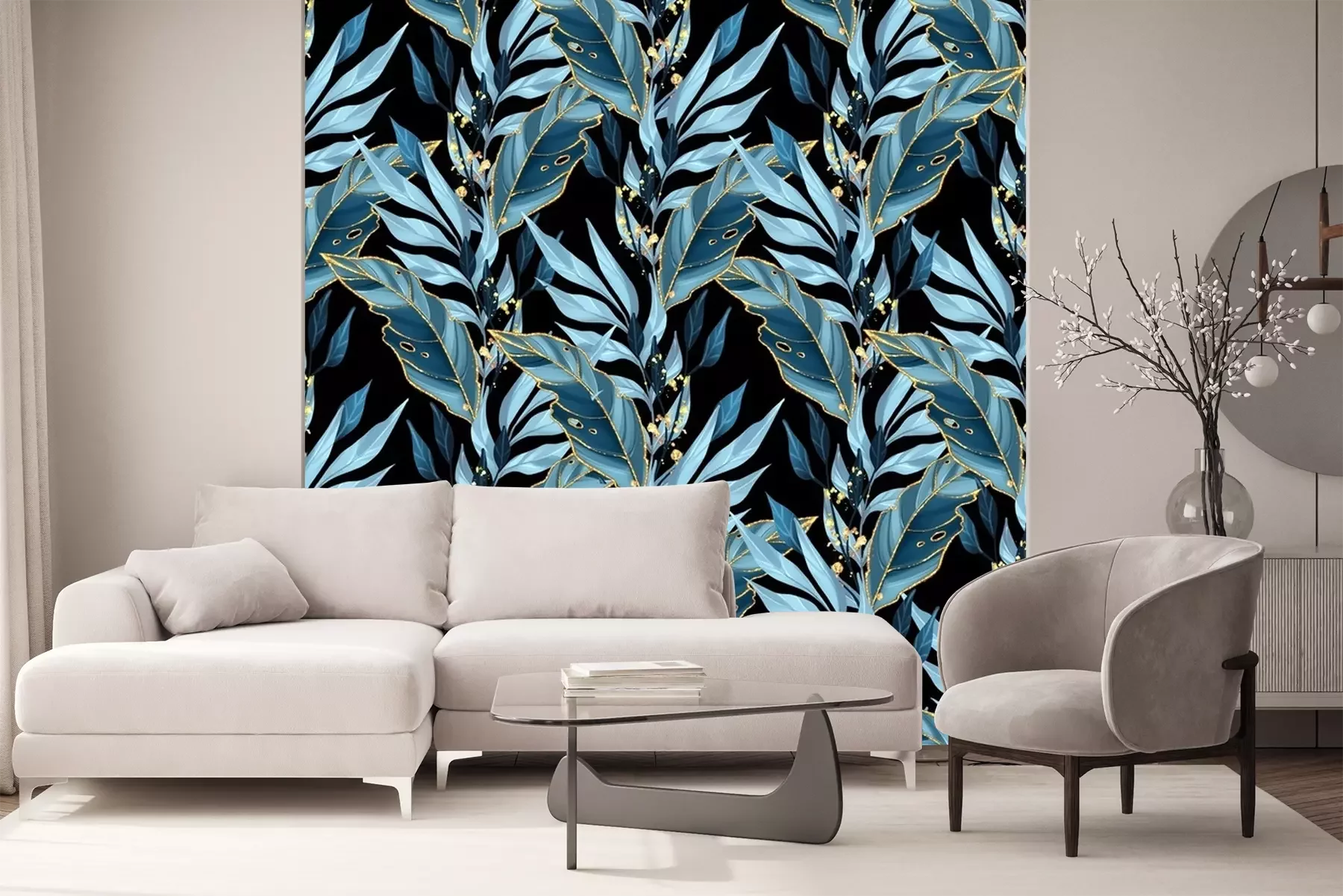 Fotobehang Elegante bladeren op een zwarte achtergrond