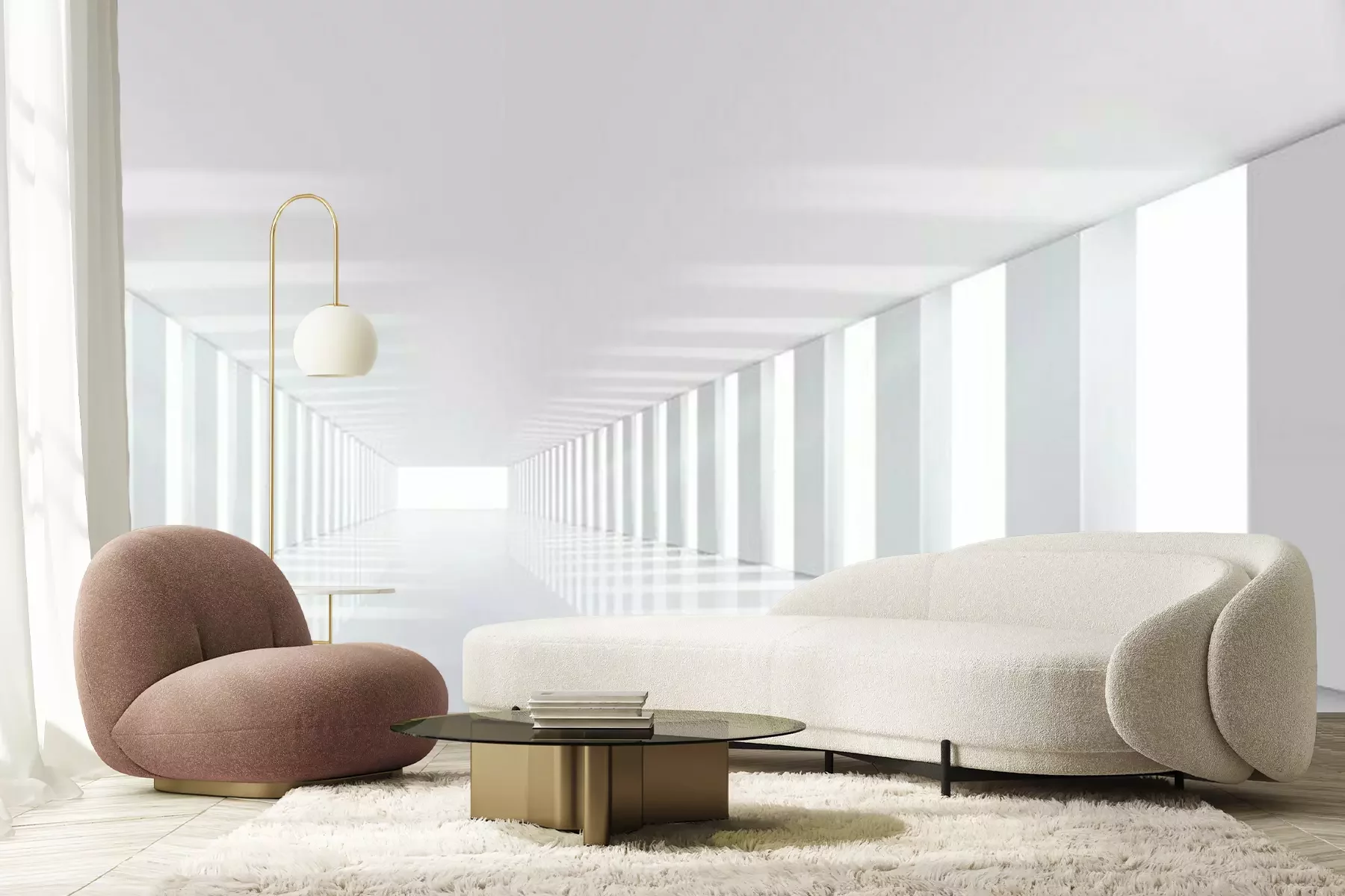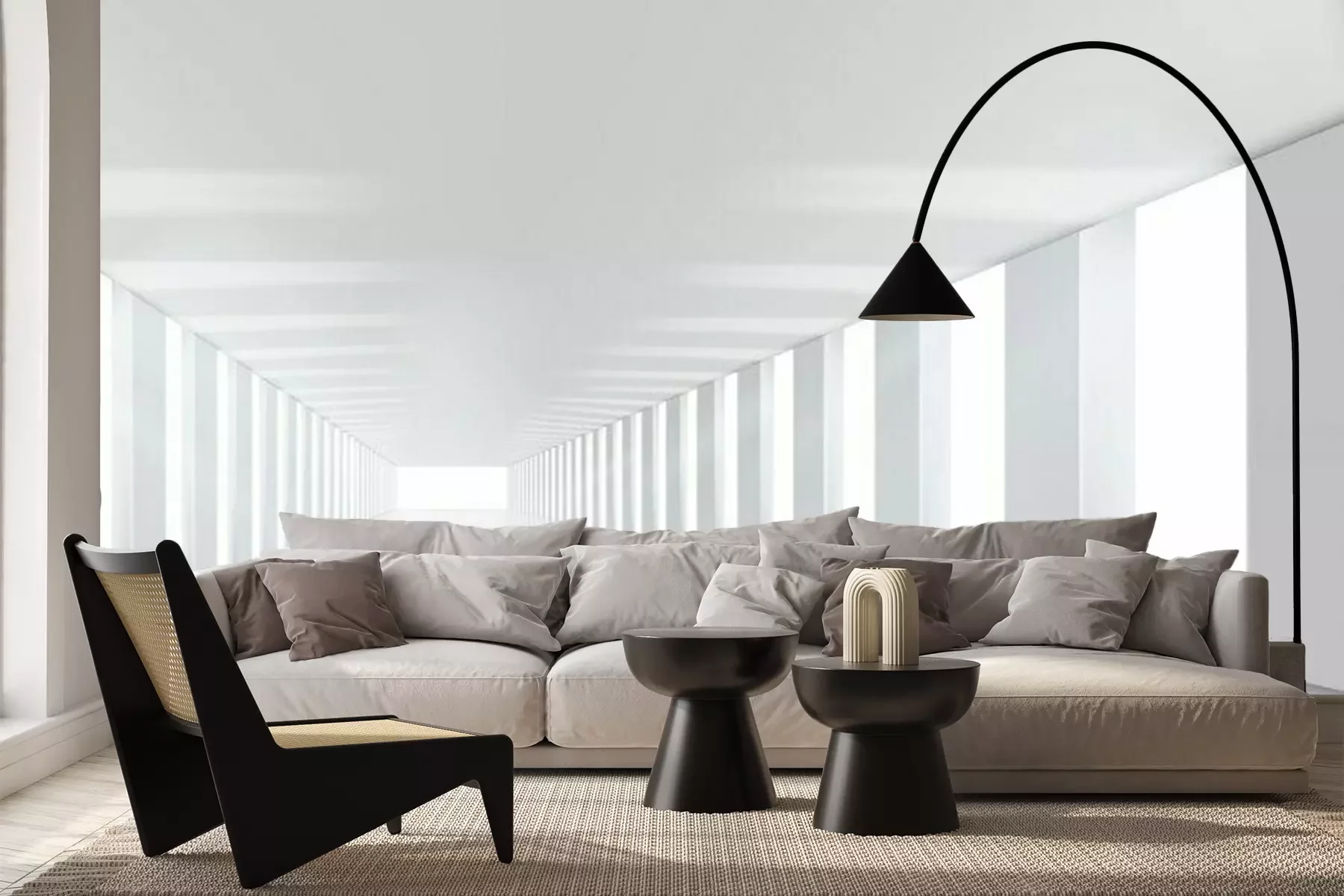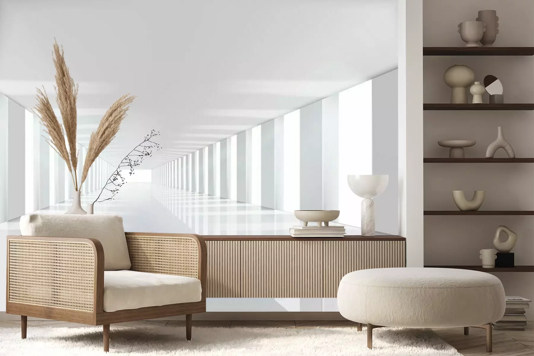 Eenvoudige witte tunnel met zuilenFotobehang
