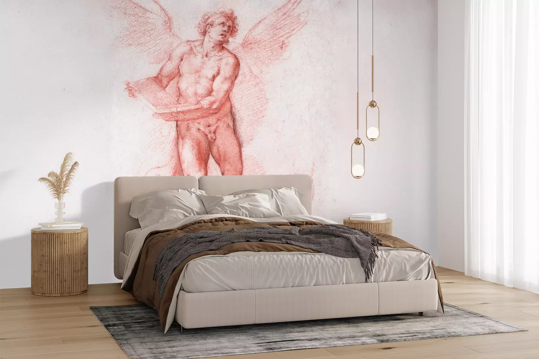 Het materiaal Premium+ is een gestructureerd vinyl op vlies met een gewicht van 255 g/m², dat kleine oneffenheden in de muur effectief camoufleert. De subtiele structuur van fijn zand geeft het oppervlak een exclusieve uitstraling, terwijl de halfmatte afwerking de diepte van de kleuren benadrukt. Het materiaal is dampdoorlatend, waardoor het ook in de keuken en badkamer kan worden gebruikt. De maximale breedte van één baan bedraagt 100 cm – bij grotere afmetingen wordt het fotobehang in meerdere gelijke banen verdeeld. De lijm wordt direct op de muur aangebracht en het behang wordt rand-aan-rand geplakt, wat zorgt voor een esthetisch resultaat zonder zichtbare naden. Het oppervlak kan gemakkelijk worden schoongemaakt door het voorzichtig af te nemen met een vochtige doek.