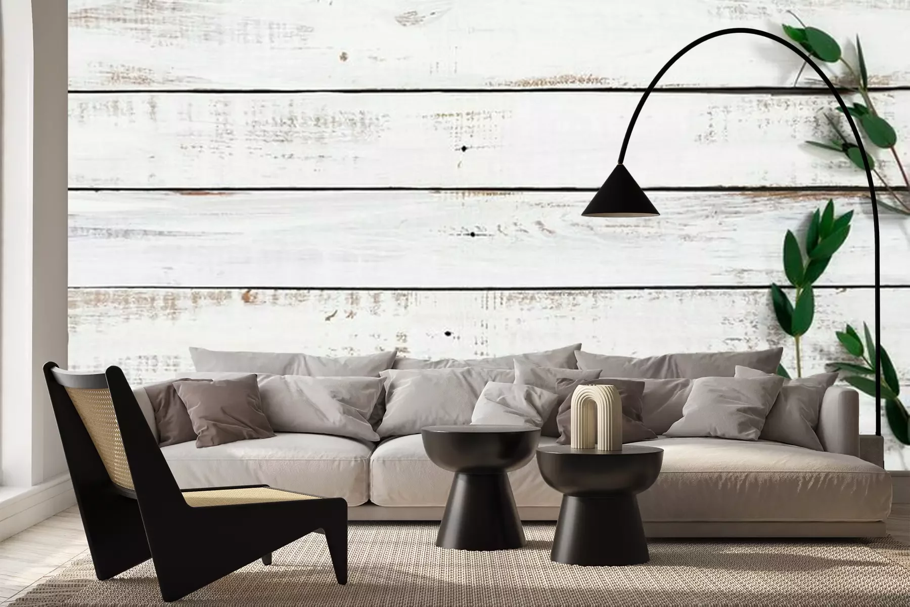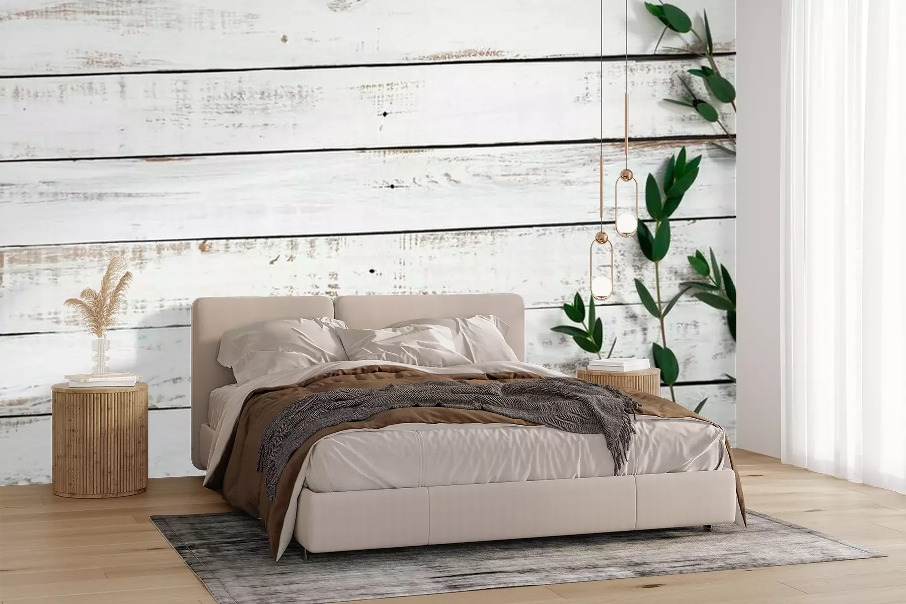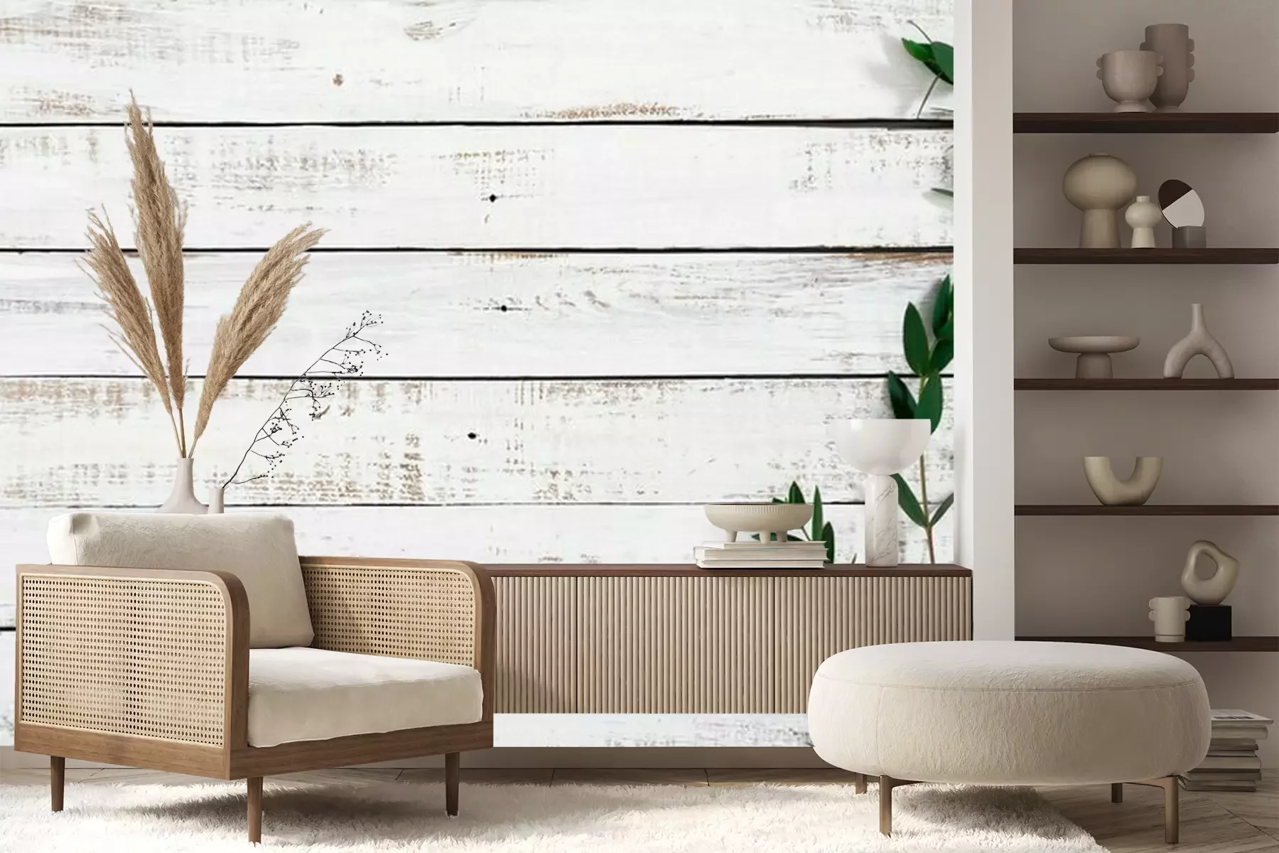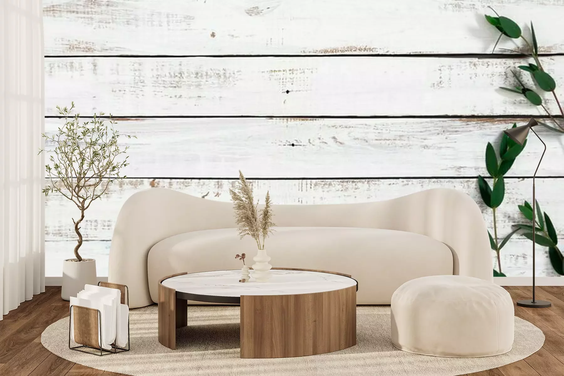 Fotobehang Eucalyptusbladeren op een houten vloer
