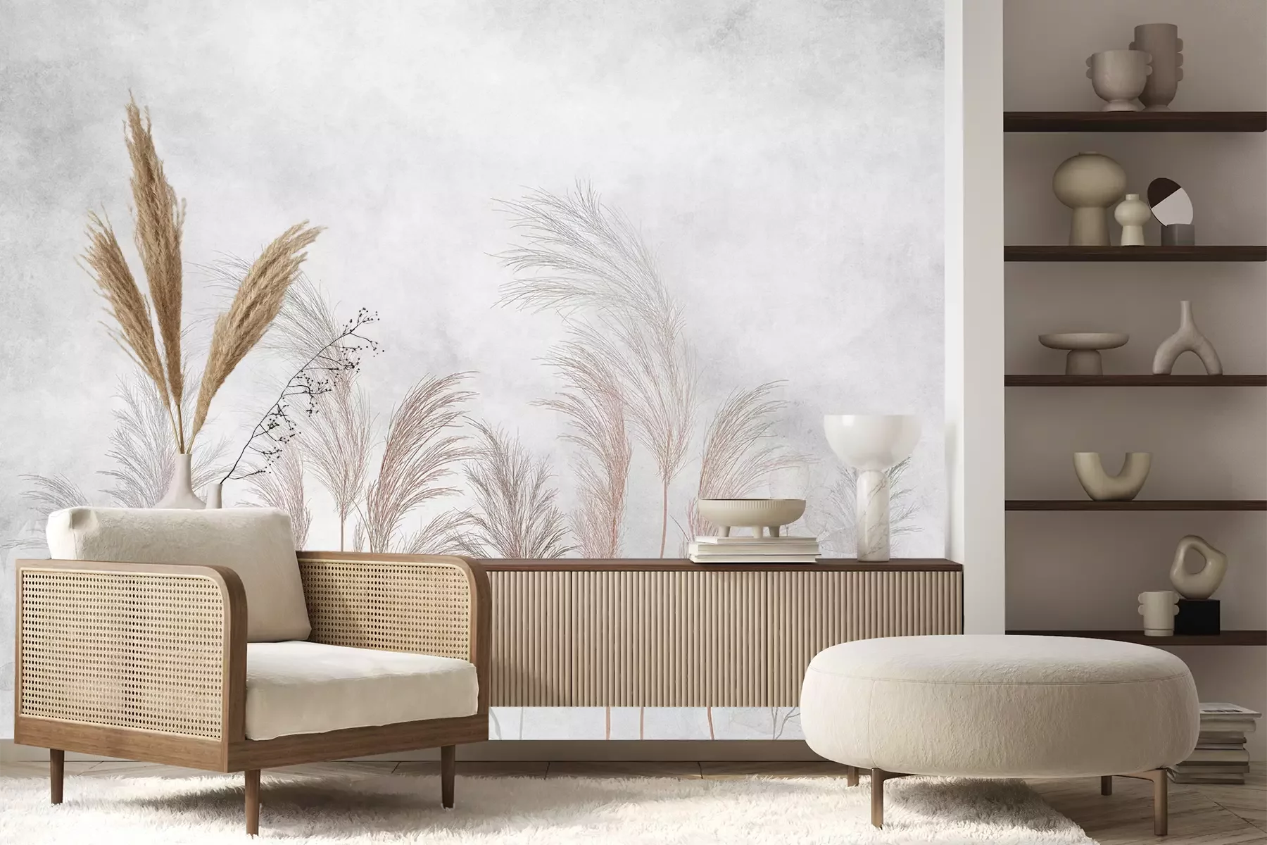 Het materiaal Premium+ is een gestructureerd vinyl op vlies met een gewicht van 255 g/m², dat kleine oneffenheden in de muur effectief camoufleert. De subtiele structuur van fijn zand geeft het oppervlak een exclusieve uitstraling, terwijl de halfmatte afwerking de diepte van de kleuren benadrukt. Het materiaal is dampdoorlatend, waardoor het ook in de keuken en badkamer kan worden gebruikt. De maximale breedte van één baan bedraagt 100 cm – bij grotere afmetingen wordt het fotobehang in meerdere gelijke banen verdeeld. De lijm wordt direct op de muur aangebracht en het behang wordt rand-aan-rand geplakt, wat zorgt voor een esthetisch resultaat zonder zichtbare naden. Het oppervlak kan gemakkelijk worden schoongemaakt door het voorzichtig af te nemen met een vochtige doek.