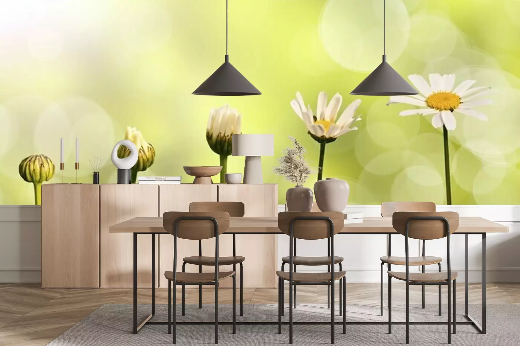 Het materiaal Standard is een hoogwaardig latexmateriaal met een glad, mat oppervlak. Dankzij de HP Latex-printtechnologie zijn de kleuren intens, duurzaam en UV-bestendig, waardoor het patroon jarenlang een onberispelijke uitstraling behoudt. Vervuilde oppervlakken kunnen voorzichtig worden afgeveegd met een droge doek. De maximale breedte van één baan bedraagt 95 cm of 105 cm – afhankelijk van de bestelde fotobehangbreedte. Bij grotere afmetingen wordt het patroon verdeeld over meerdere gelijkmatige banen. Het fotobehang wordt rand-aan-randaangebracht, wat vrijwel onzichtbare naden mogelijk maakt.