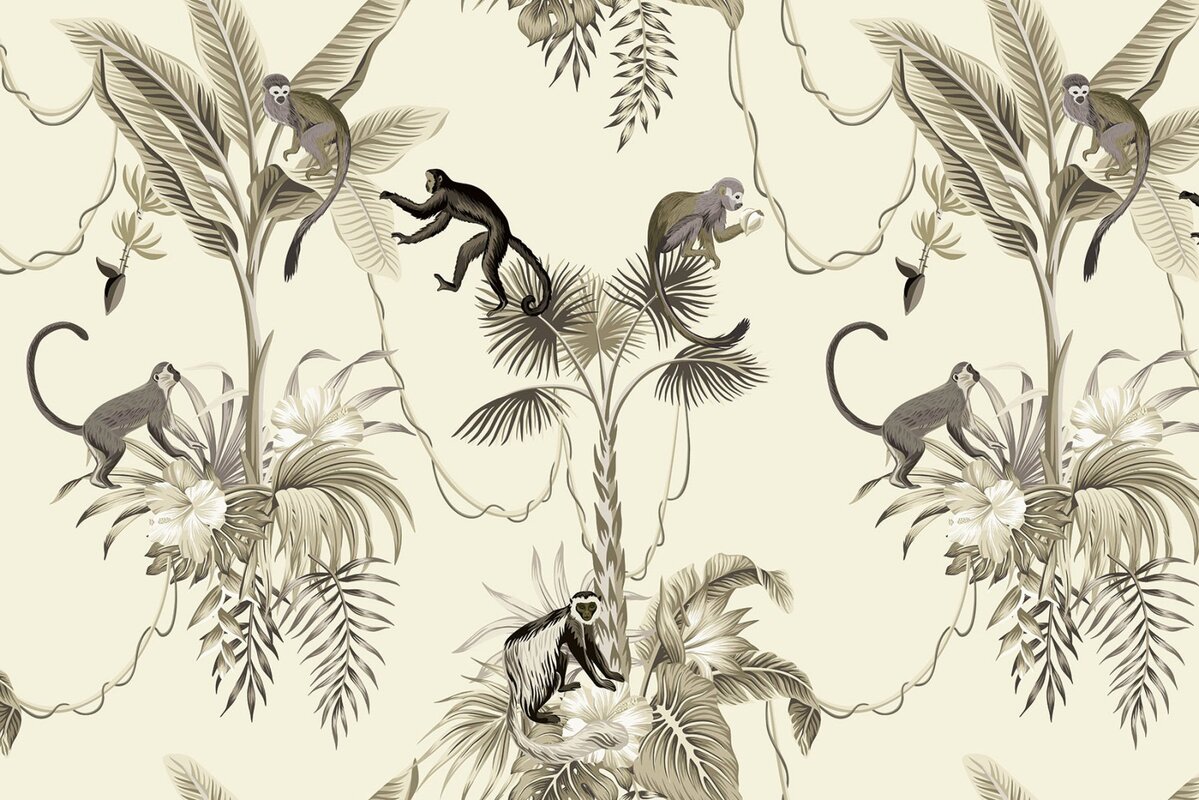 Fotobehang: Exotische apen tussen weelderige vegetatie