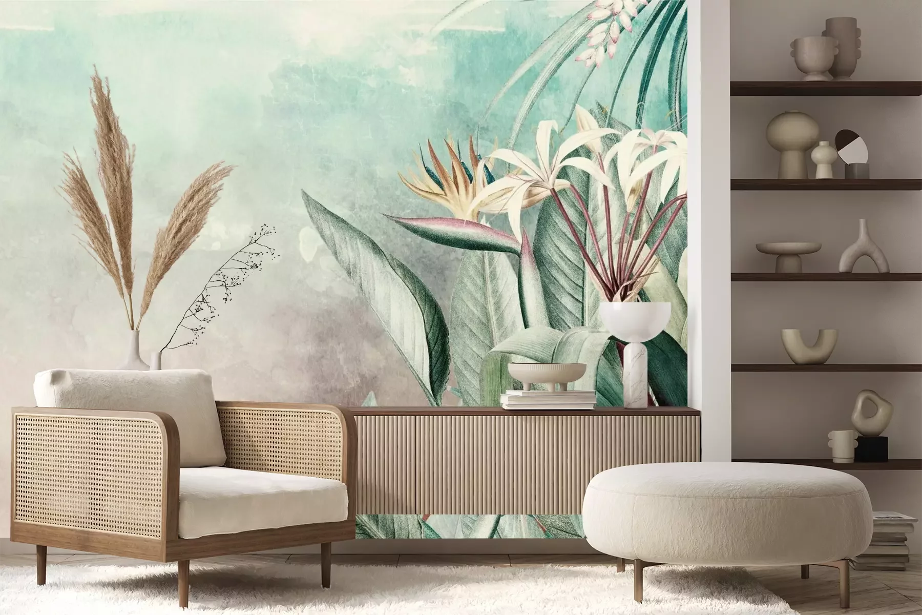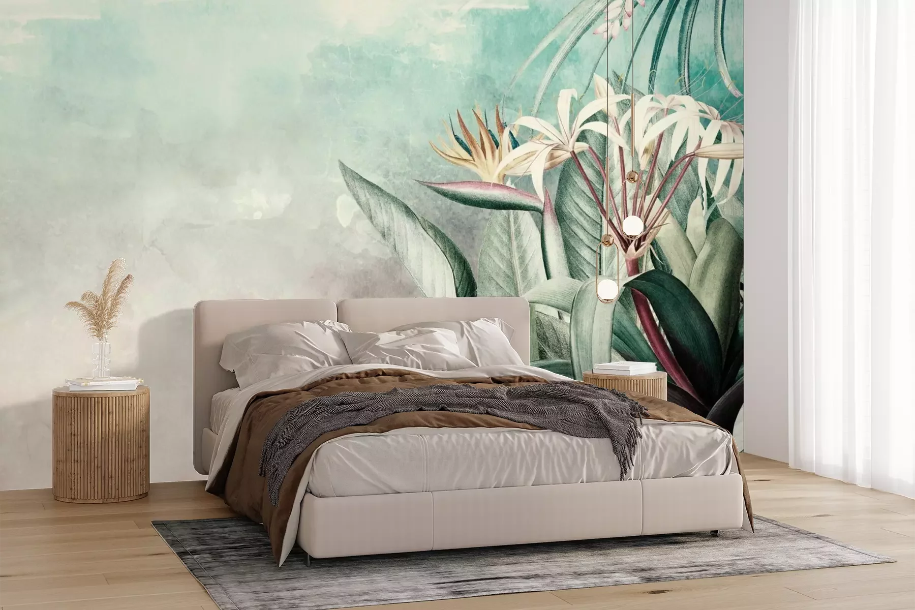 Het materiaal Premium+ is een gestructureerd vinyl op vlies met een gewicht van 255 g/m², dat kleine oneffenheden in de muur effectief camoufleert. De subtiele structuur van fijn zand geeft het oppervlak een exclusieve uitstraling, terwijl de halfmatte afwerking de diepte van de kleuren benadrukt. Het materiaal is dampdoorlatend, waardoor het ook in de keuken en badkamer kan worden gebruikt. De maximale breedte van één baan bedraagt 100 cm – bij grotere afmetingen wordt het fotobehang in meerdere gelijke banen verdeeld. De lijm wordt direct op de muur aangebracht en het behang wordt rand-aan-rand geplakt, wat zorgt voor een esthetisch resultaat zonder zichtbare naden. Het oppervlak kan gemakkelijk worden schoongemaakt door het voorzichtig af te nemen met een vochtige doek.