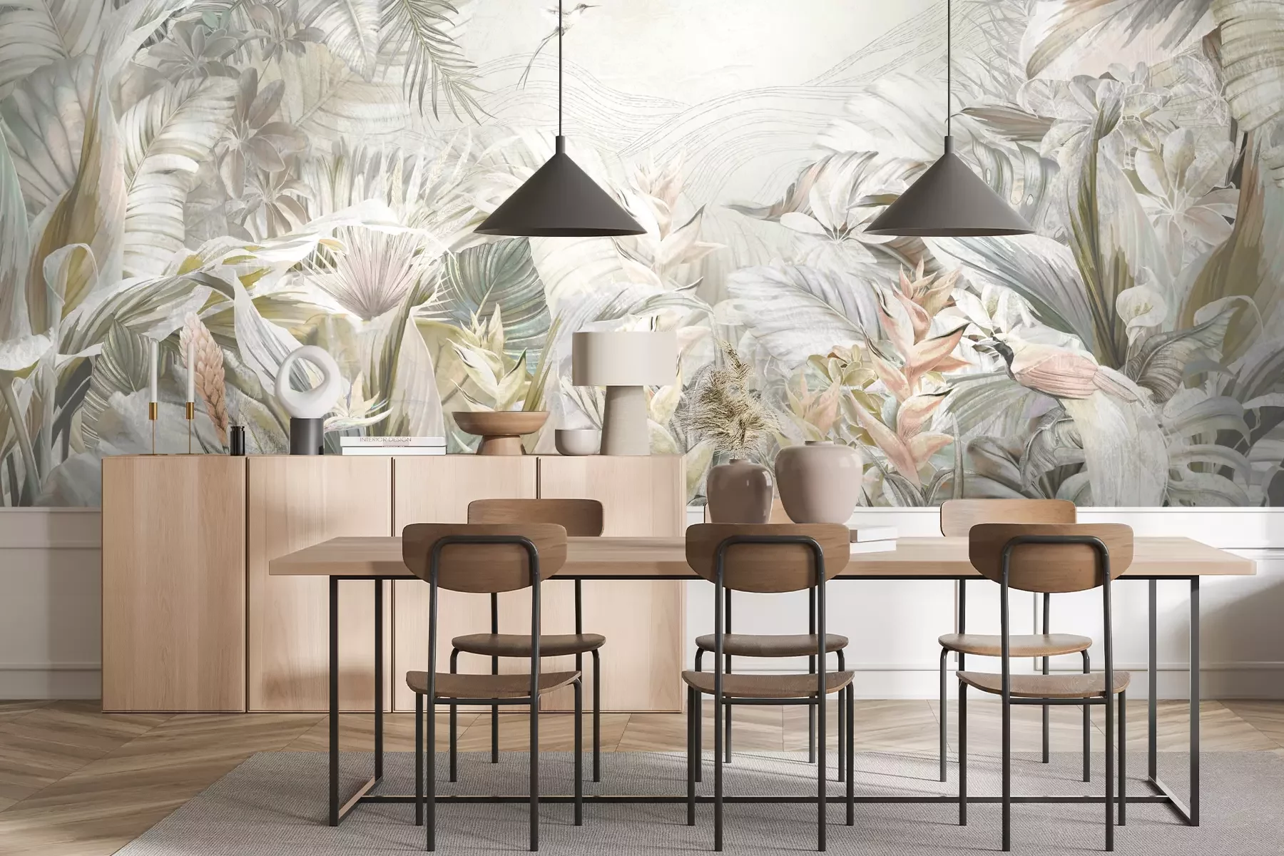 Het materiaal Premium+ is een gestructureerd vinyl op vlies met een gewicht van 255 g/m², dat kleine oneffenheden in de muur effectief camoufleert. De subtiele structuur van fijn zand geeft het oppervlak een exclusieve uitstraling, terwijl de halfmatte afwerking de diepte van de kleuren benadrukt. Het materiaal is dampdoorlatend, waardoor het ook in de keuken en badkamer kan worden gebruikt. De maximale breedte van één baan bedraagt 100 cm – bij grotere afmetingen wordt het fotobehang in meerdere gelijke banen verdeeld. De lijm wordt direct op de muur aangebracht en het behang wordt rand-aan-rand geplakt, wat zorgt voor een esthetisch resultaat zonder zichtbare naden. Het oppervlak kan gemakkelijk worden schoongemaakt door het voorzichtig af te nemen met een vochtige doek.