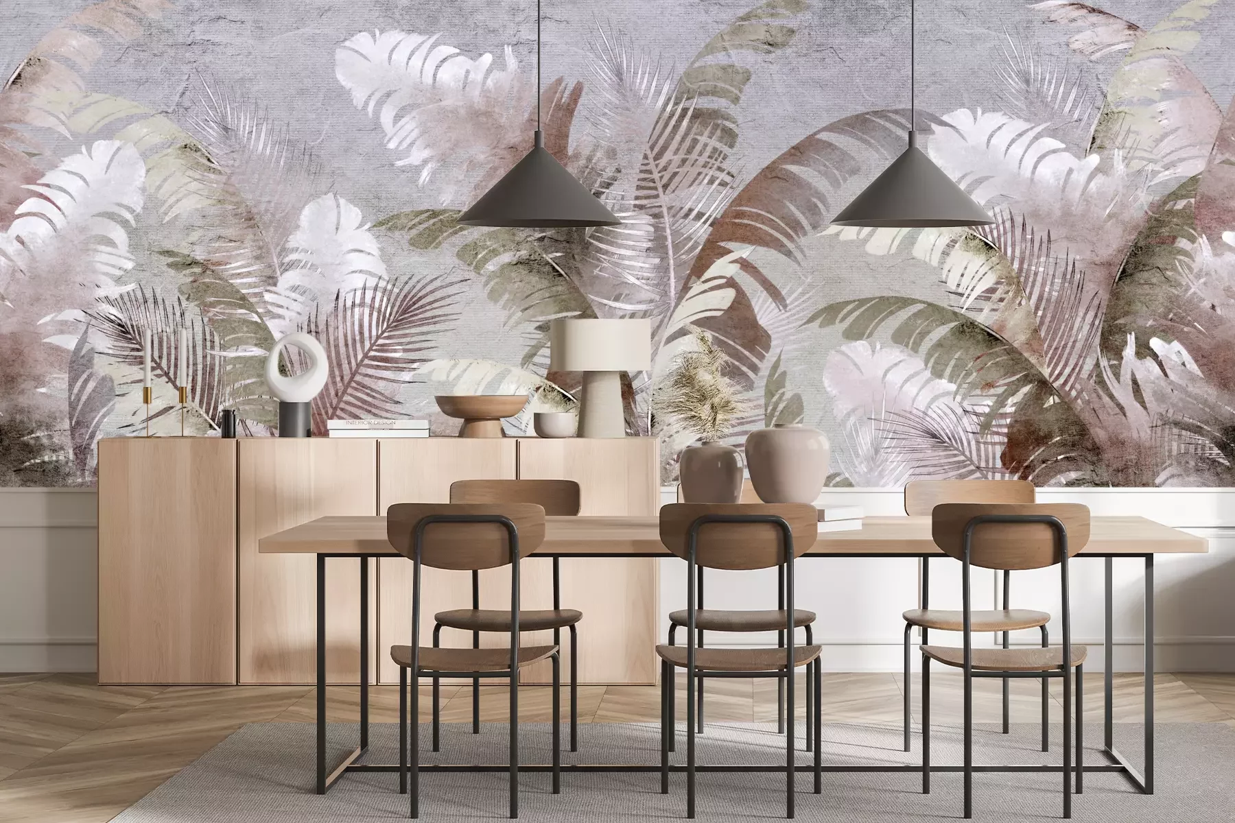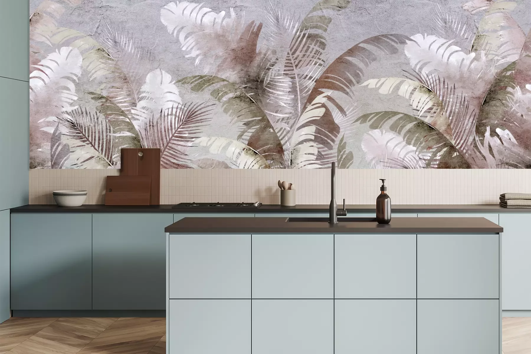 Het materiaal Premium+ is een gestructureerd vinyl op vlies met een gewicht van 255 g/m², dat kleine oneffenheden in de muur effectief camoufleert. De subtiele structuur van fijn zand geeft het oppervlak een exclusieve uitstraling, terwijl de halfmatte afwerking de diepte van de kleuren benadrukt. Het materiaal is dampdoorlatend, waardoor het ook in de keuken en badkamer kan worden gebruikt. De maximale breedte van één baan bedraagt 100 cm – bij grotere afmetingen wordt het fotobehang in meerdere gelijke banen verdeeld. De lijm wordt direct op de muur aangebracht en het behang wordt rand-aan-rand geplakt, wat zorgt voor een esthetisch resultaat zonder zichtbare naden. Het oppervlak kan gemakkelijk worden schoongemaakt door het voorzichtig af te nemen met een vochtige doek.
