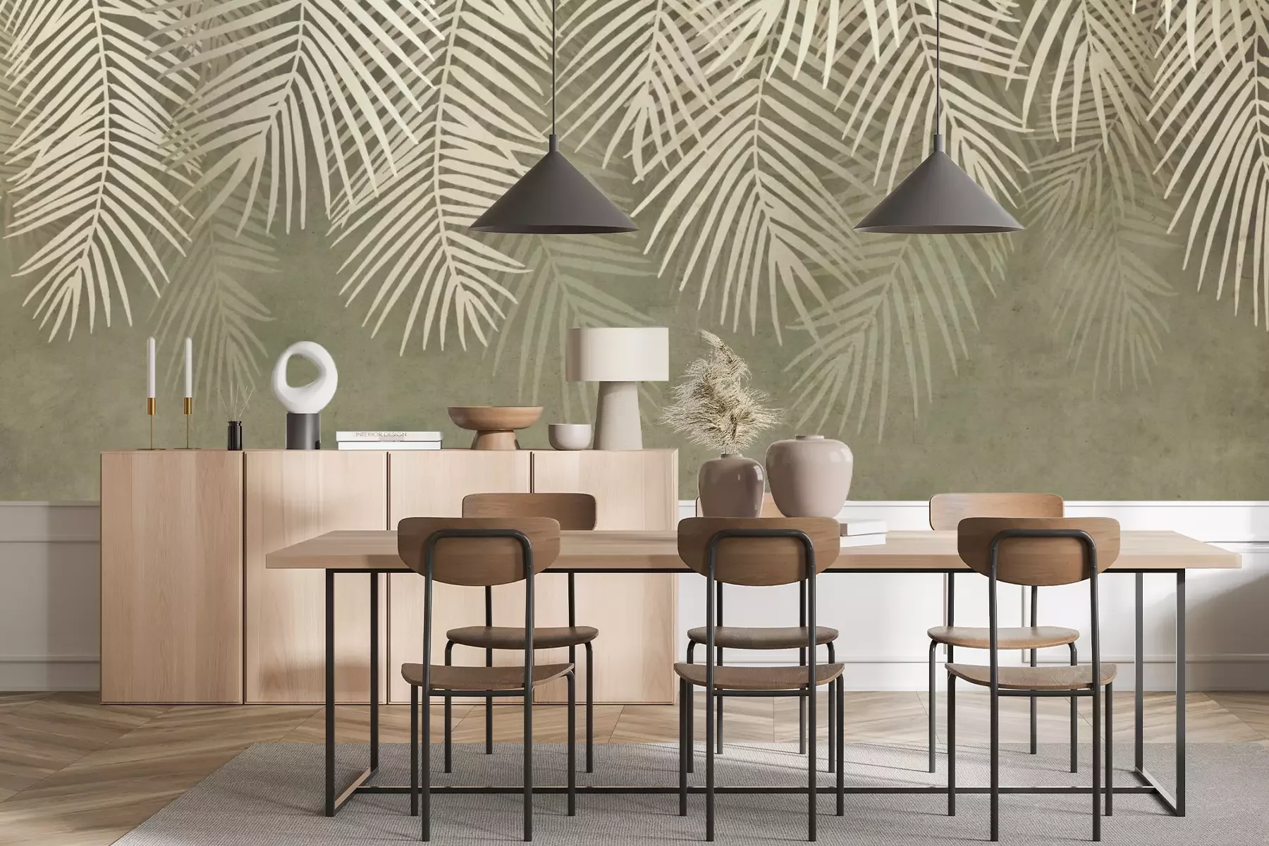 Het materiaal Premium+ is een gestructureerd vinyl op vlies met een gewicht van 255 g/m², dat kleine oneffenheden in de muur effectief camoufleert. De subtiele structuur van fijn zand geeft het oppervlak een exclusieve uitstraling, terwijl de halfmatte afwerking de diepte van de kleuren benadrukt. Het materiaal is dampdoorlatend, waardoor het ook in de keuken en badkamer kan worden gebruikt. De maximale breedte van één baan bedraagt 100 cm – bij grotere afmetingen wordt het fotobehang in meerdere gelijke banen verdeeld. De lijm wordt direct op de muur aangebracht en het behang wordt rand-aan-rand geplakt, wat zorgt voor een esthetisch resultaat zonder zichtbare naden. Het oppervlak kan gemakkelijk worden schoongemaakt door het voorzichtig af te nemen met een vochtige doek.
