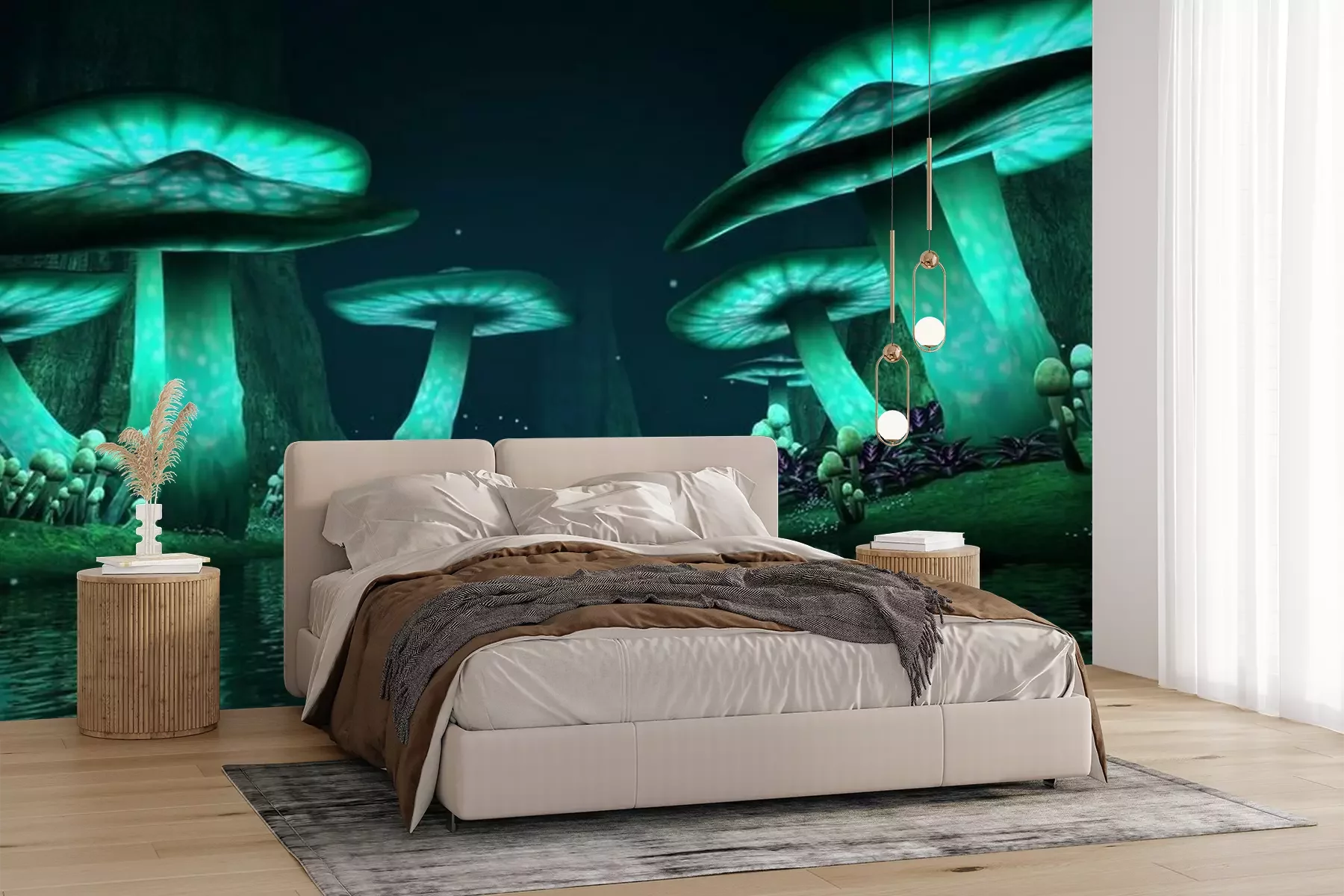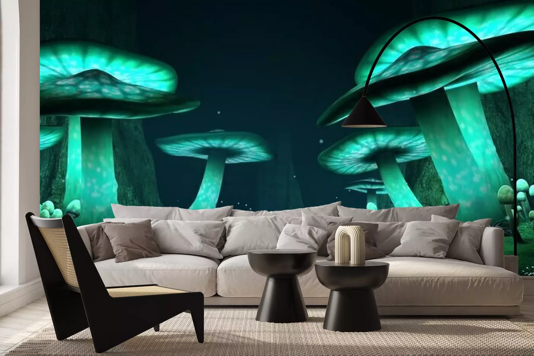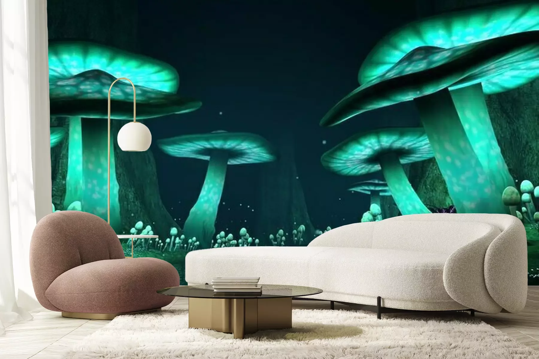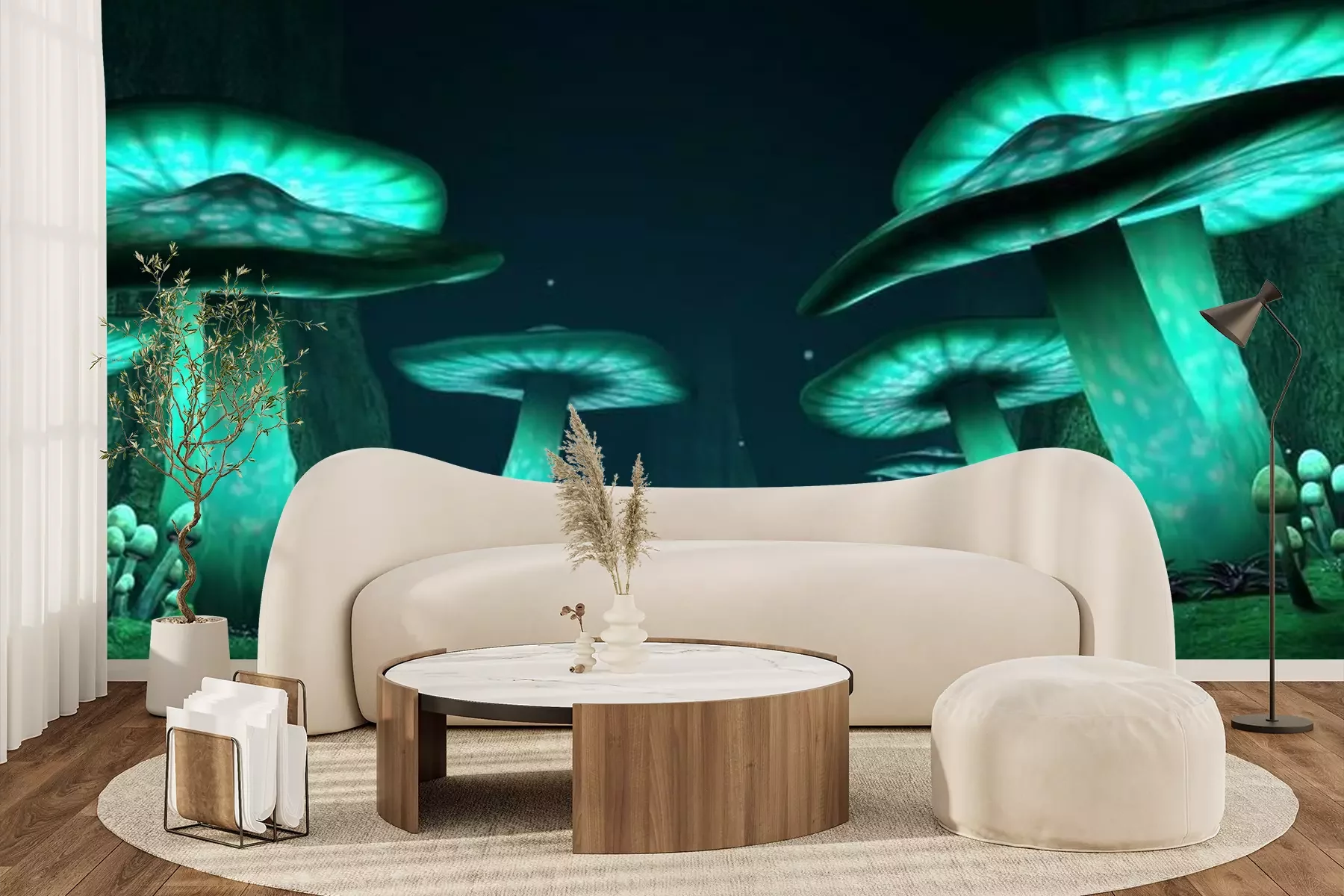 Fotobehang Fantasie gloeiende paddestoelen