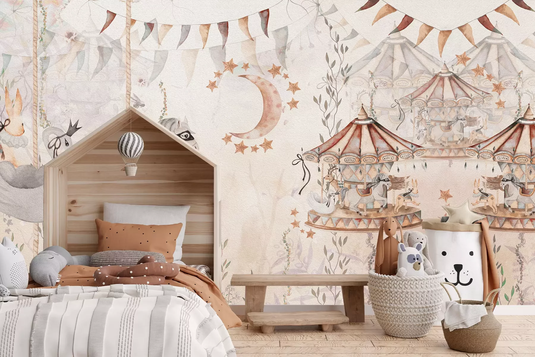 Het materiaal Premium+ is een gestructureerd vinyl op vlies met een gewicht van 255 g/m², dat kleine oneffenheden in de muur effectief camoufleert. De subtiele structuur van fijn zand geeft het oppervlak een exclusieve uitstraling, terwijl de halfmatte afwerking de diepte van de kleuren benadrukt. Het materiaal is dampdoorlatend, waardoor het ook in de keuken en badkamer kan worden gebruikt. De maximale breedte van één baan bedraagt 100 cm – bij grotere afmetingen wordt het fotobehang in meerdere gelijke banen verdeeld. De lijm wordt direct op de muur aangebracht en het behang wordt rand-aan-rand geplakt, wat zorgt voor een esthetisch resultaat zonder zichtbare naden. Het oppervlak kan gemakkelijk worden schoongemaakt door het voorzichtig af te nemen met een vochtige doek.