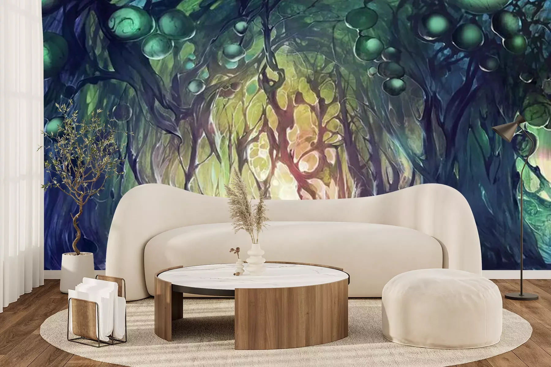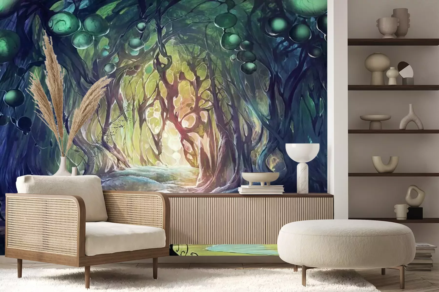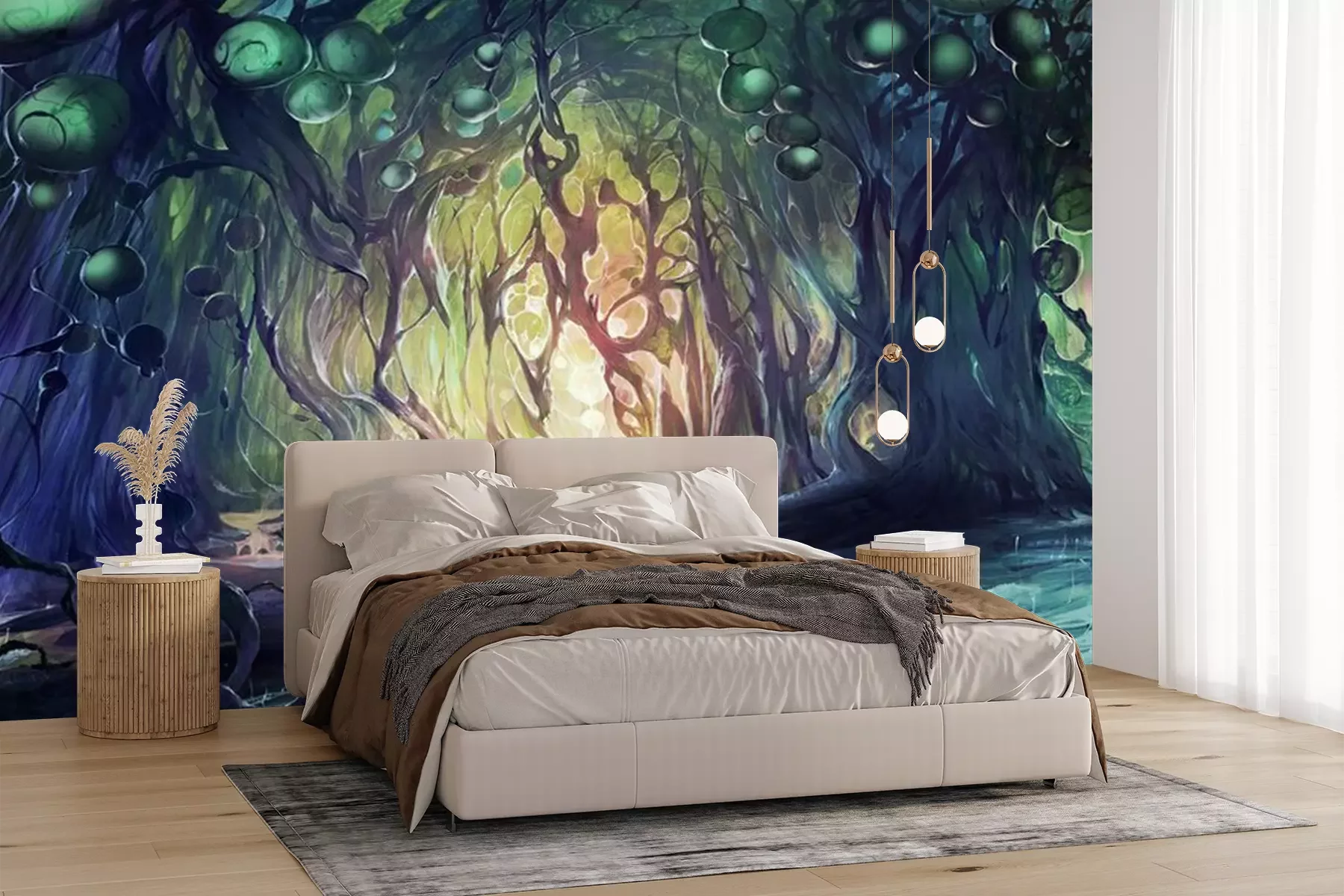 Het materiaal Premium+ is een gestructureerd vinyl op vlies met een gewicht van 255 g/m², dat kleine oneffenheden in de muur effectief camoufleert. De subtiele structuur van fijn zand geeft het oppervlak een exclusieve uitstraling, terwijl de halfmatte afwerking de diepte van de kleuren benadrukt. Het materiaal is dampdoorlatend, waardoor het ook in de keuken en badkamer kan worden gebruikt. De maximale breedte van één baan bedraagt 100 cm – bij grotere afmetingen wordt het fotobehang in meerdere gelijke banen verdeeld. De lijm wordt direct op de muur aangebracht en het behang wordt rand-aan-rand geplakt, wat zorgt voor een esthetisch resultaat zonder zichtbare naden. Het oppervlak kan gemakkelijk worden schoongemaakt door het voorzichtig af te nemen met een vochtige doek.