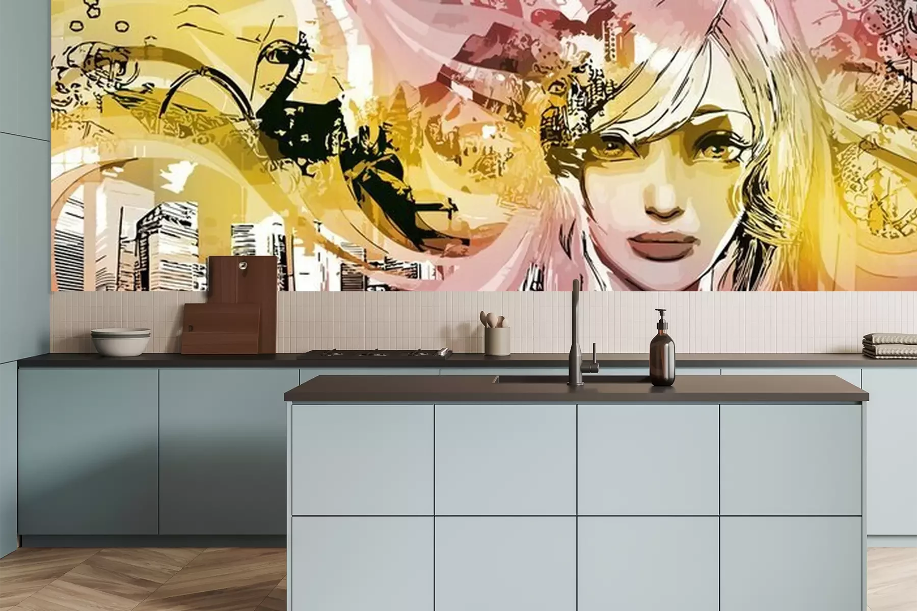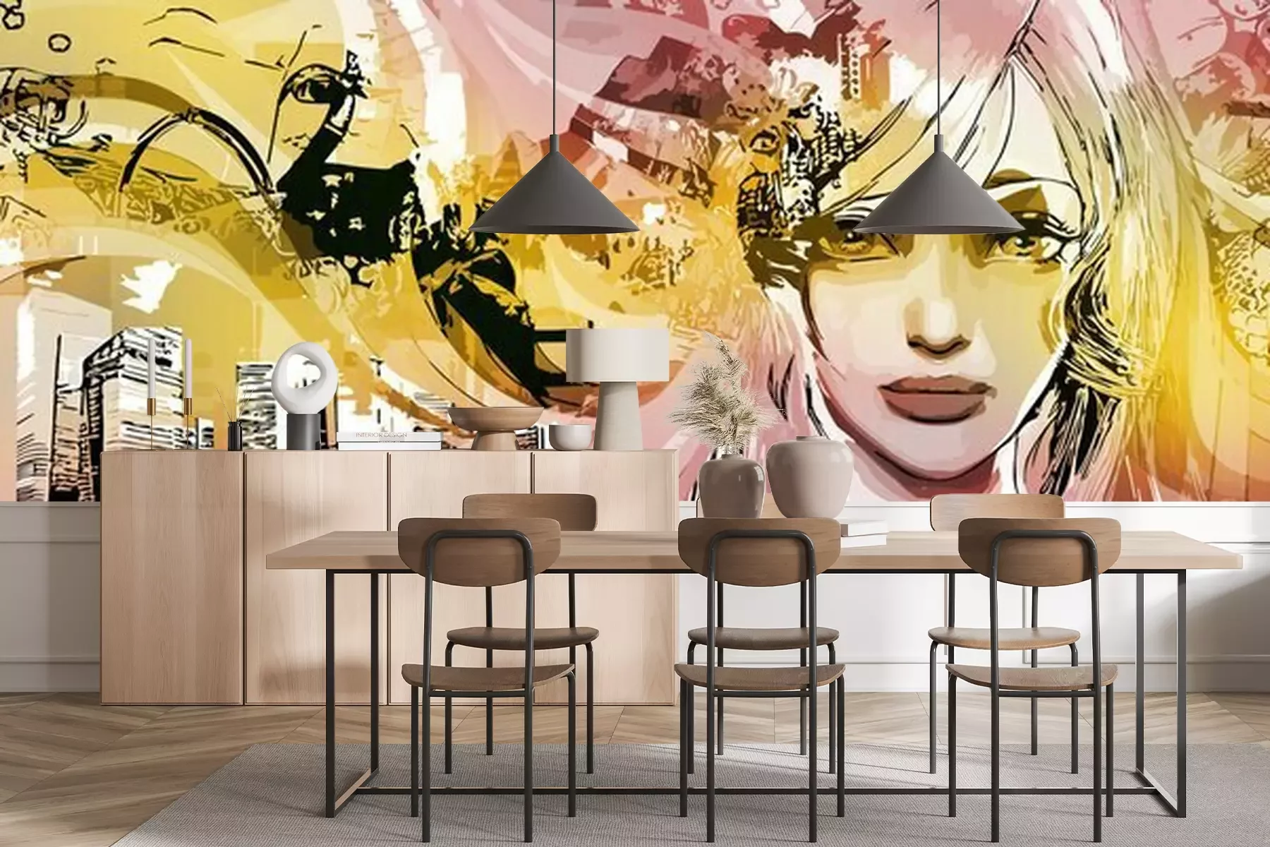Fotobehang Fashionable, abstract, simple, grunge, geometric, street background, color gradient. Vector illustration for Wallpaper, banner, background, postcard, painting, girl, pink, yellow