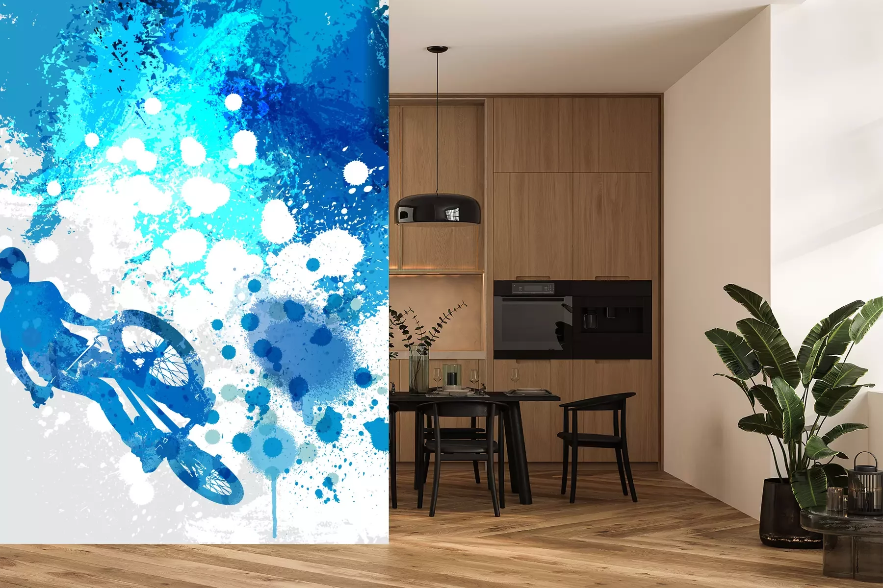 Het materiaal Premium is een glad vinyl op vlies, dat bestand is tegen uitrekken en vervorming. Het is dampdoorlatend – de muren kunnen vrij ademen – waardoor het geschikt is voor gebruik in de keuken en badkamer. Bij vervuiling kan het materiaal worden afgenomen met een vochtige doek. De maximale breedte van één baan bedraagt 95 of 105 cm, afhankelijk van de beschikbaarheid. Montage vindt plaats met de rand-aan-rand methode, wat een esthetisch resultaat zonder zichtbare naden oplevert. Omdat de lijm rechtstreeks op de muur wordt aangebracht, verloopt de installatie van het fotobehang snel en eenvoudig.