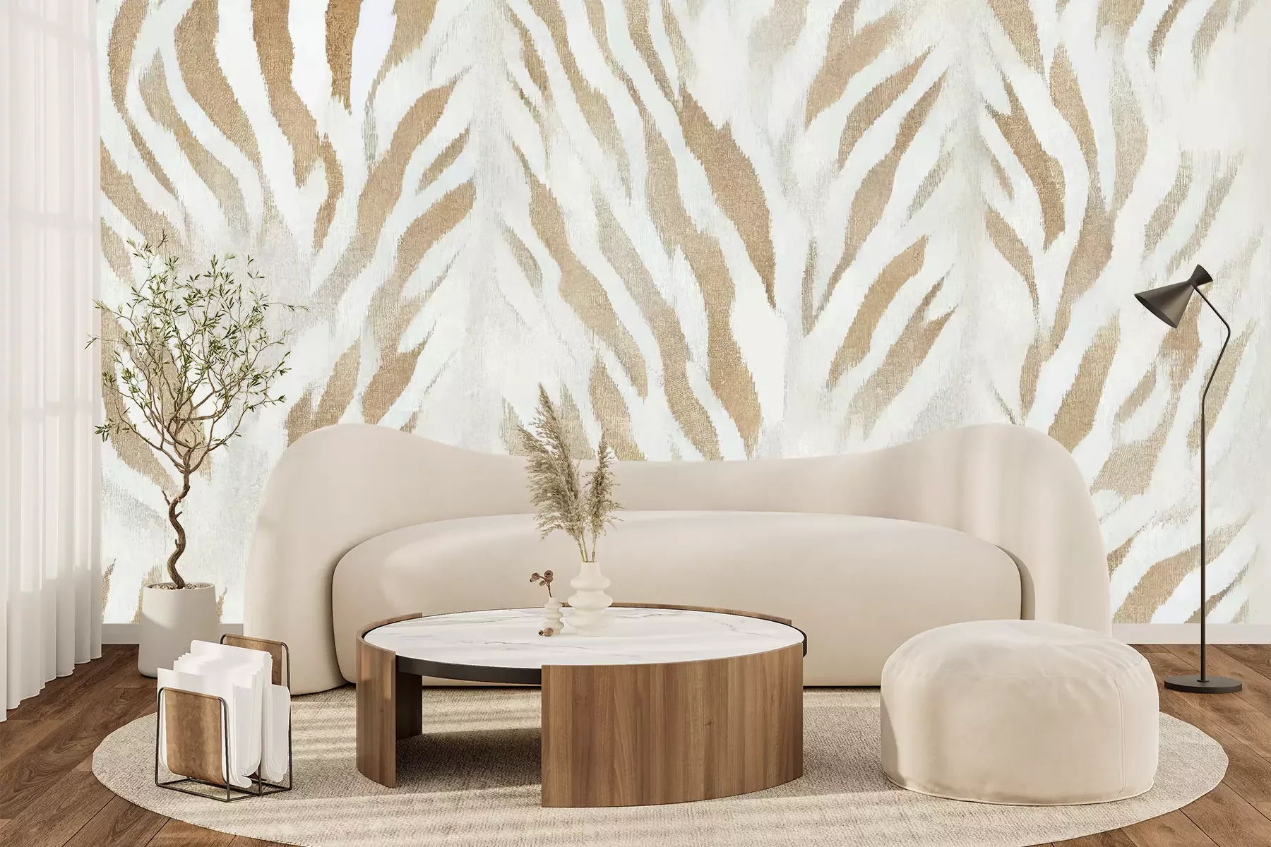 Het materiaal Standard is een hoogwaardig latexmateriaal met een glad, mat oppervlak. Dankzij de HP Latex-printtechnologie zijn de kleuren intens, duurzaam en UV-bestendig, waardoor het patroon jarenlang een onberispelijke uitstraling behoudt. Vervuilde oppervlakken kunnen voorzichtig worden afgeveegd met een droge doek. De maximale breedte van één baan bedraagt 95 cm of 105 cm – afhankelijk van de bestelde fotobehangbreedte. Bij grotere afmetingen wordt het patroon verdeeld over meerdere gelijkmatige banen. Het fotobehang wordt rand-aan-randaangebracht, wat vrijwel onzichtbare naden mogelijk maakt.