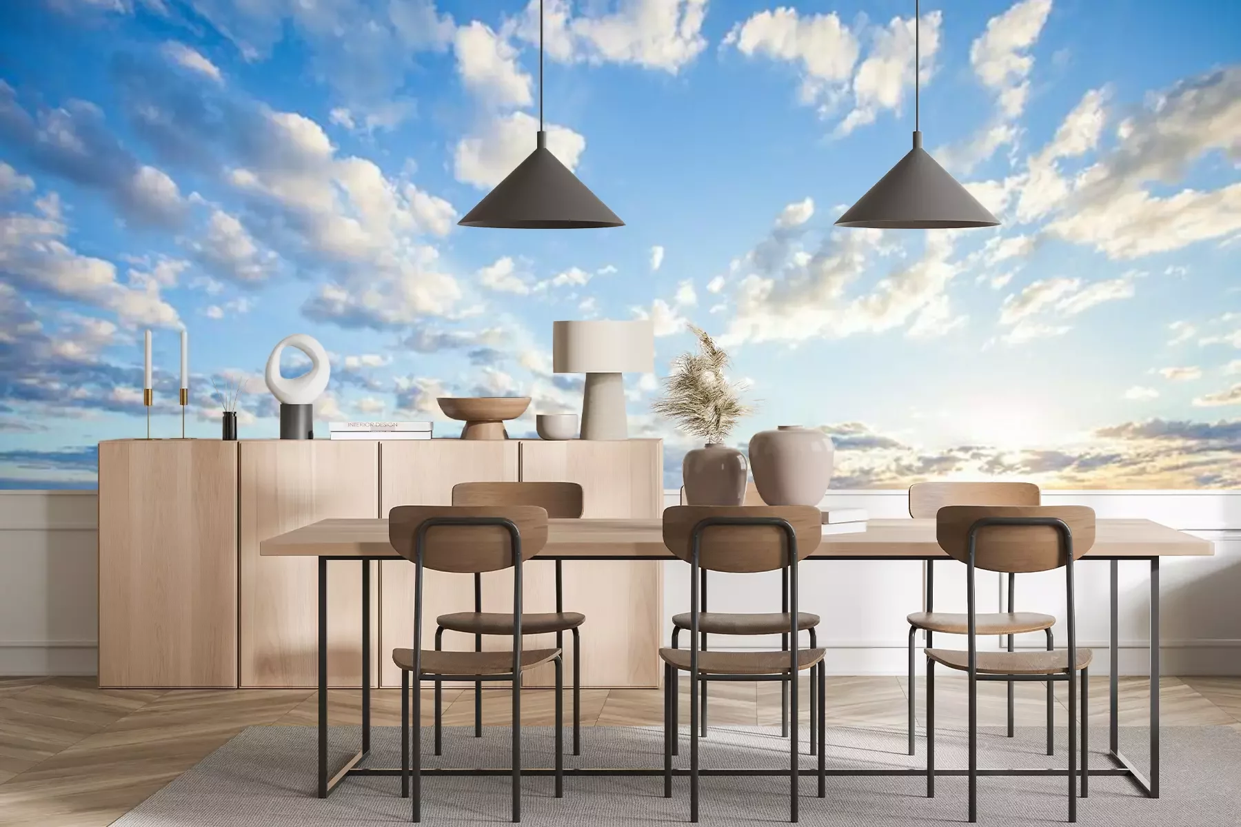 Het materiaal Premium+ is een gestructureerd vinyl op vlies met een gewicht van 255 g/m², dat kleine oneffenheden in de muur effectief camoufleert. De subtiele structuur van fijn zand geeft het oppervlak een exclusieve uitstraling, terwijl de halfmatte afwerking de diepte van de kleuren benadrukt. Het materiaal is dampdoorlatend, waardoor het ook in de keuken en badkamer kan worden gebruikt. De maximale breedte van één baan bedraagt 100 cm – bij grotere afmetingen wordt het fotobehang in meerdere gelijke banen verdeeld. De lijm wordt direct op de muur aangebracht en het behang wordt rand-aan-rand geplakt, wat zorgt voor een esthetisch resultaat zonder zichtbare naden. Het oppervlak kan gemakkelijk worden schoongemaakt door het voorzichtig af te nemen met een vochtige doek.