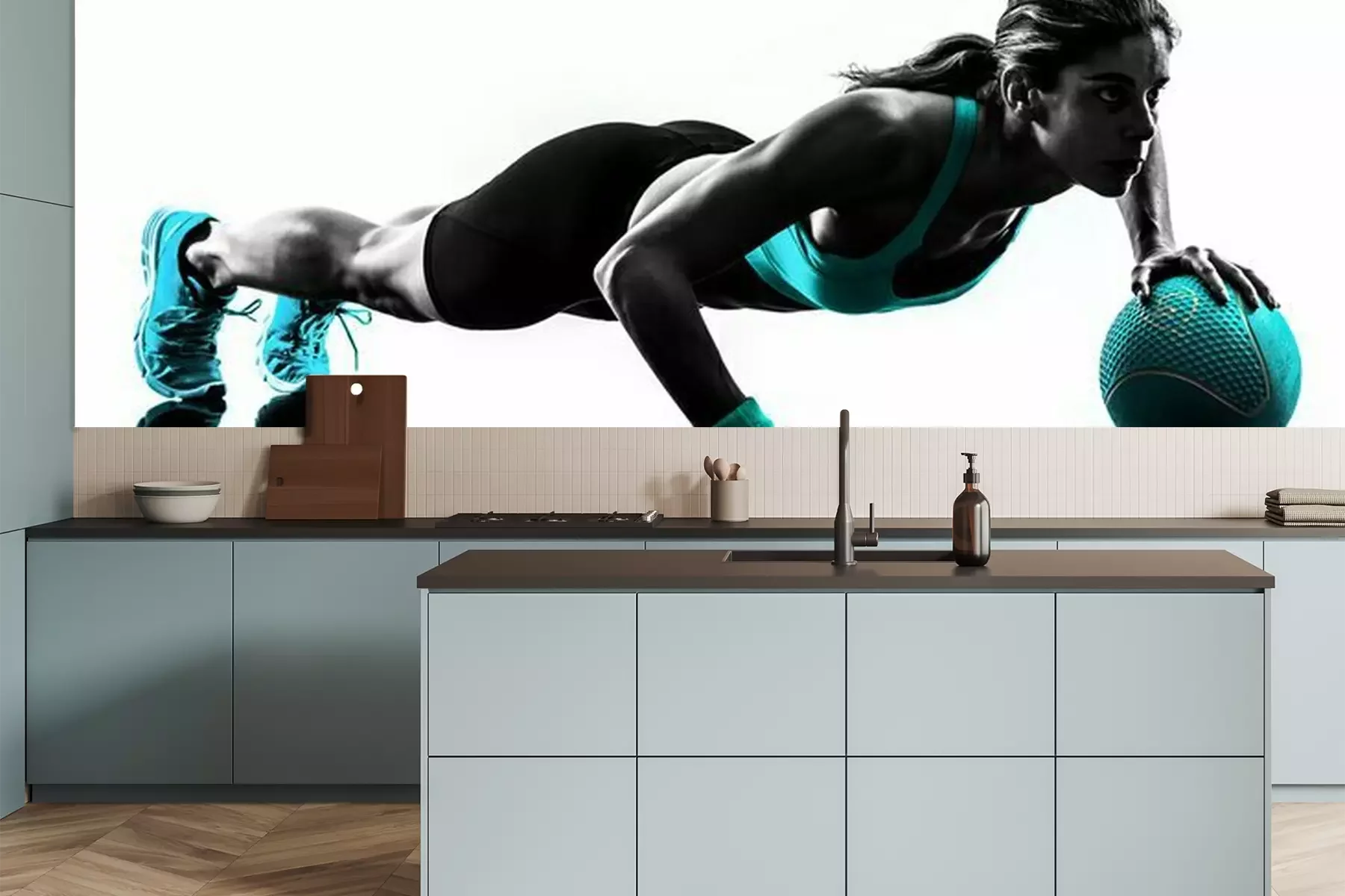 Het materiaal Premium is een glad vinyl op vlies, dat bestand is tegen uitrekken en vervorming. Het is dampdoorlatend – de muren kunnen vrij ademen – waardoor het geschikt is voor gebruik in de keuken en badkamer. Bij vervuiling kan het materiaal worden afgenomen met een vochtige doek. De maximale breedte van één baan bedraagt 95 of 105 cm, afhankelijk van de beschikbaarheid. Montage vindt plaats met de rand-aan-rand methode, wat een esthetisch resultaat zonder zichtbare naden oplevert. Omdat de lijm rechtstreeks op de muur wordt aangebracht, verloopt de installatie van het fotobehang snel en eenvoudig.