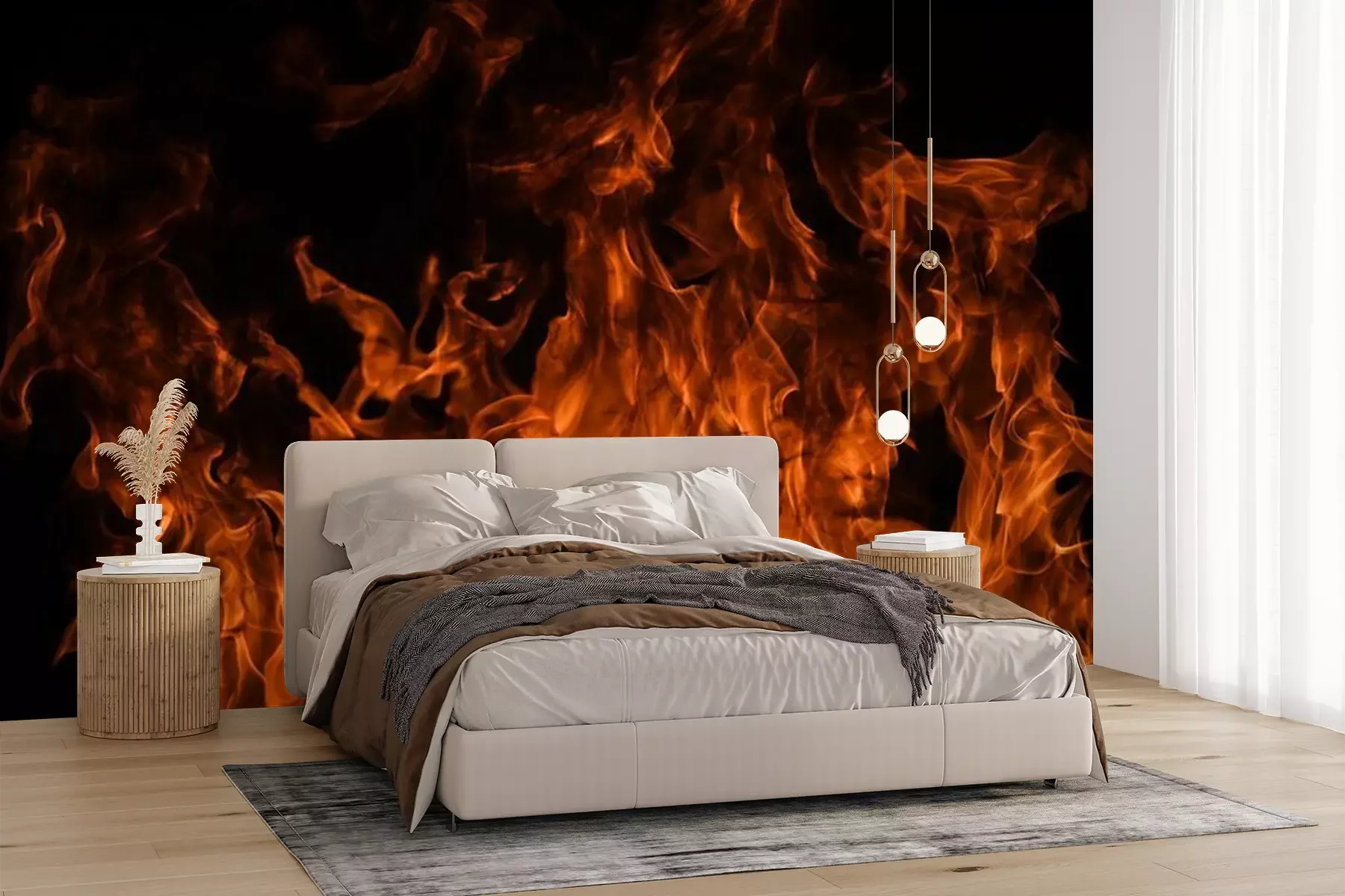Fotobehang Flame fires. Burn lights on a black background. Fire flames on black background. Abstract fire flame background.