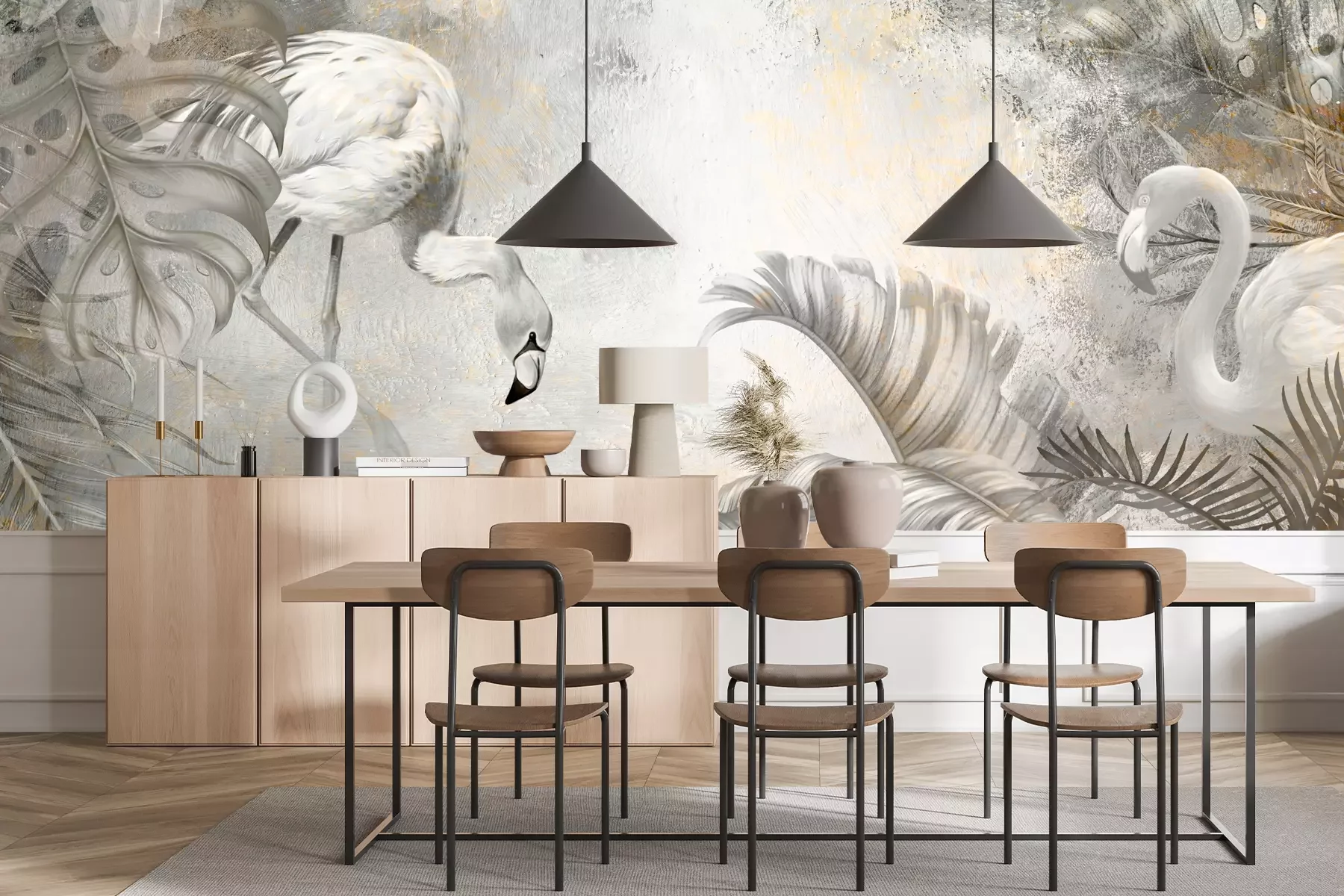 Het materiaal Premium+ is een gestructureerd vinyl op vlies met een gewicht van 255 g/m², dat kleine oneffenheden in de muur effectief camoufleert. De subtiele structuur van fijn zand geeft het oppervlak een exclusieve uitstraling, terwijl de halfmatte afwerking de diepte van de kleuren benadrukt. Het materiaal is dampdoorlatend, waardoor het ook in de keuken en badkamer kan worden gebruikt. De maximale breedte van één baan bedraagt 100 cm – bij grotere afmetingen wordt het fotobehang in meerdere gelijke banen verdeeld. De lijm wordt direct op de muur aangebracht en het behang wordt rand-aan-rand geplakt, wat zorgt voor een esthetisch resultaat zonder zichtbare naden. Het oppervlak kan gemakkelijk worden schoongemaakt door het voorzichtig af te nemen met een vochtige doek.
