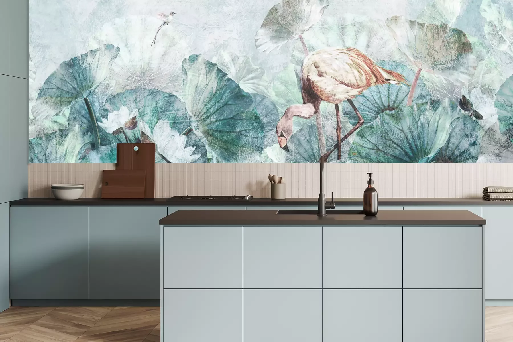 Het materiaal Premium+ is een gestructureerd vinyl op vlies met een gewicht van 255 g/m², dat kleine oneffenheden in de muur effectief camoufleert. De subtiele structuur van fijn zand geeft het oppervlak een exclusieve uitstraling, terwijl de halfmatte afwerking de diepte van de kleuren benadrukt. Het materiaal is dampdoorlatend, waardoor het ook in de keuken en badkamer kan worden gebruikt. De maximale breedte van één baan bedraagt 100 cm – bij grotere afmetingen wordt het fotobehang in meerdere gelijke banen verdeeld. De lijm wordt direct op de muur aangebracht en het behang wordt rand-aan-rand geplakt, wat zorgt voor een esthetisch resultaat zonder zichtbare naden. Het oppervlak kan gemakkelijk worden schoongemaakt door het voorzichtig af te nemen met een vochtige doek.