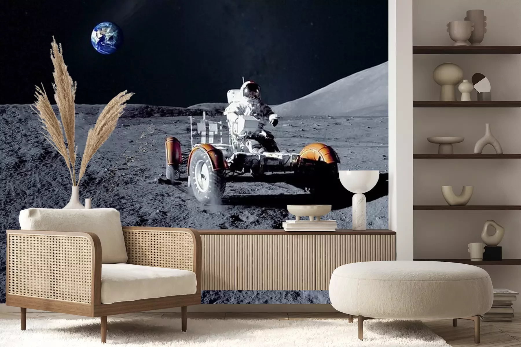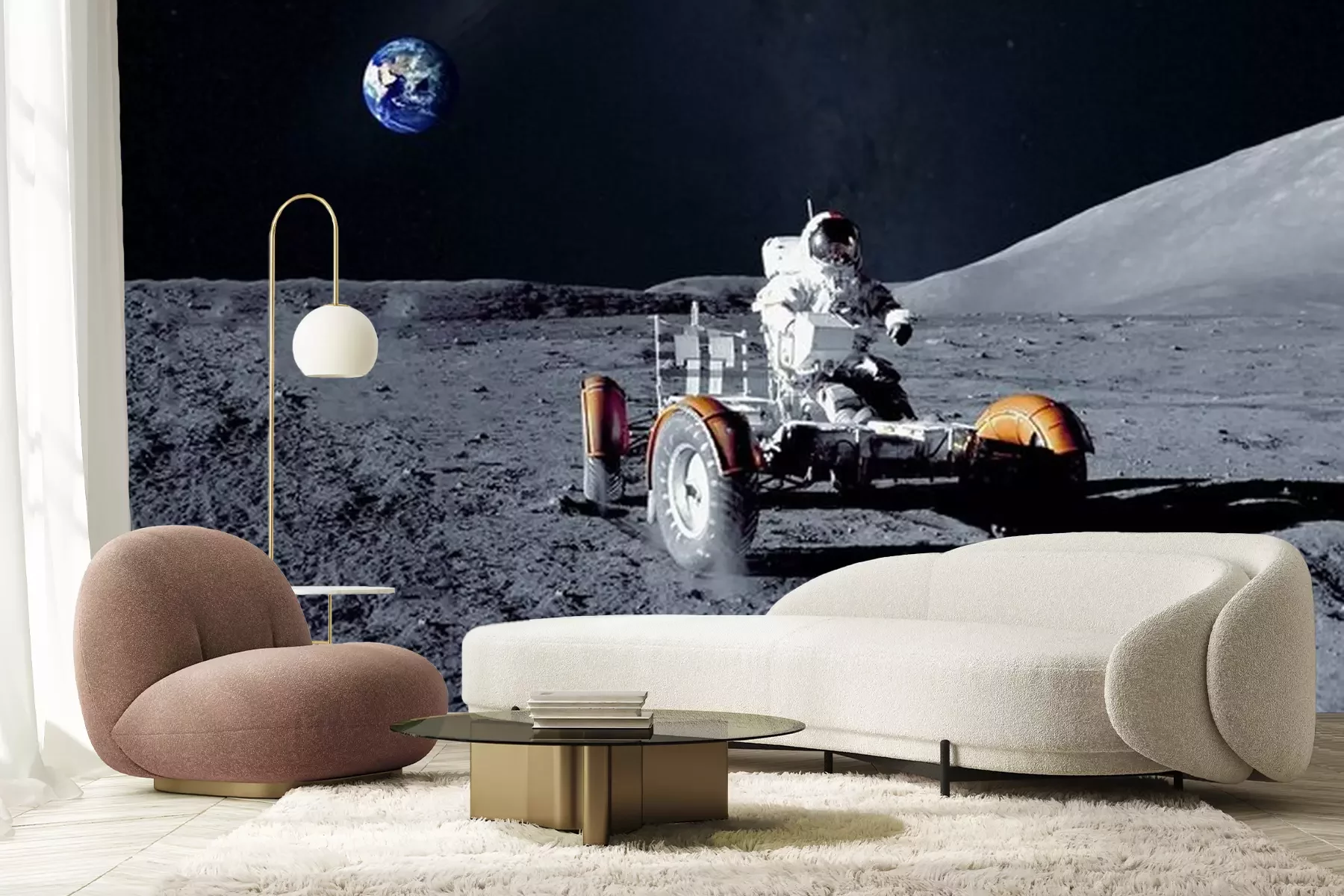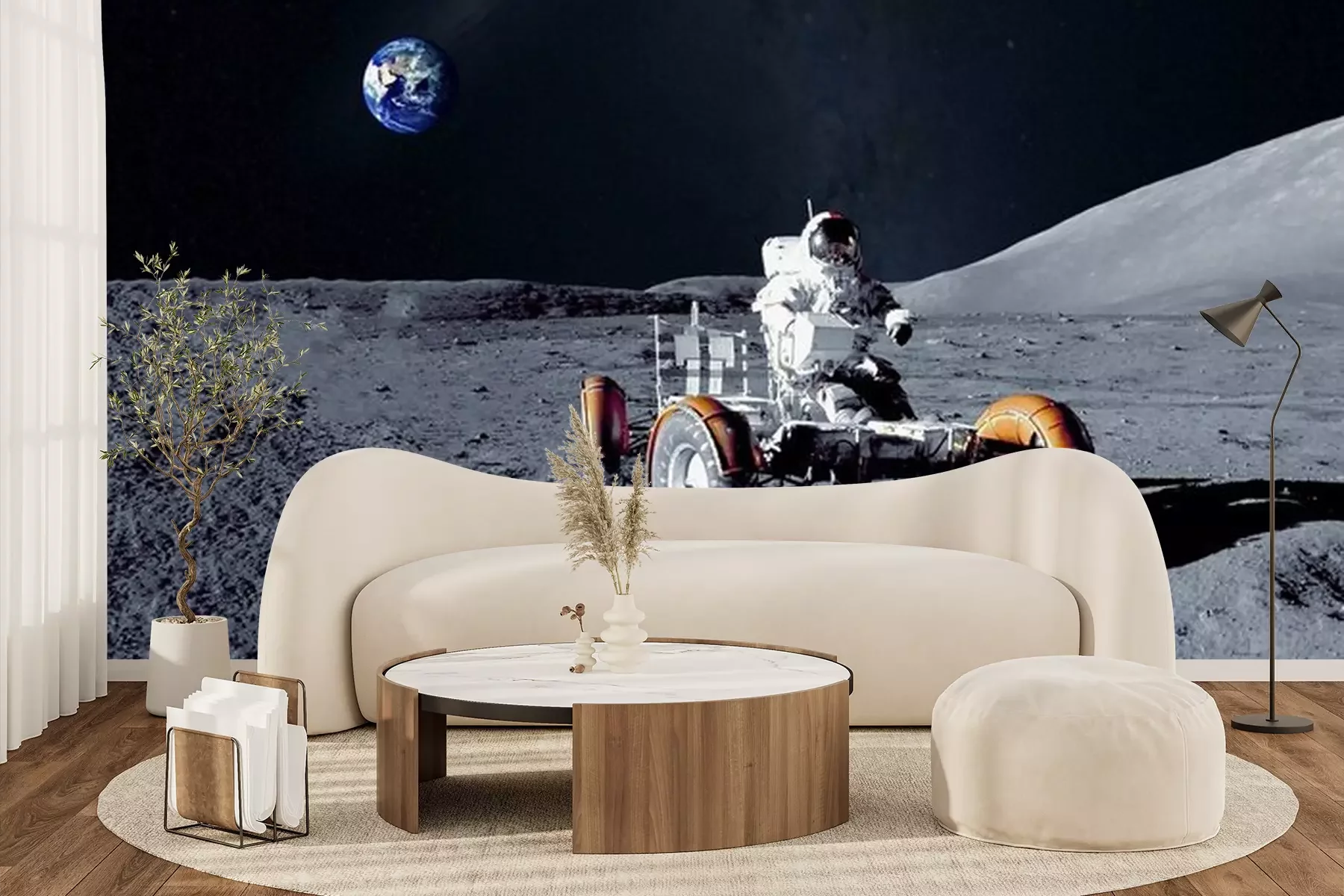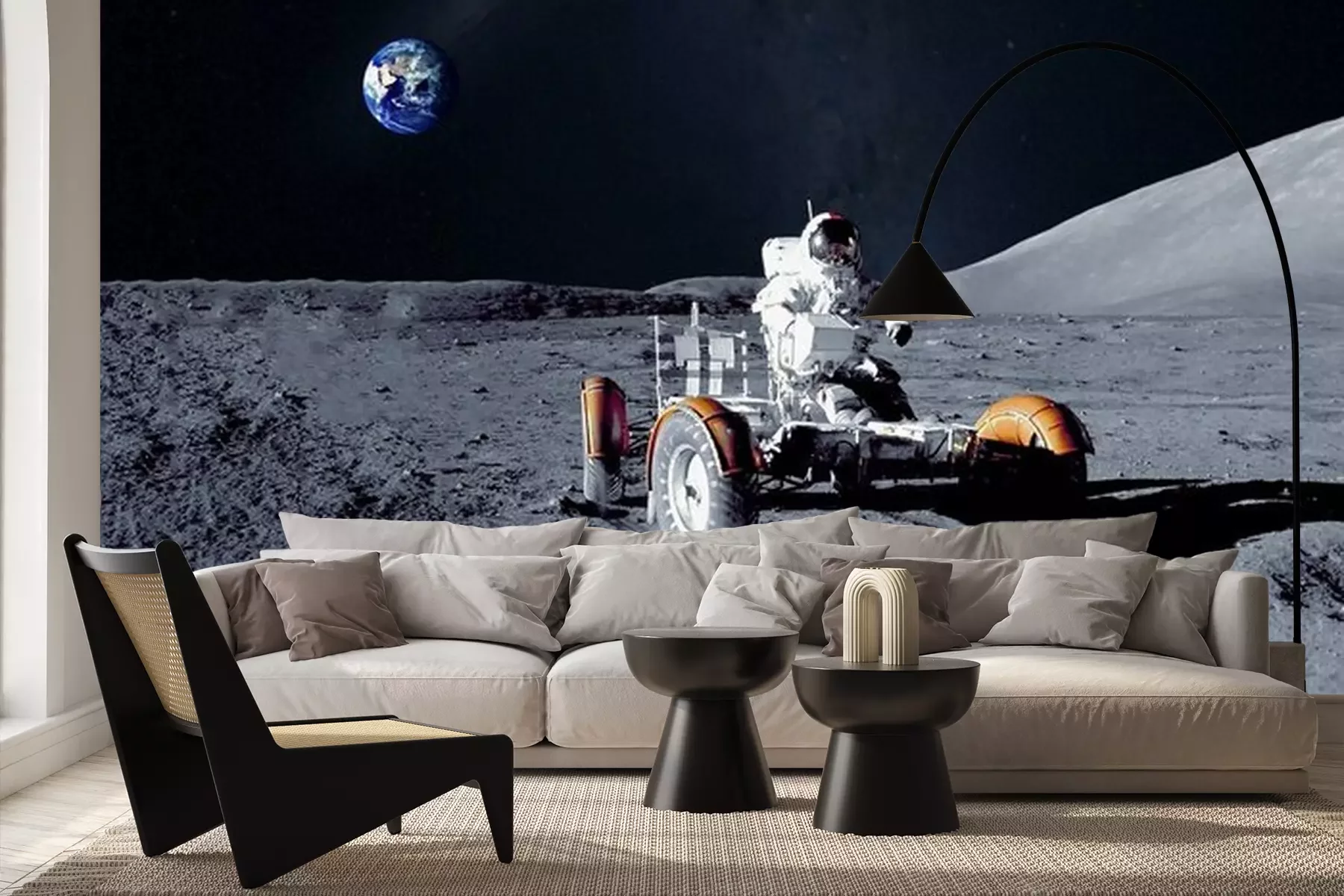 Fotobehang Foto van astronaut met de aarde op de achtergrond