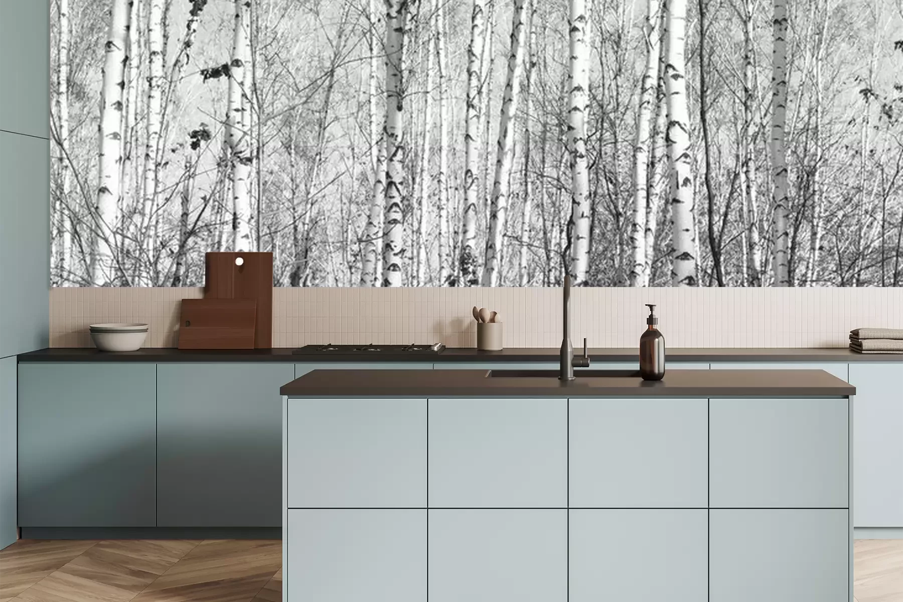 Het materiaal Premium is een glad vinyl op vlies, dat bestand is tegen uitrekken en vervorming. Het is dampdoorlatend – de muren kunnen vrij ademen – waardoor het geschikt is voor gebruik in de keuken en badkamer. Bij vervuiling kan het materiaal worden afgenomen met een vochtige doek. De maximale breedte van één baan bedraagt 95 of 105 cm, afhankelijk van de beschikbaarheid. Montage vindt plaats met de rand-aan-rand methode, wat een esthetisch resultaat zonder zichtbare naden oplevert. Omdat de lijm rechtstreeks op de muur wordt aangebracht, verloopt de installatie van het fotobehang snel en eenvoudig.