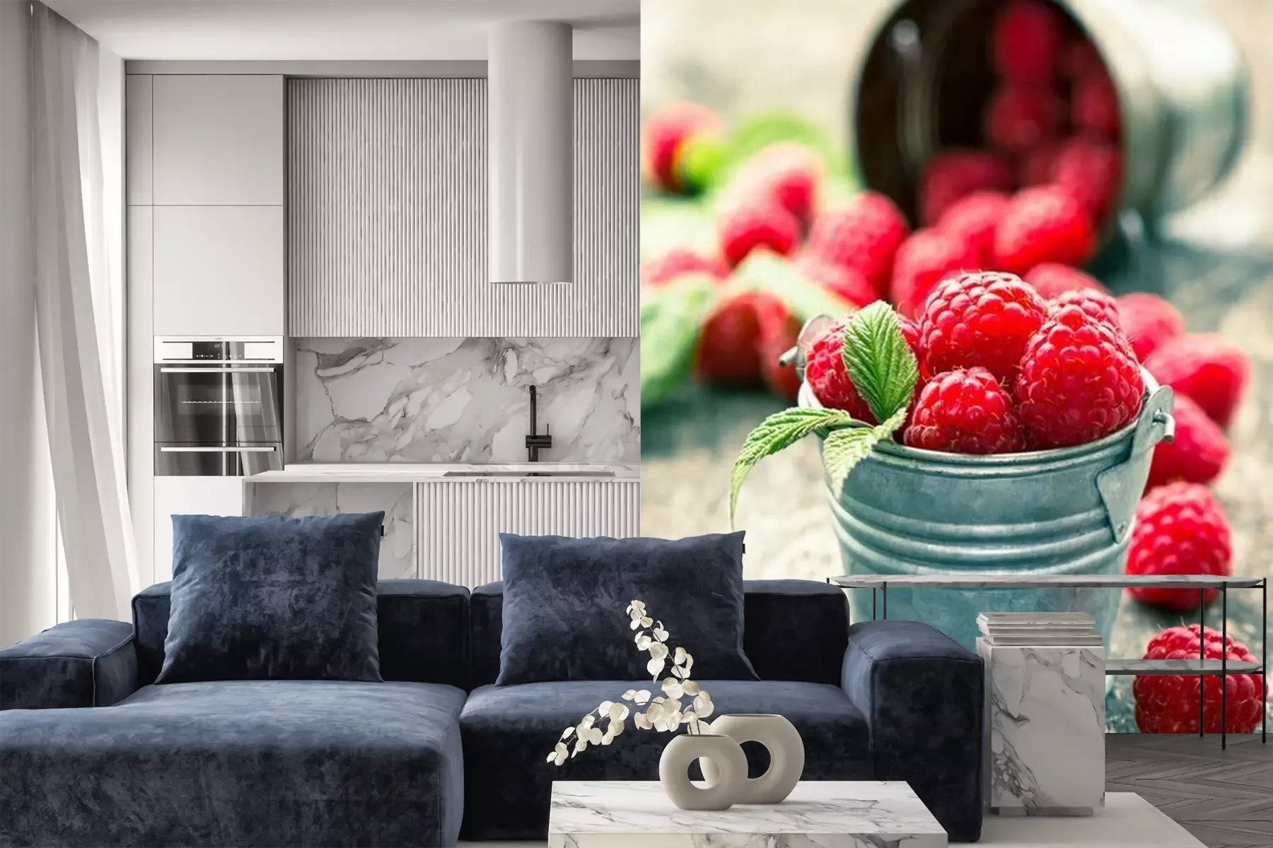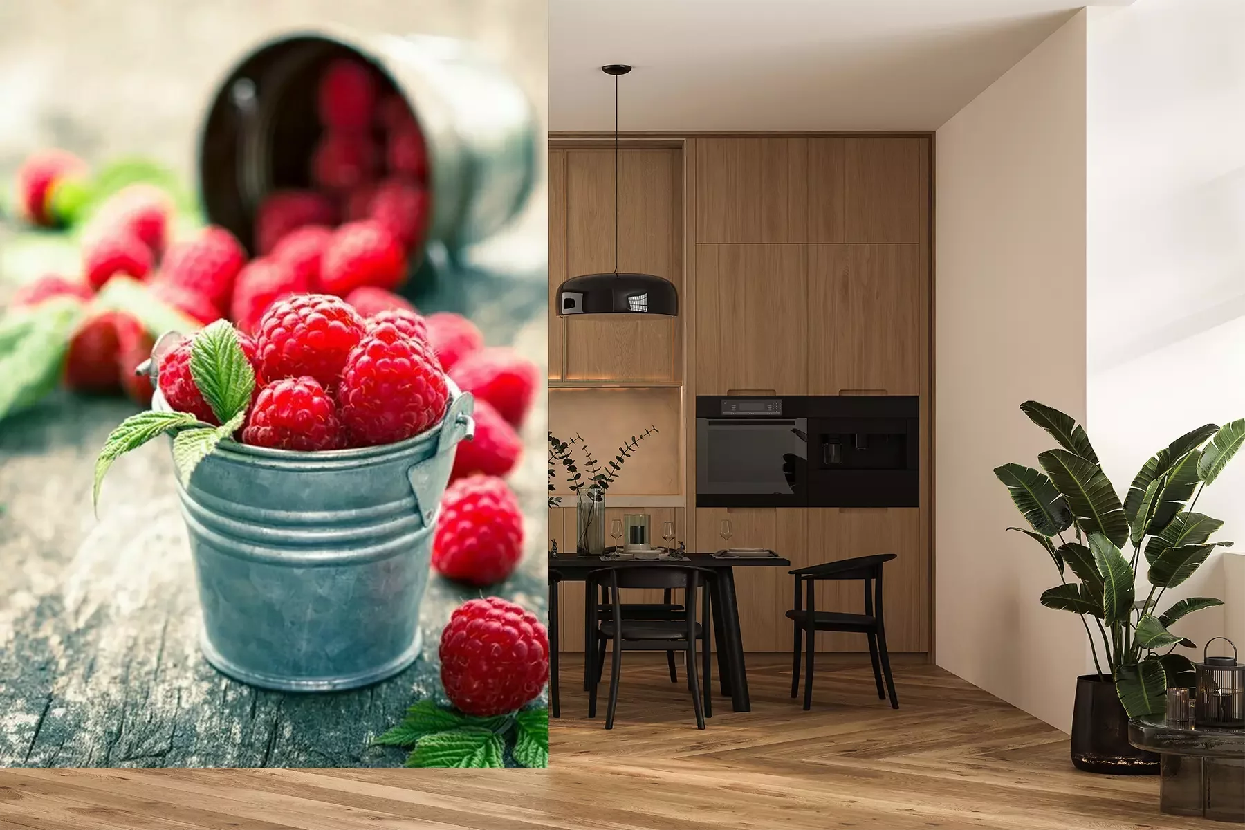 Het materiaal Premium is een glad vinyl op vlies, dat bestand is tegen uitrekken en vervorming. Het is dampdoorlatend – de muren kunnen vrij ademen – waardoor het geschikt is voor gebruik in de keuken en badkamer. Bij vervuiling kan het materiaal worden afgenomen met een vochtige doek. De maximale breedte van één baan bedraagt 95 of 105 cm, afhankelijk van de beschikbaarheid. Montage vindt plaats met de rand-aan-rand methode, wat een esthetisch resultaat zonder zichtbare naden oplevert. Omdat de lijm rechtstreeks op de muur wordt aangebracht, verloopt de installatie van het fotobehang snel en eenvoudig.