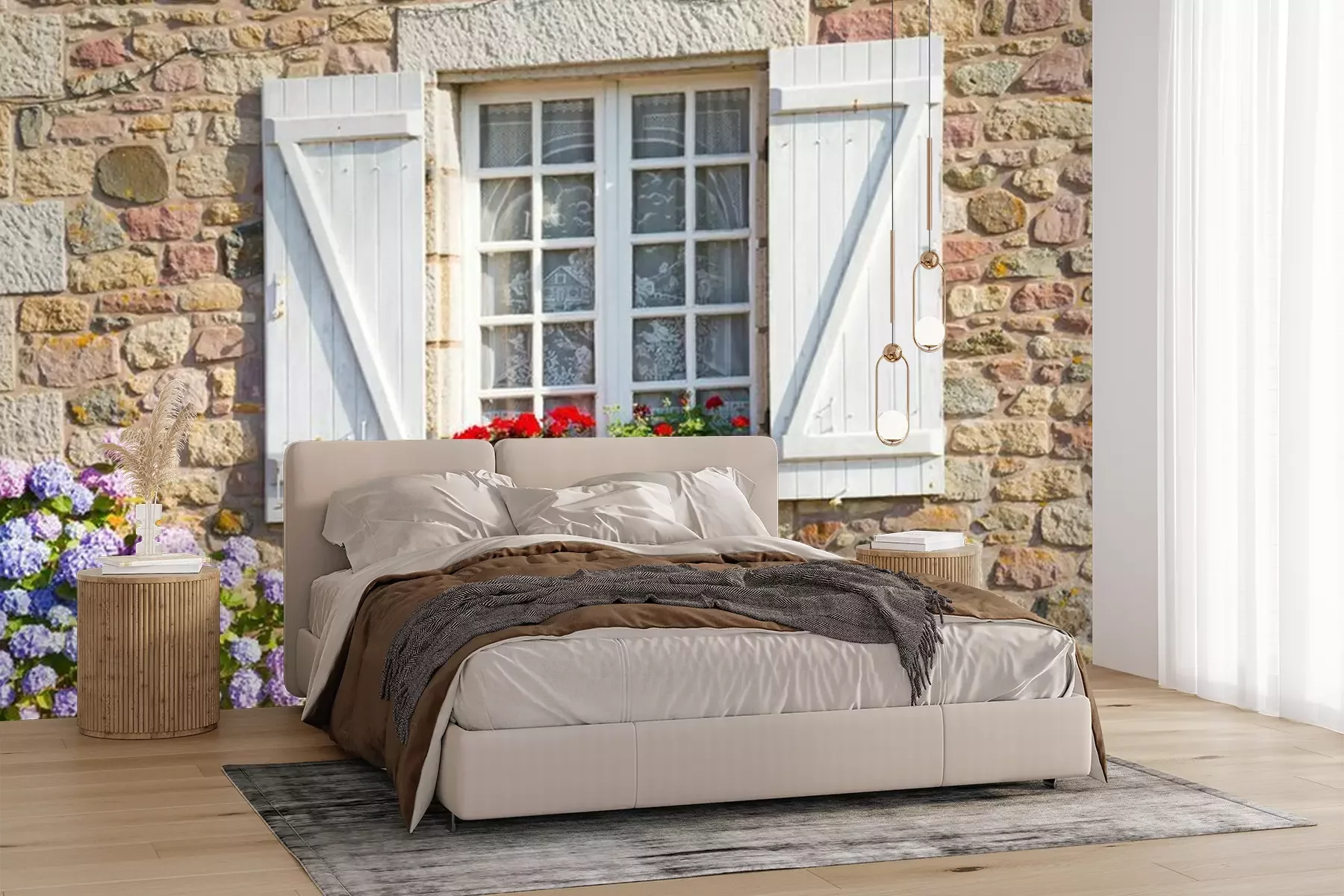 Het materiaal Premium+ is een gestructureerd vinyl op vlies met een gewicht van 255 g/m², dat kleine oneffenheden in de muur effectief camoufleert. De subtiele structuur van fijn zand geeft het oppervlak een exclusieve uitstraling, terwijl de halfmatte afwerking de diepte van de kleuren benadrukt. Het materiaal is dampdoorlatend, waardoor het ook in de keuken en badkamer kan worden gebruikt. De maximale breedte van één baan bedraagt 100 cm – bij grotere afmetingen wordt het fotobehang in meerdere gelijke banen verdeeld. De lijm wordt direct op de muur aangebracht en het behang wordt rand-aan-rand geplakt, wat zorgt voor een esthetisch resultaat zonder zichtbare naden. Het oppervlak kan gemakkelijk worden schoongemaakt door het voorzichtig af te nemen met een vochtige doek.