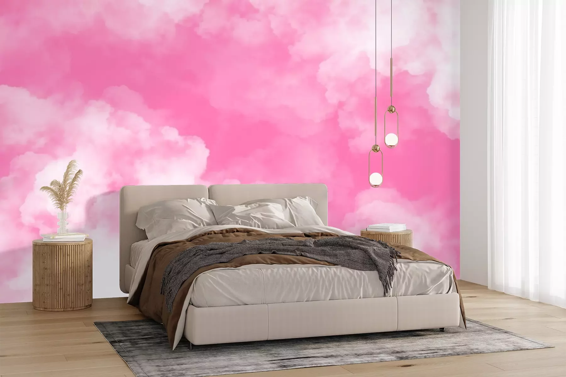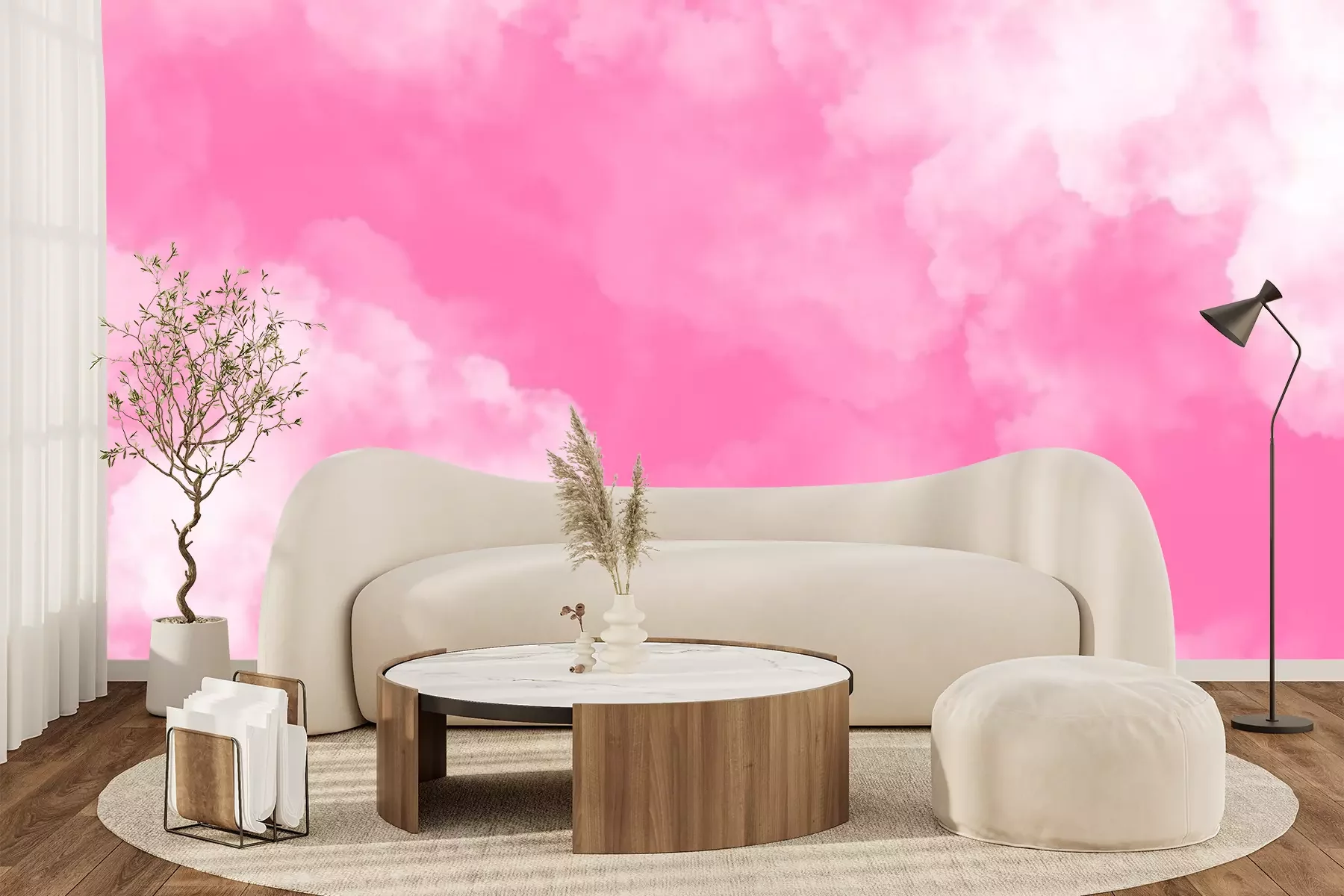 Fotobehang Fuchsiakleurige hemel met wolken