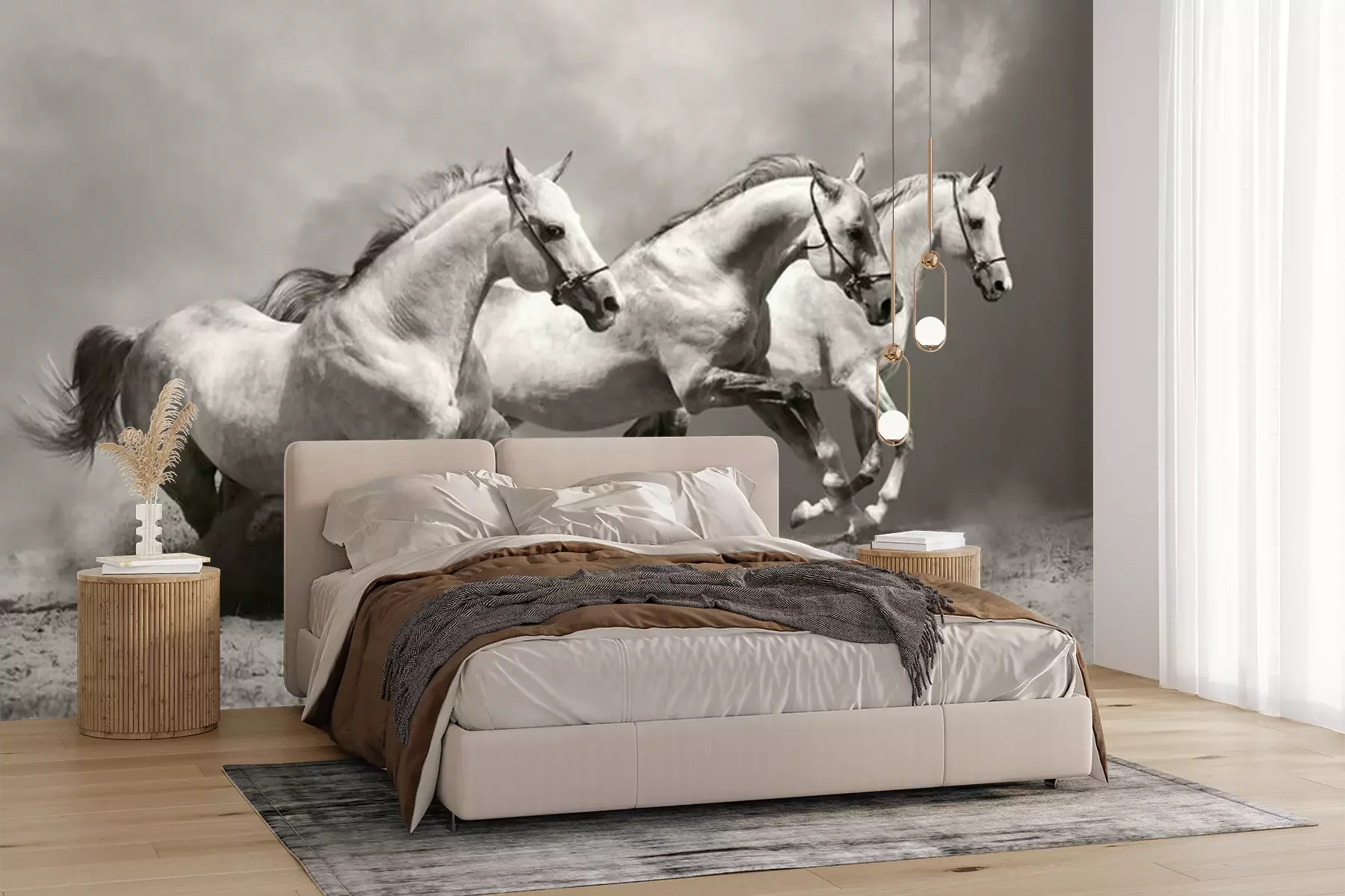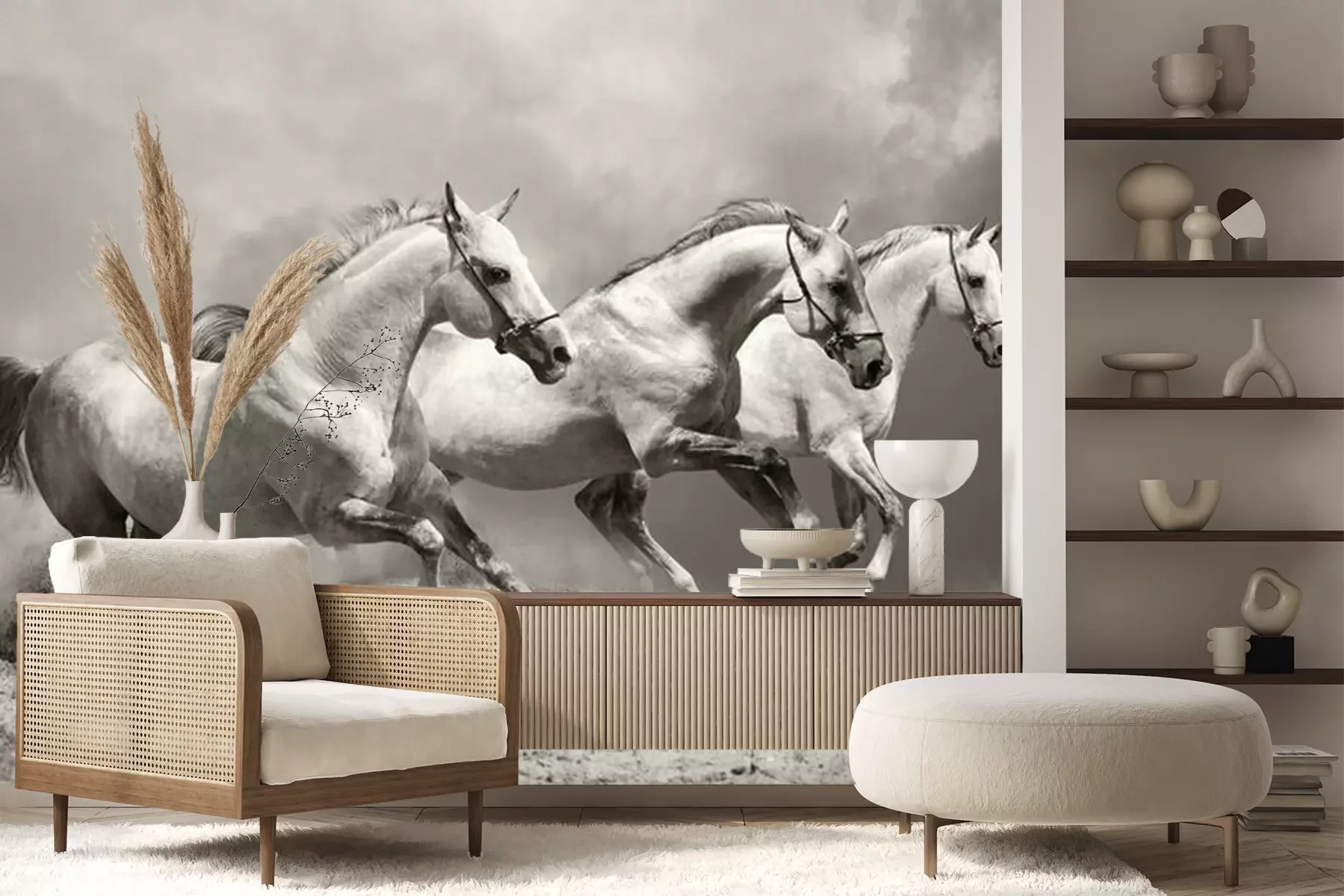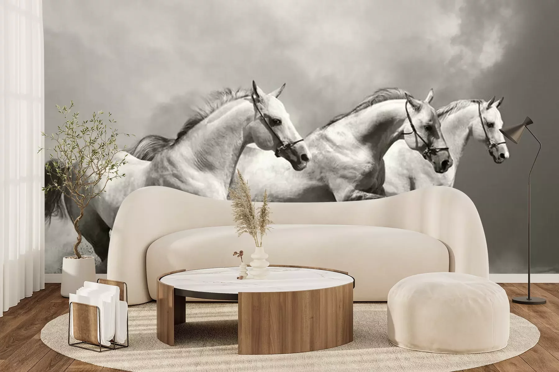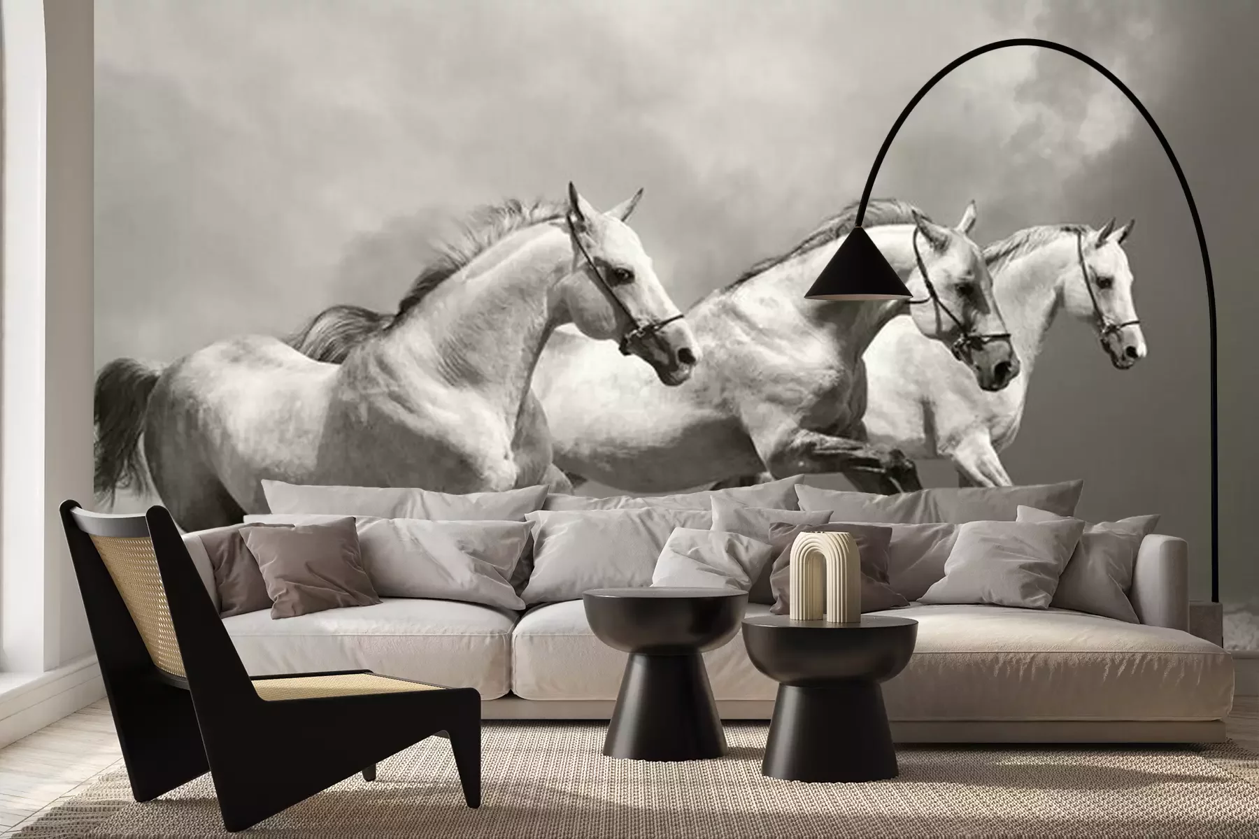 Drie witte paarden in galopProbleemloze bezorging verzorgd door vertrouwde vervoerders
