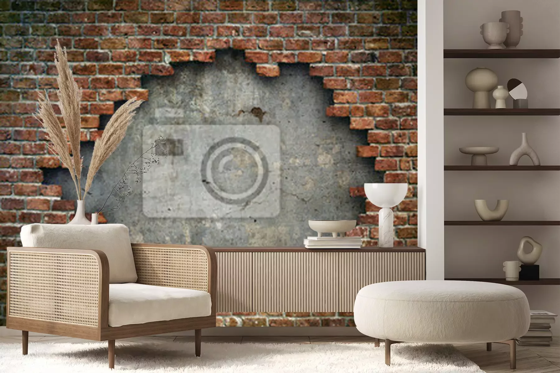 Het materiaal Premium+ is een gestructureerd vinyl op vlies met een gewicht van 255 g/m², dat kleine oneffenheden in de muur effectief camoufleert. De subtiele structuur van fijn zand geeft het oppervlak een exclusieve uitstraling, terwijl de halfmatte afwerking de diepte van de kleuren benadrukt. Het materiaal is dampdoorlatend, waardoor het ook in de keuken en badkamer kan worden gebruikt. De maximale breedte van één baan bedraagt 100 cm – bij grotere afmetingen wordt het fotobehang in meerdere gelijke banen verdeeld. De lijm wordt direct op de muur aangebracht en het behang wordt rand-aan-rand geplakt, wat zorgt voor een esthetisch resultaat zonder zichtbare naden. Het oppervlak kan gemakkelijk worden schoongemaakt door het voorzichtig af te nemen met een vochtige doek.