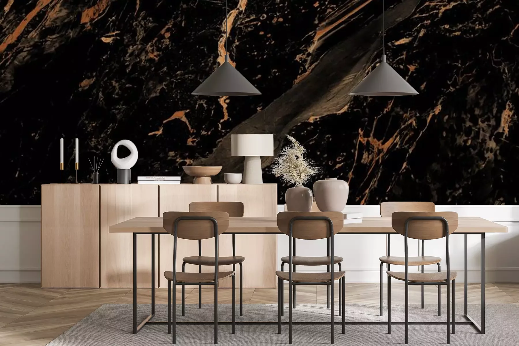 Fotobehang Geel onder zwart marmer