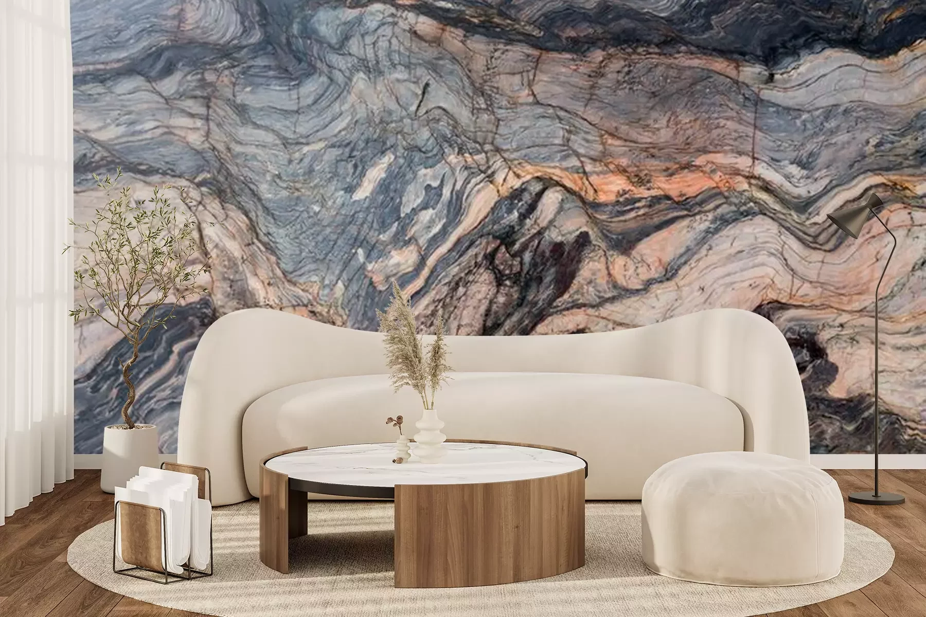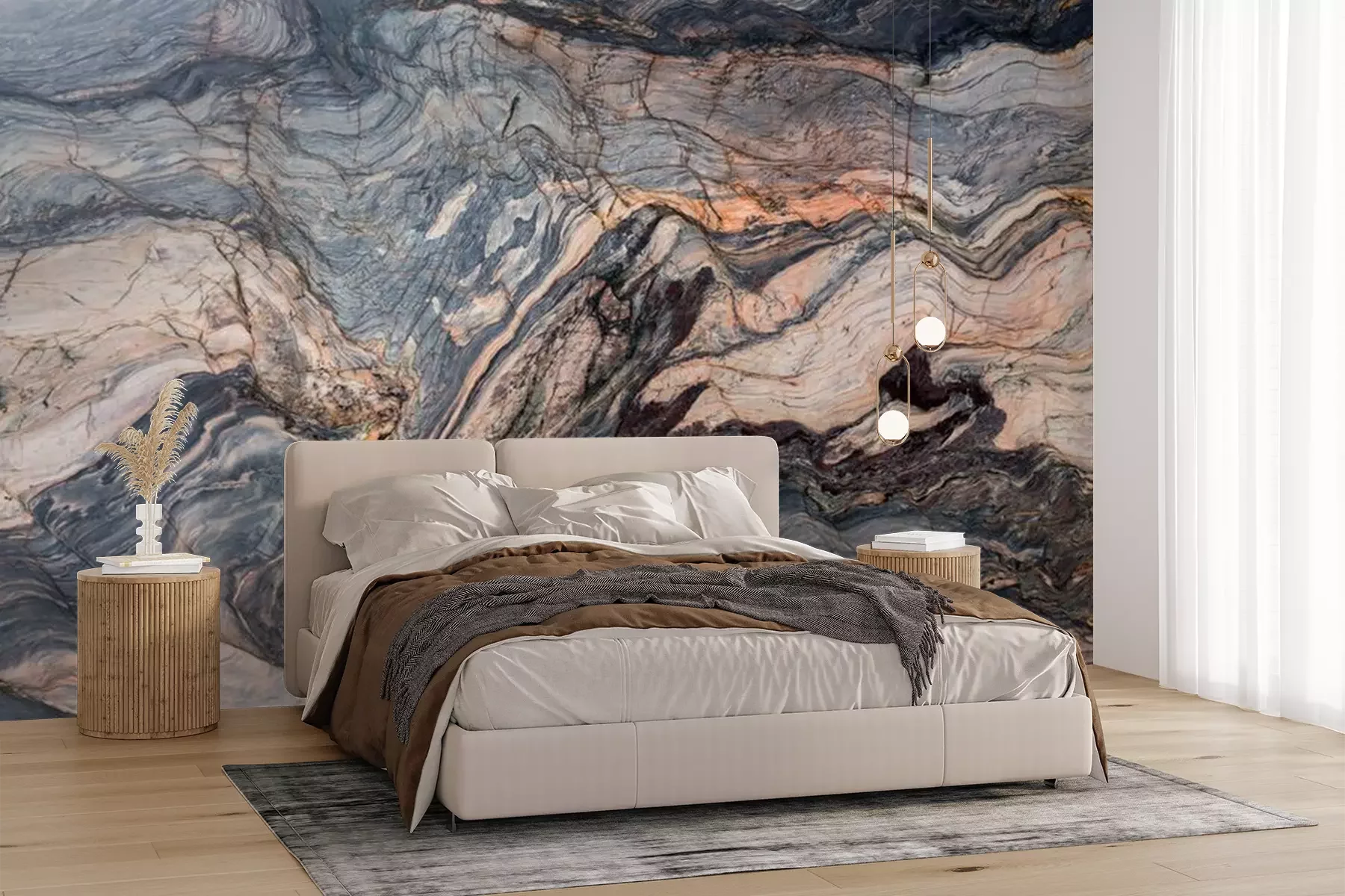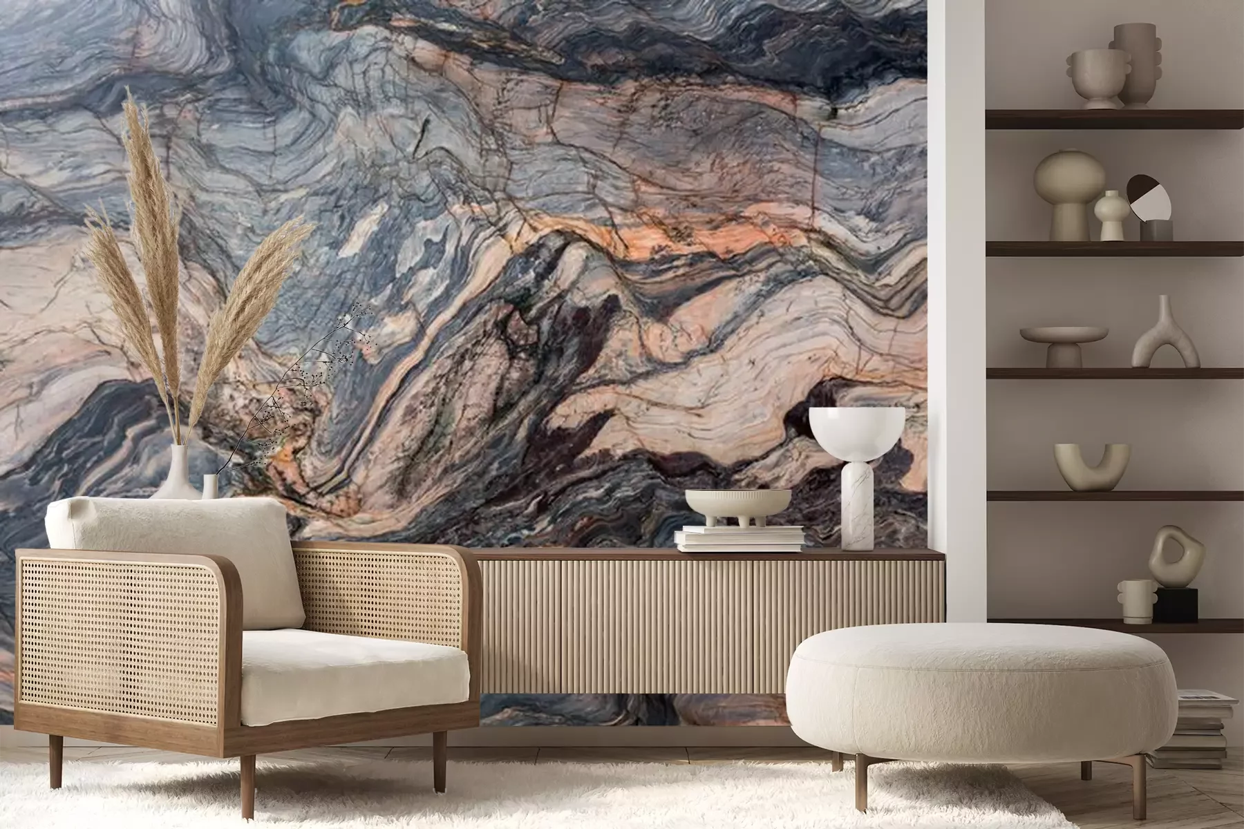 Het materiaal Premium+ is een gestructureerd vinyl op vlies met een gewicht van 255 g/m², dat kleine oneffenheden in de muur effectief camoufleert. De subtiele structuur van fijn zand geeft het oppervlak een exclusieve uitstraling, terwijl de halfmatte afwerking de diepte van de kleuren benadrukt. Het materiaal is dampdoorlatend, waardoor het ook in de keuken en badkamer kan worden gebruikt. De maximale breedte van één baan bedraagt 100 cm – bij grotere afmetingen wordt het fotobehang in meerdere gelijke banen verdeeld. De lijm wordt direct op de muur aangebracht en het behang wordt rand-aan-rand geplakt, wat zorgt voor een esthetisch resultaat zonder zichtbare naden. Het oppervlak kan gemakkelijk worden schoongemaakt door het voorzichtig af te nemen met een vochtige doek.