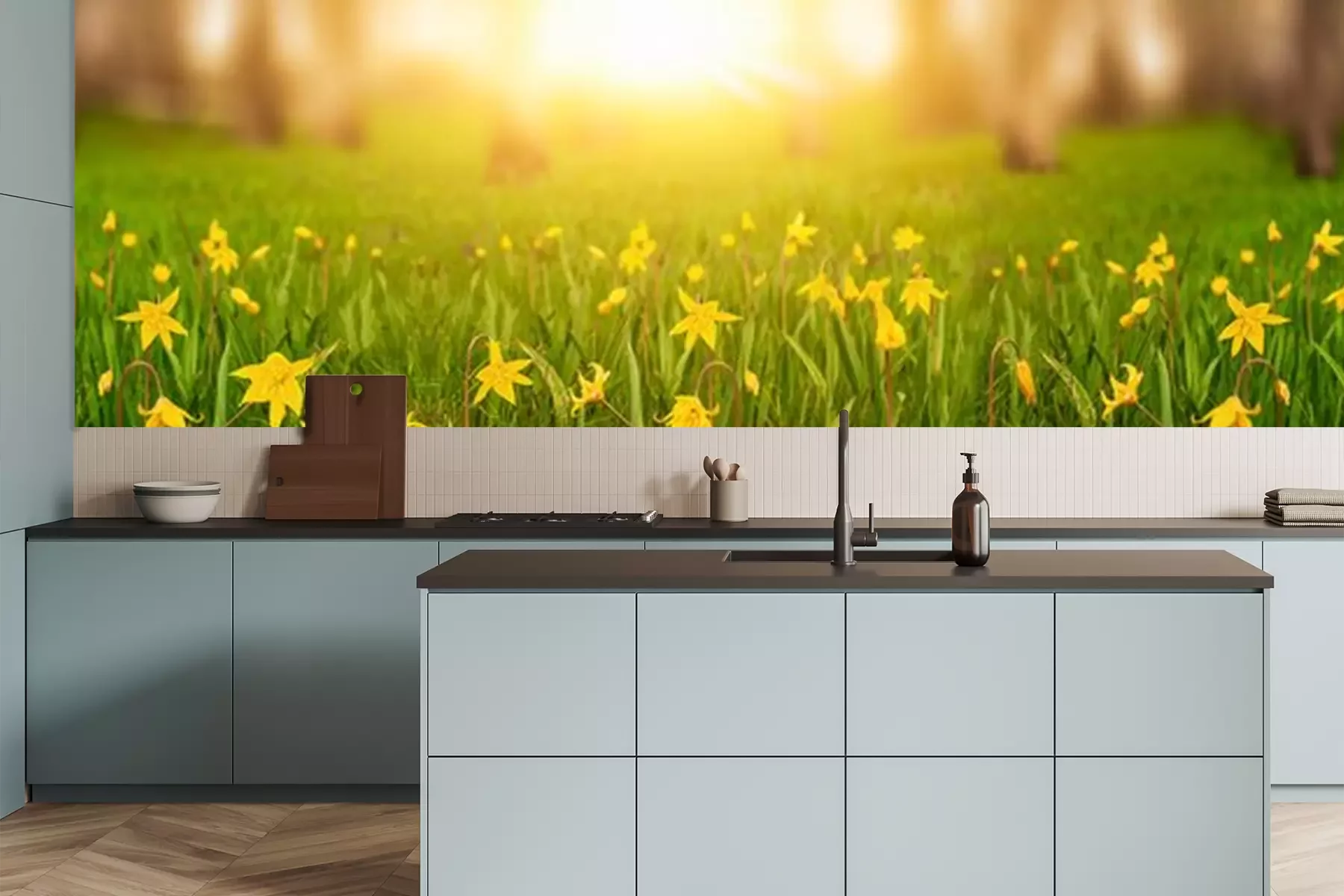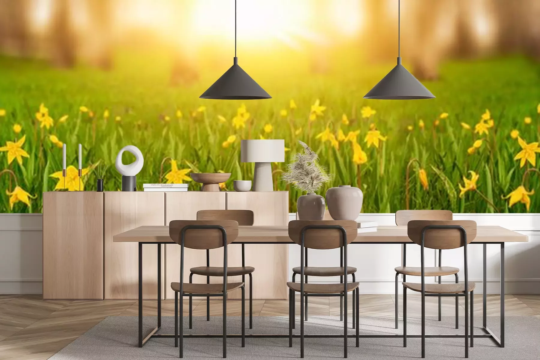 Fotobehang Gele bloemen in een weide