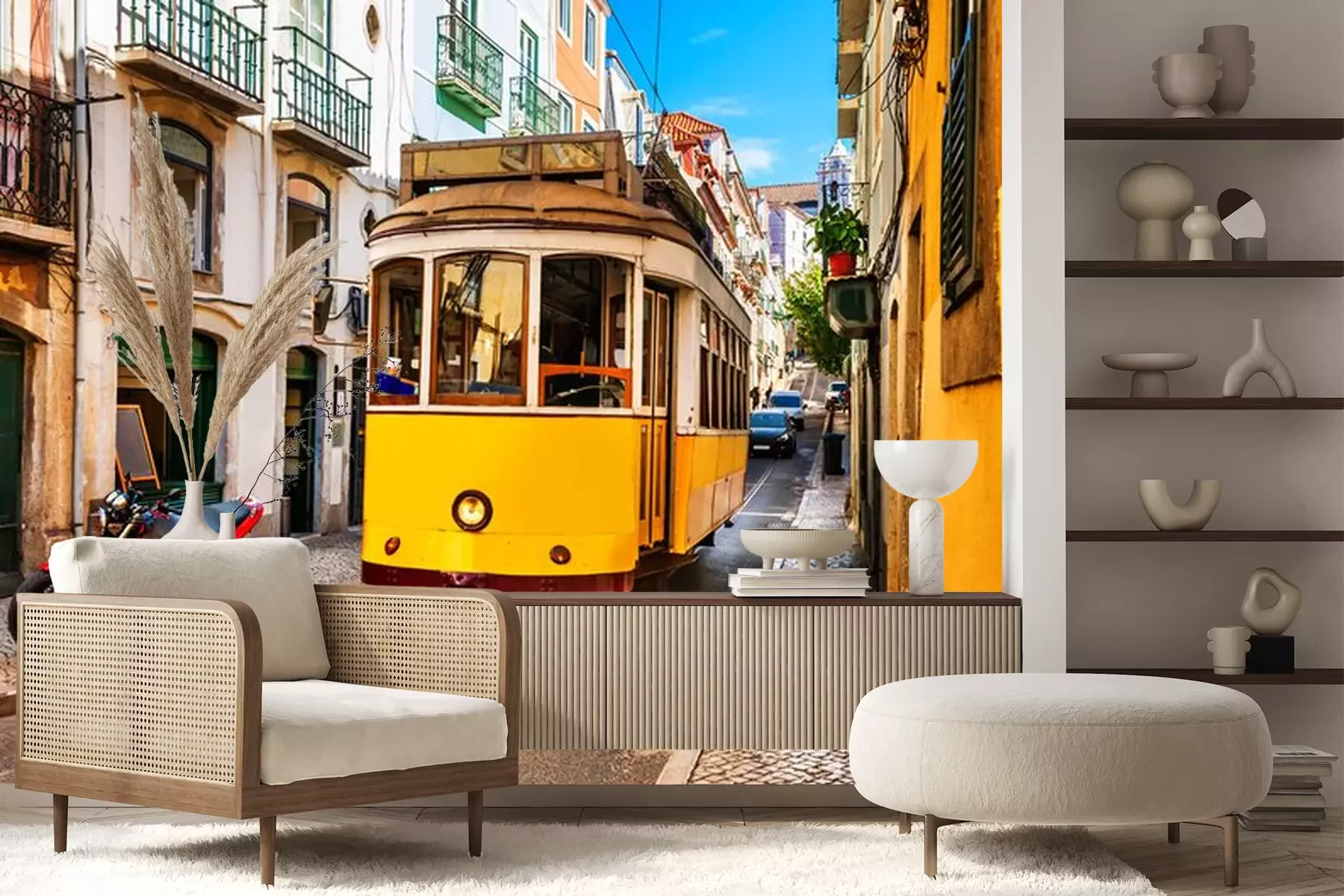 Fotobehang Gele tram van Lissabon