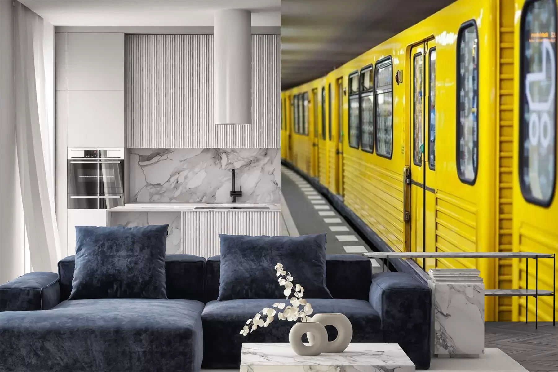 Het materiaal Premium is een glad vinyl op vlies, dat bestand is tegen uitrekken en vervorming. Het is dampdoorlatend – de muren kunnen vrij ademen – waardoor het geschikt is voor gebruik in de keuken en badkamer. Bij vervuiling kan het materiaal worden afgenomen met een vochtige doek. De maximale breedte van één baan bedraagt 95 of 105 cm, afhankelijk van de beschikbaarheid. Montage vindt plaats met de rand-aan-rand methode, wat een esthetisch resultaat zonder zichtbare naden oplevert. Omdat de lijm rechtstreeks op de muur wordt aangebracht, verloopt de installatie van het fotobehang snel en eenvoudig.