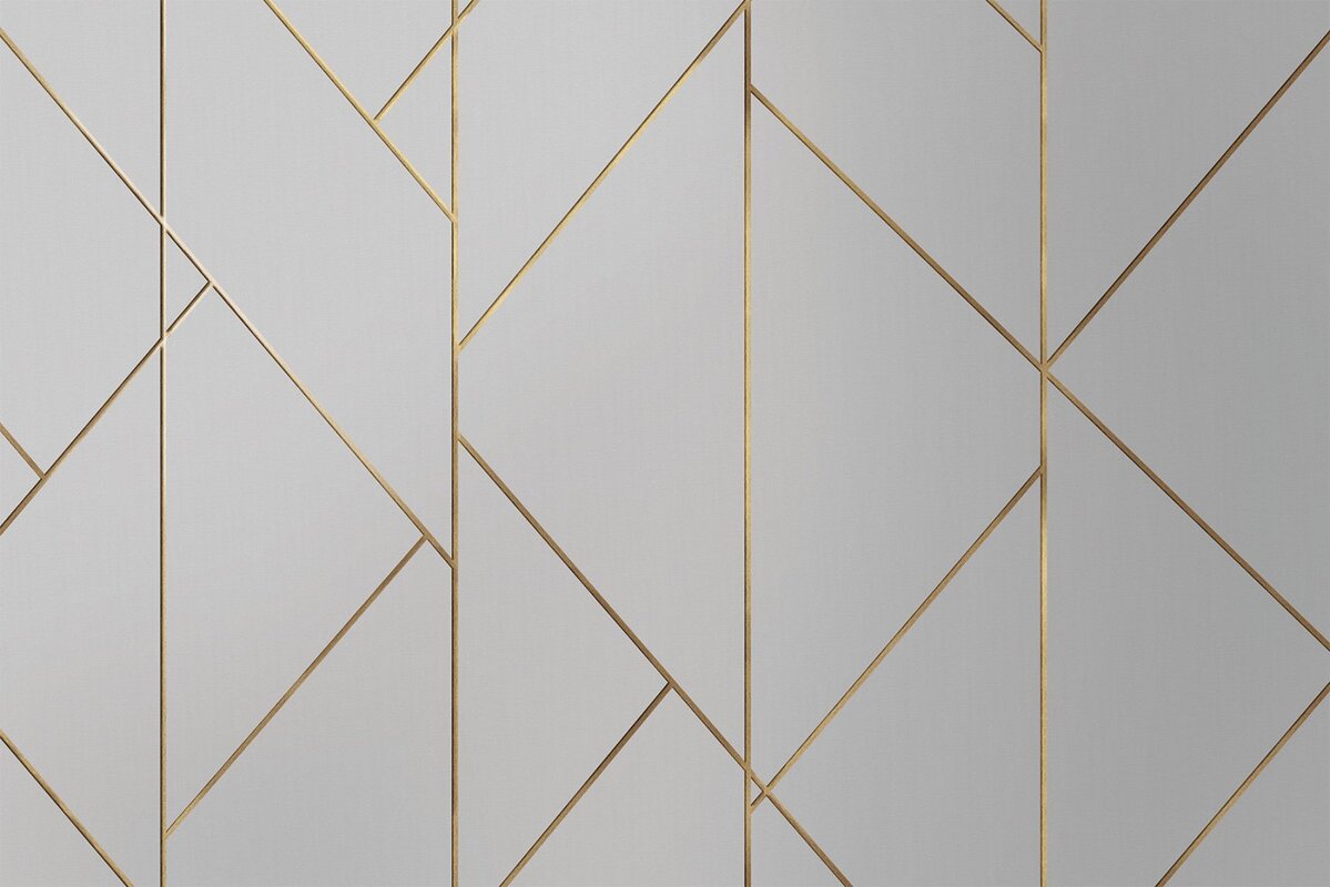 Fotobehang: Geometrisch patroon met gouden lijnen op een grijze achtergrond
