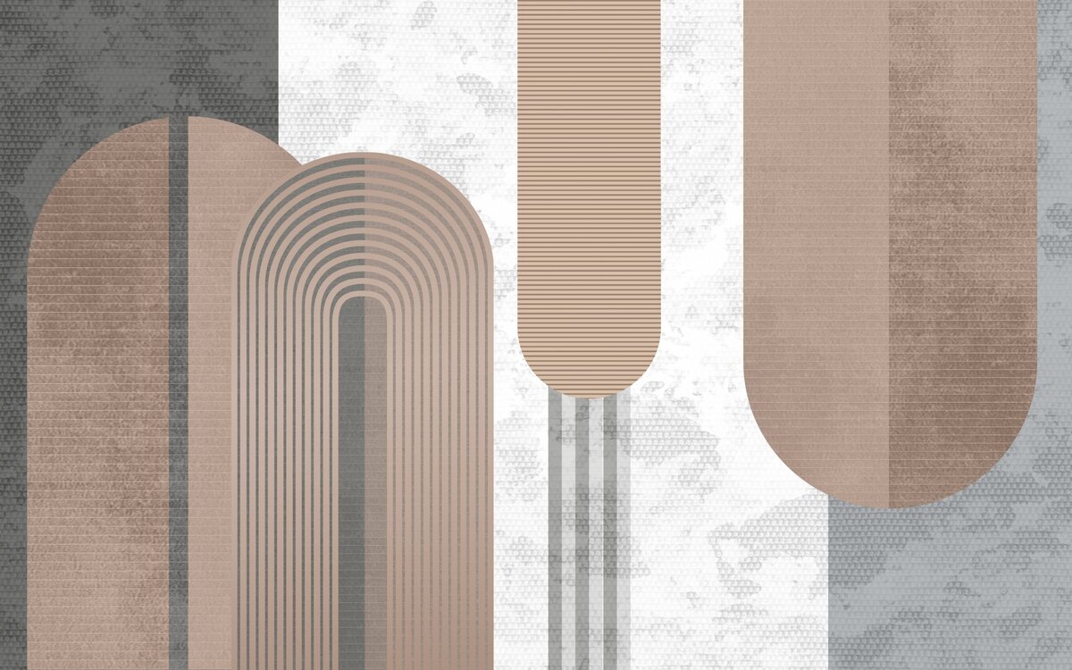 Fotobehang: Geometrisch patroon van vormen en bogen met een gestructureerde achtergrond, modern patroon