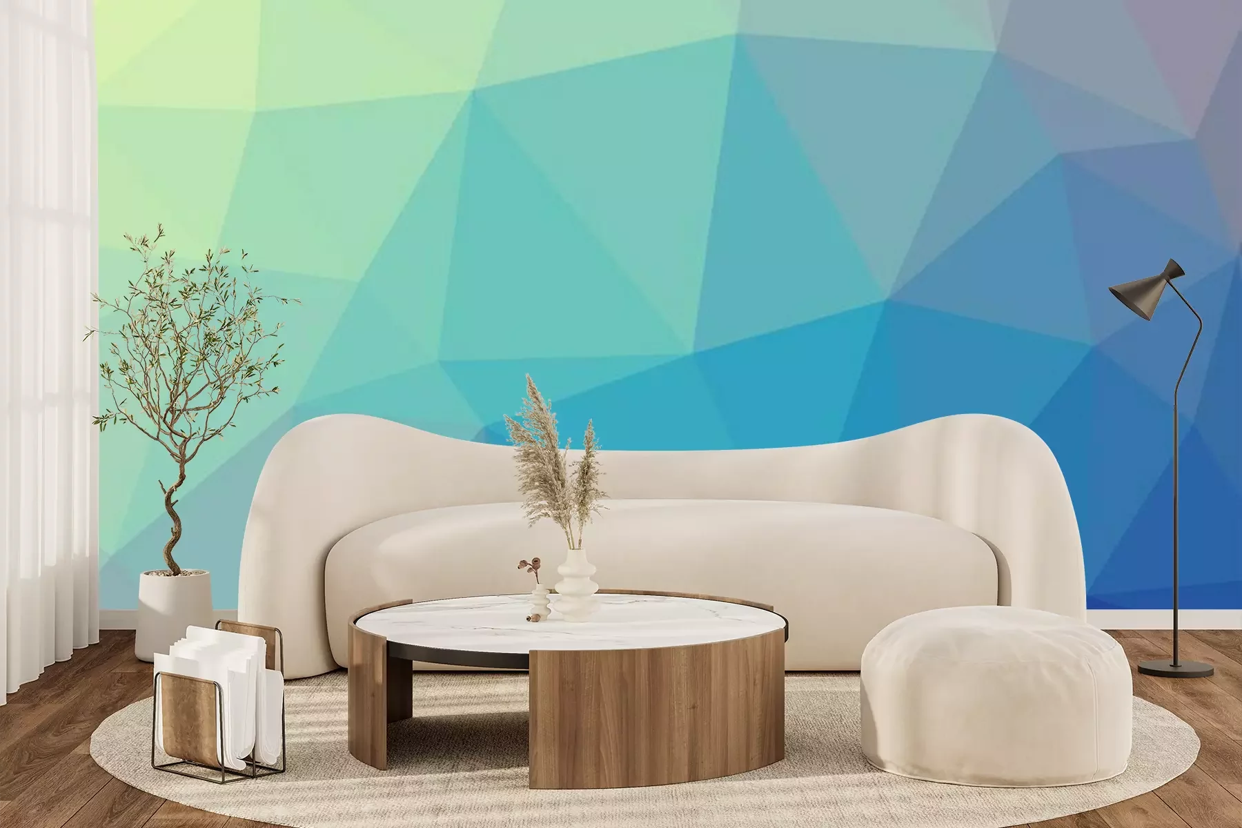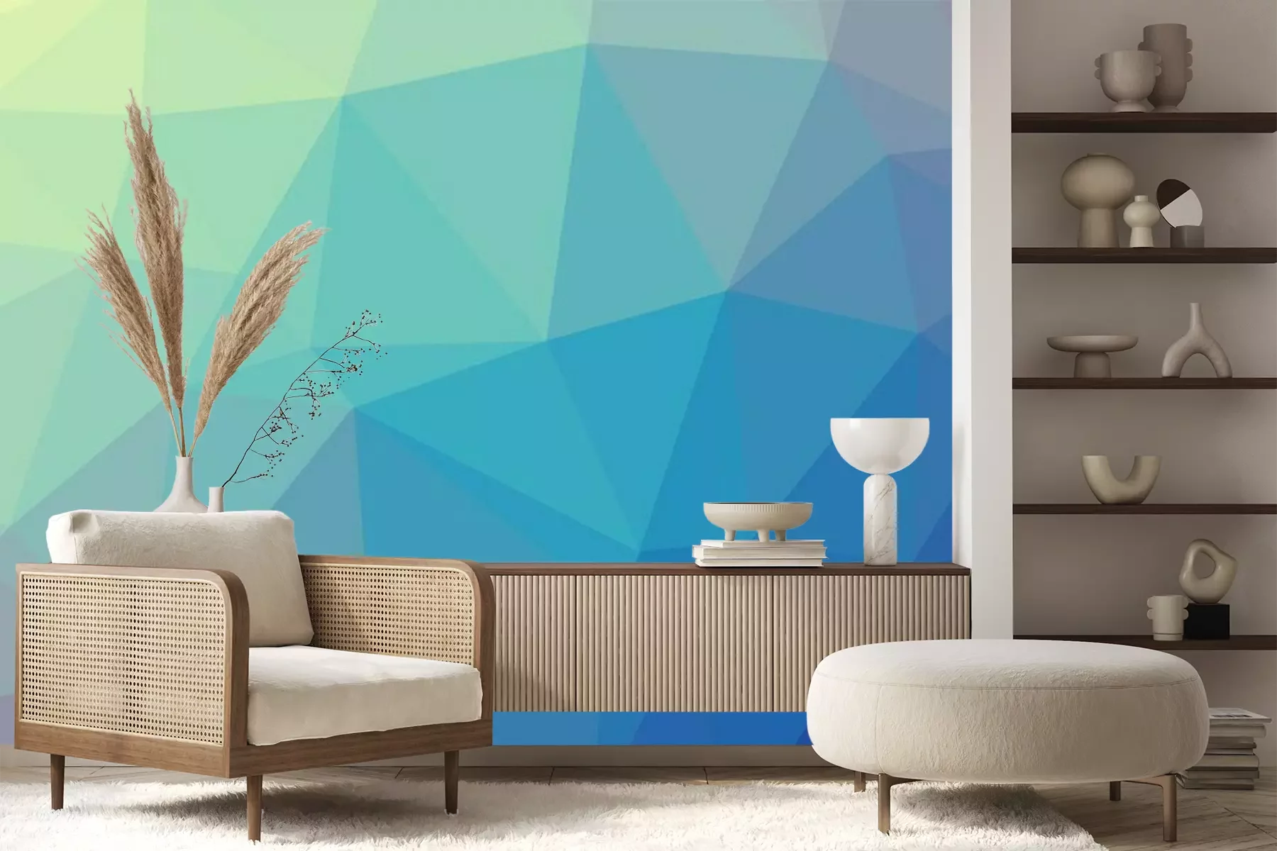 Het materiaal Premium+ is een gestructureerd vinyl op vlies met een gewicht van 255 g/m², dat kleine oneffenheden in de muur effectief camoufleert. De subtiele structuur van fijn zand geeft het oppervlak een exclusieve uitstraling, terwijl de halfmatte afwerking de diepte van de kleuren benadrukt. Het materiaal is dampdoorlatend, waardoor het ook in de keuken en badkamer kan worden gebruikt. De maximale breedte van één baan bedraagt 100 cm – bij grotere afmetingen wordt het fotobehang in meerdere gelijke banen verdeeld. De lijm wordt direct op de muur aangebracht en het behang wordt rand-aan-rand geplakt, wat zorgt voor een esthetisch resultaat zonder zichtbare naden. Het oppervlak kan gemakkelijk worden schoongemaakt door het voorzichtig af te nemen met een vochtige doek.