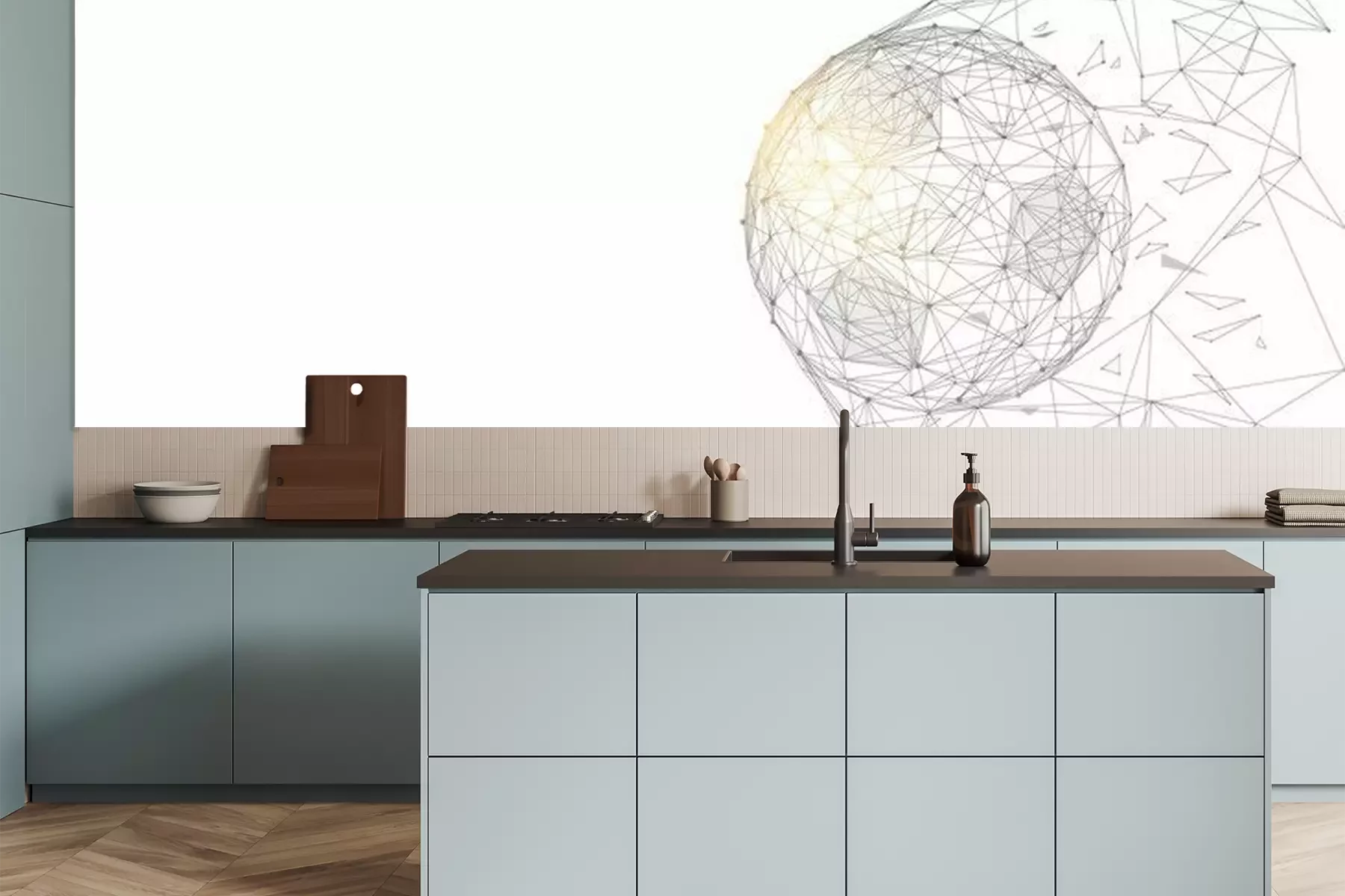Het materiaal Premium is een glad vinyl op vlies, dat bestand is tegen uitrekken en vervorming. Het is dampdoorlatend – de muren kunnen vrij ademen – waardoor het geschikt is voor gebruik in de keuken en badkamer. Bij vervuiling kan het materiaal worden afgenomen met een vochtige doek. De maximale breedte van één baan bedraagt 95 of 105 cm, afhankelijk van de beschikbaarheid. Montage vindt plaats met de rand-aan-rand methode, wat een esthetisch resultaat zonder zichtbare naden oplevert. Omdat de lijm rechtstreeks op de muur wordt aangebracht, verloopt de installatie van het fotobehang snel en eenvoudig.