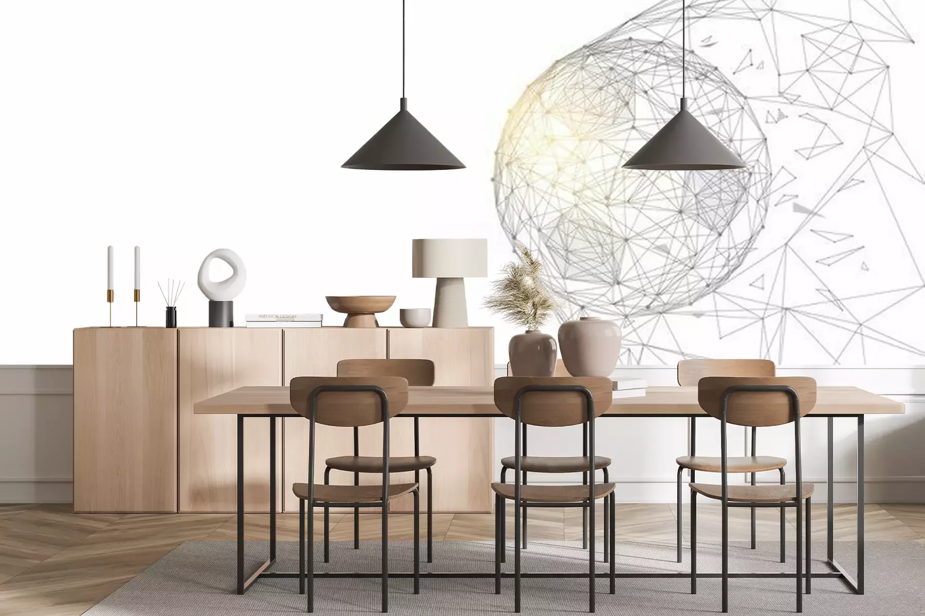 Het materiaal Premium+ is een gestructureerd vinyl op vlies met een gewicht van 255 g/m², dat kleine oneffenheden in de muur effectief camoufleert. De subtiele structuur van fijn zand geeft het oppervlak een exclusieve uitstraling, terwijl de halfmatte afwerking de diepte van de kleuren benadrukt. Het materiaal is dampdoorlatend, waardoor het ook in de keuken en badkamer kan worden gebruikt. De maximale breedte van één baan bedraagt 100 cm – bij grotere afmetingen wordt het fotobehang in meerdere gelijke banen verdeeld. De lijm wordt direct op de muur aangebracht en het behang wordt rand-aan-rand geplakt, wat zorgt voor een esthetisch resultaat zonder zichtbare naden. Het oppervlak kan gemakkelijk worden schoongemaakt door het voorzichtig af te nemen met een vochtige doek.