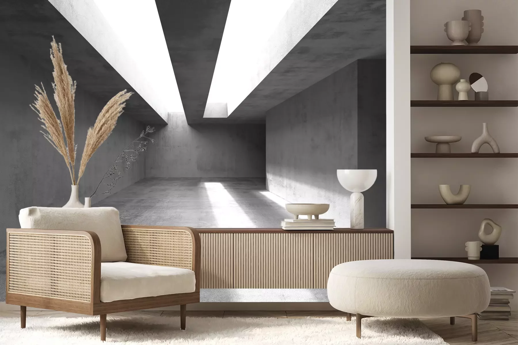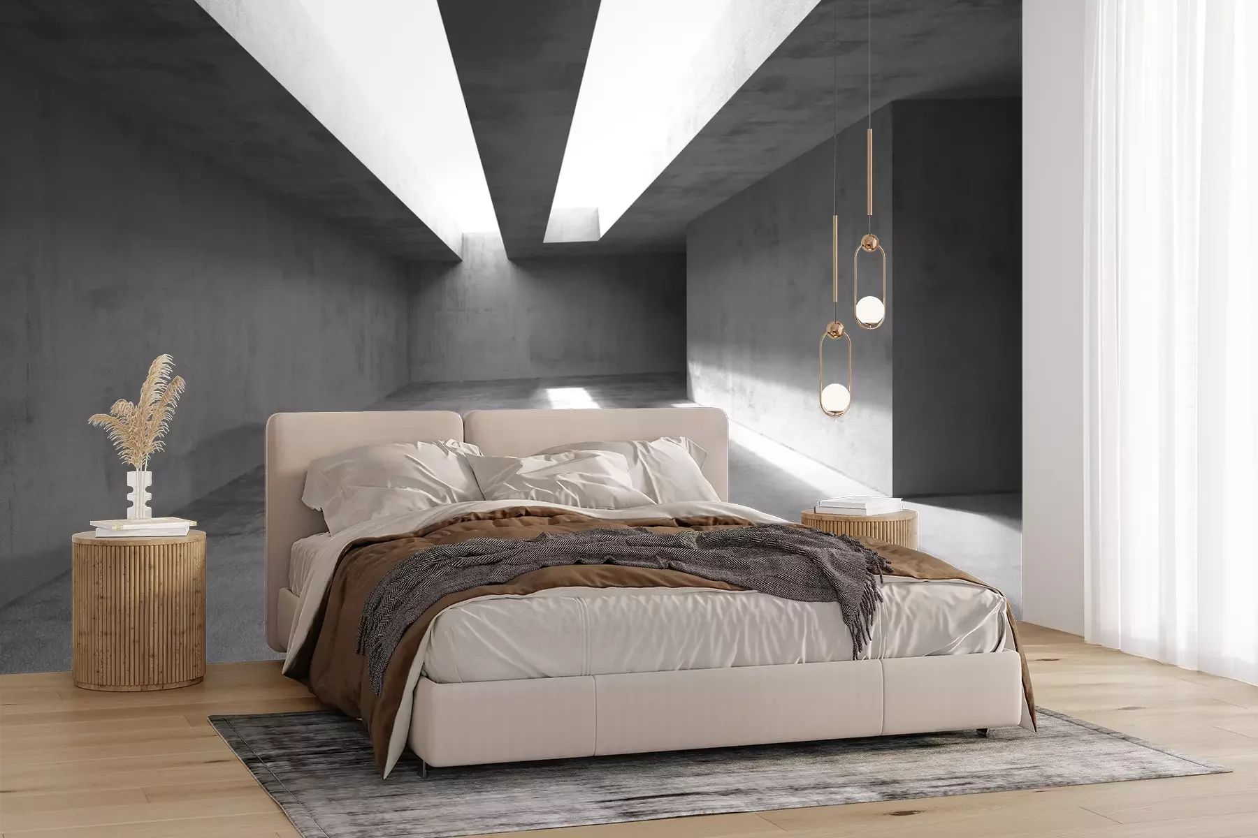 Het materiaal Premium+ is een gestructureerd vinyl op vlies met een gewicht van 255 g/m², dat kleine oneffenheden in de muur effectief camoufleert. De subtiele structuur van fijn zand geeft het oppervlak een exclusieve uitstraling, terwijl de halfmatte afwerking de diepte van de kleuren benadrukt. Het materiaal is dampdoorlatend, waardoor het ook in de keuken en badkamer kan worden gebruikt. De maximale breedte van één baan bedraagt 100 cm – bij grotere afmetingen wordt het fotobehang in meerdere gelijke banen verdeeld. De lijm wordt direct op de muur aangebracht en het behang wordt rand-aan-rand geplakt, wat zorgt voor een esthetisch resultaat zonder zichtbare naden. Het oppervlak kan gemakkelijk worden schoongemaakt door het voorzichtig af te nemen met een vochtige doek.