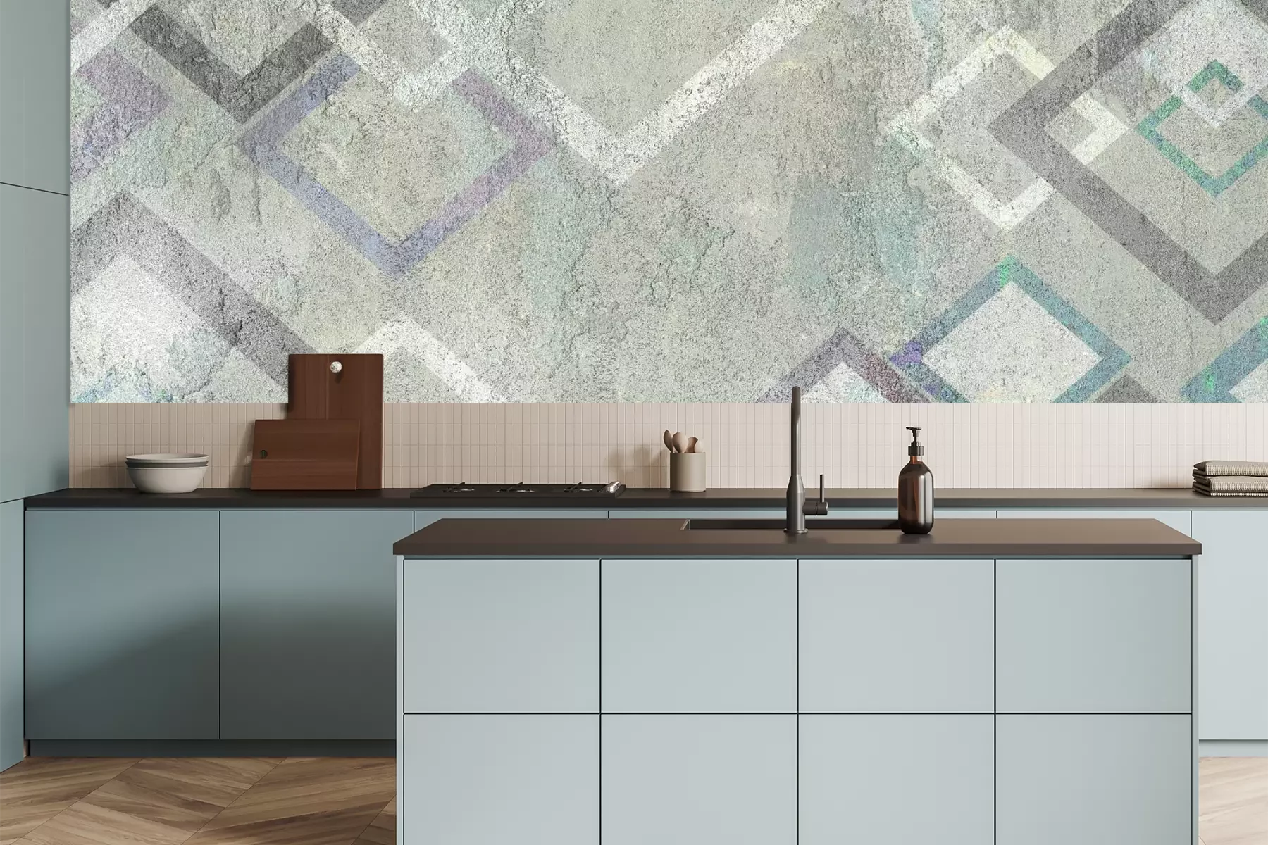 Het materiaal Premium is een glad vinyl op vlies, dat bestand is tegen uitrekken en vervorming. Het is dampdoorlatend – de muren kunnen vrij ademen – waardoor het geschikt is voor gebruik in de keuken en badkamer. Bij vervuiling kan het materiaal worden afgenomen met een vochtige doek. De maximale breedte van één baan bedraagt 95 of 105 cm, afhankelijk van de beschikbaarheid. Montage vindt plaats met de rand-aan-rand methode, wat een esthetisch resultaat zonder zichtbare naden oplevert. Omdat de lijm rechtstreeks op de muur wordt aangebracht, verloopt de installatie van het fotobehang snel en eenvoudig.