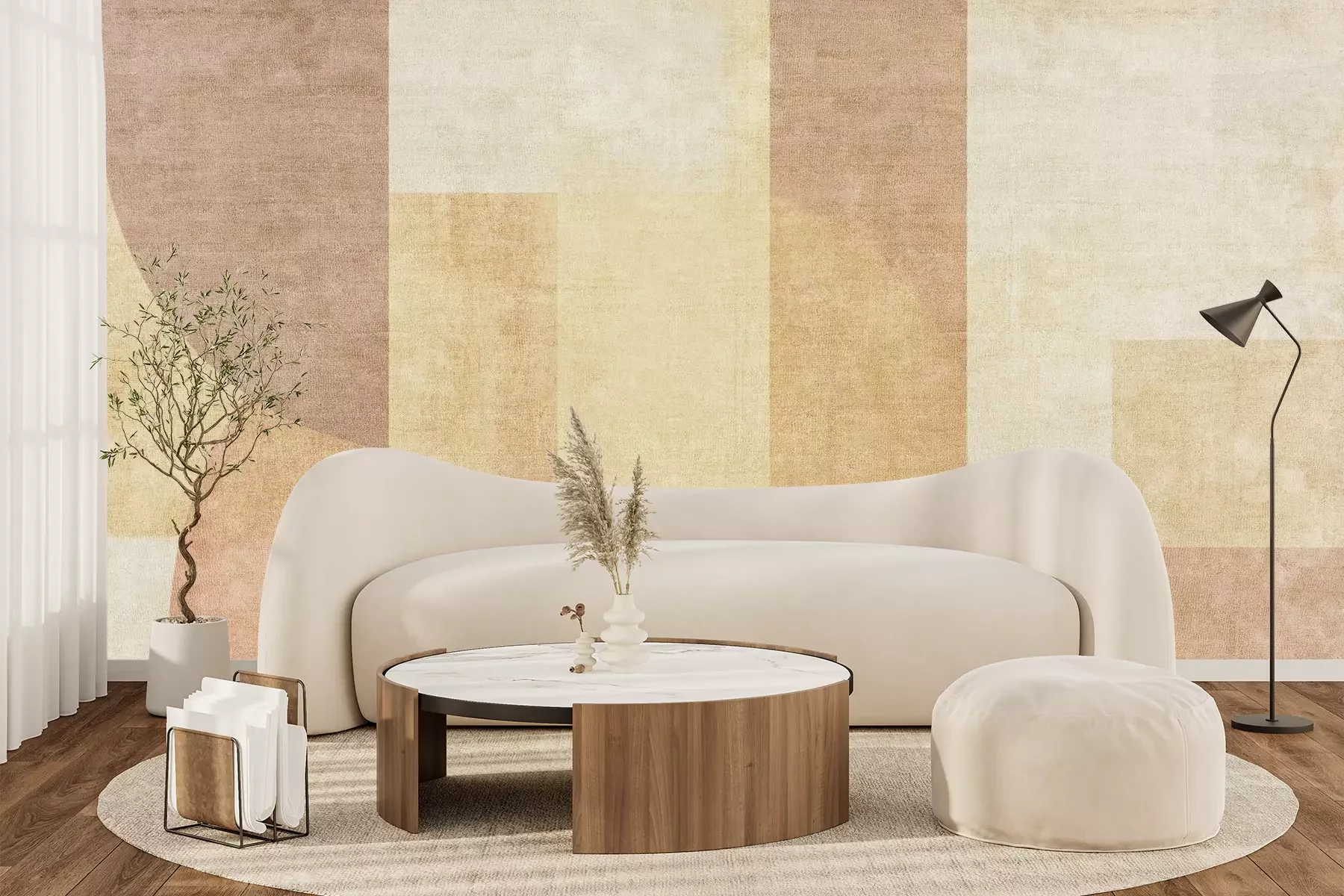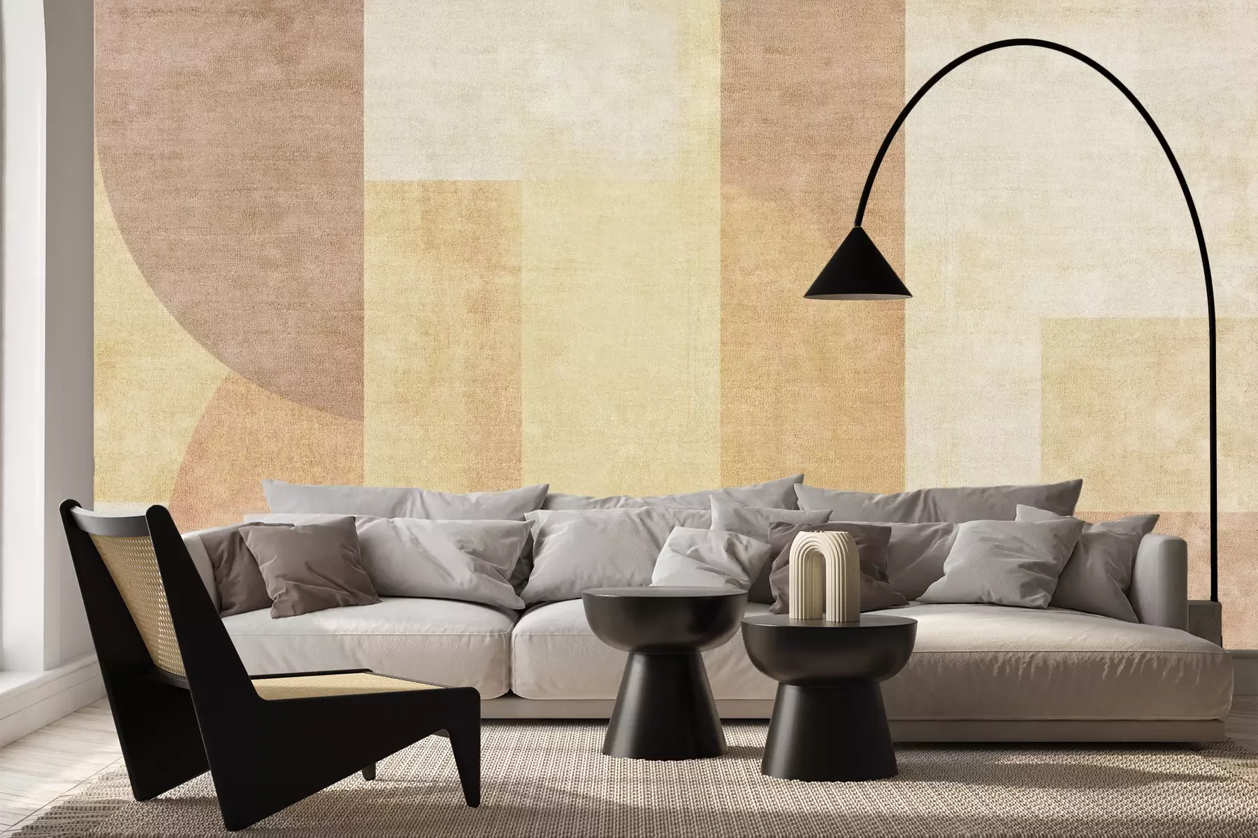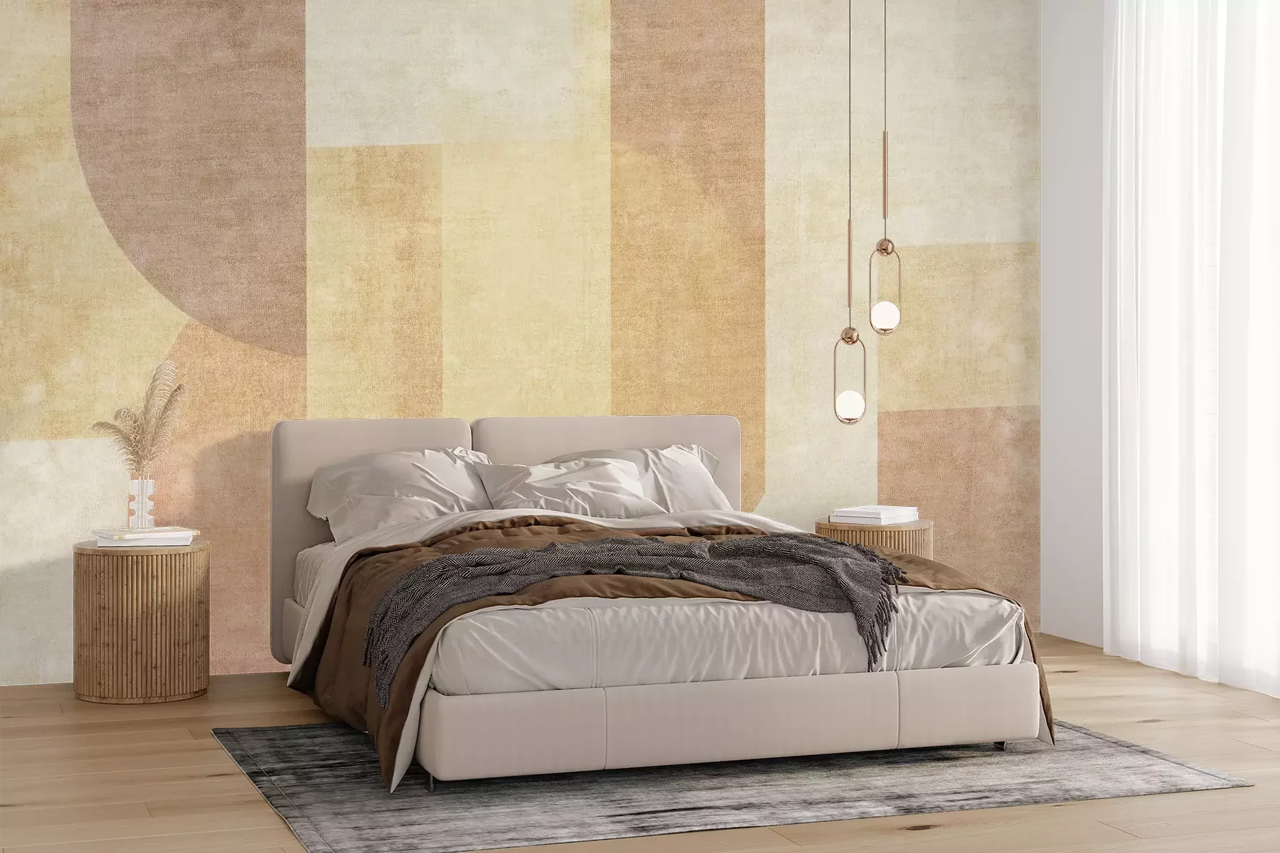 Het materiaal Premium+ is een gestructureerd vinyl op vlies met een gewicht van 255 g/m², dat kleine oneffenheden in de muur effectief camoufleert. De subtiele structuur van fijn zand geeft het oppervlak een exclusieve uitstraling, terwijl de halfmatte afwerking de diepte van de kleuren benadrukt. Het materiaal is dampdoorlatend, waardoor het ook in de keuken en badkamer kan worden gebruikt. De maximale breedte van één baan bedraagt 100 cm – bij grotere afmetingen wordt het fotobehang in meerdere gelijke banen verdeeld. De lijm wordt direct op de muur aangebracht en het behang wordt rand-aan-rand geplakt, wat zorgt voor een esthetisch resultaat zonder zichtbare naden. Het oppervlak kan gemakkelijk worden schoongemaakt door het voorzichtig af te nemen met een vochtige doek.